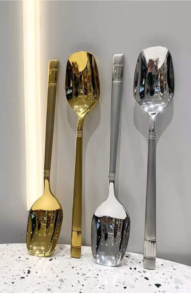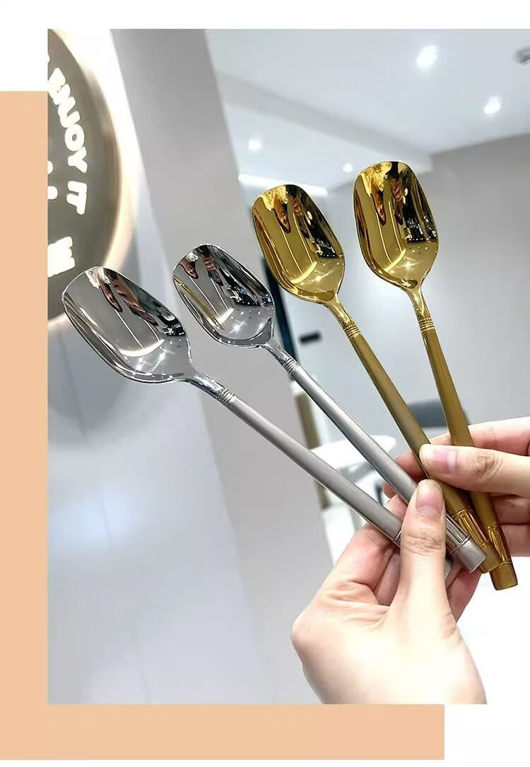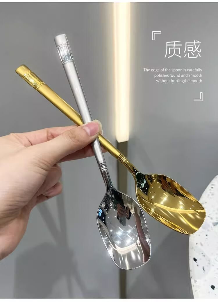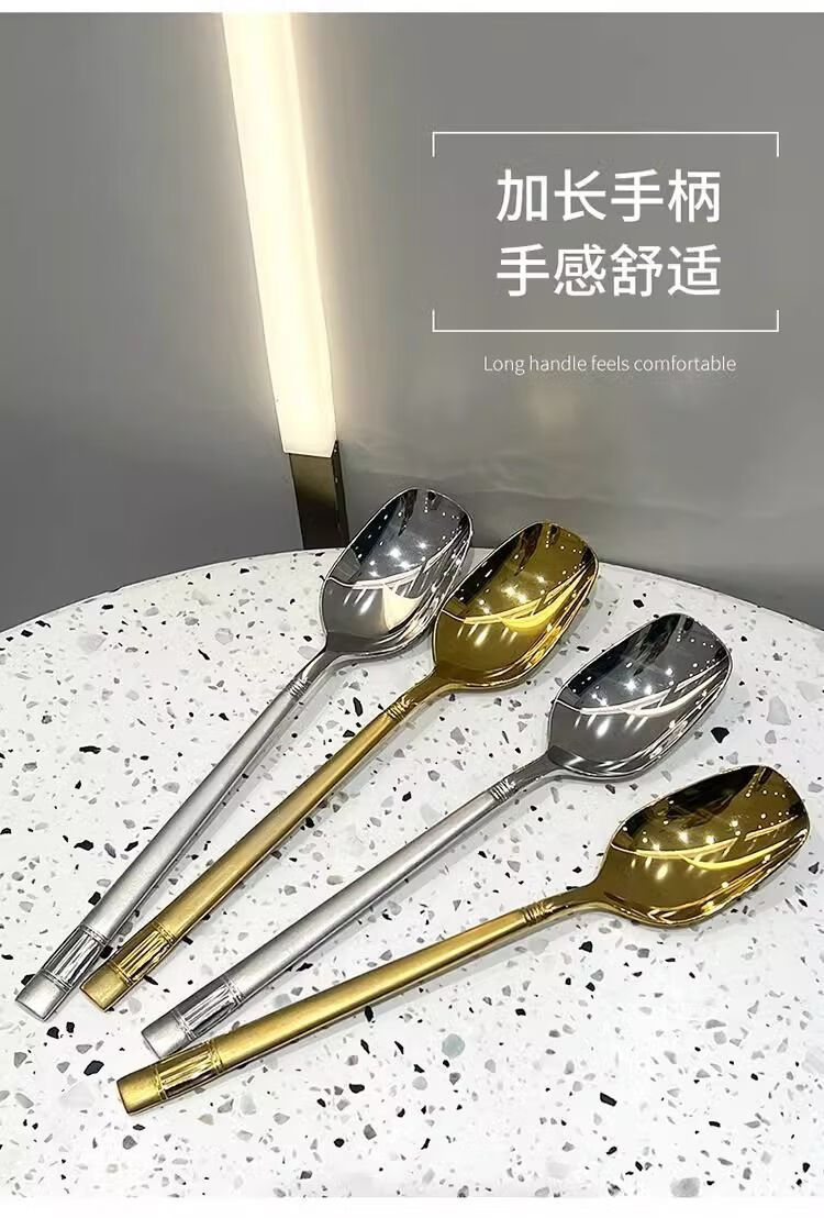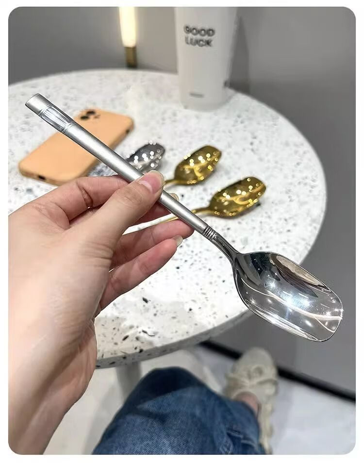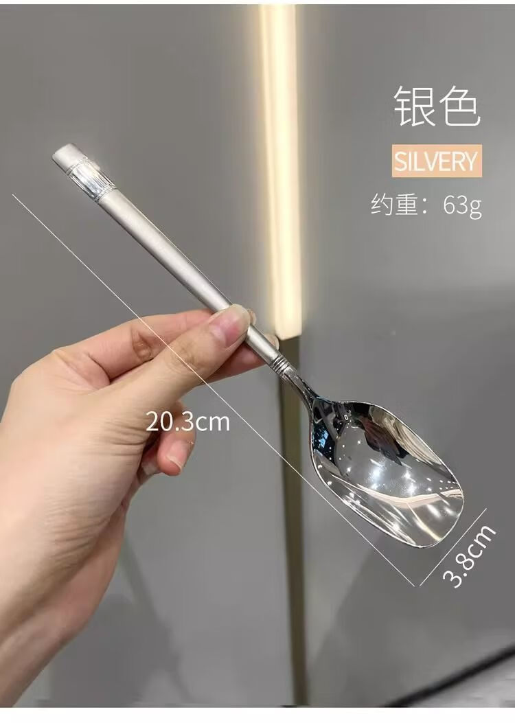 Vinoa stainless steel spoon Internet celebrity high-looking fruit watermelon spoon lantern spoon Korean creative soup eating spoon Starlight Silver 1 piece treasure light luxury high-looking rice spoon extended handle