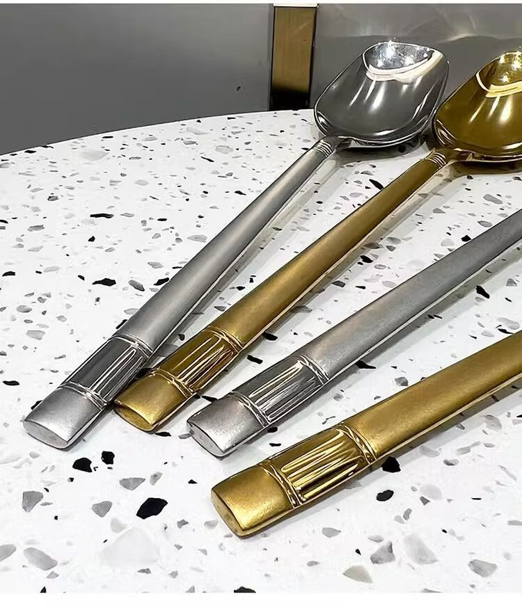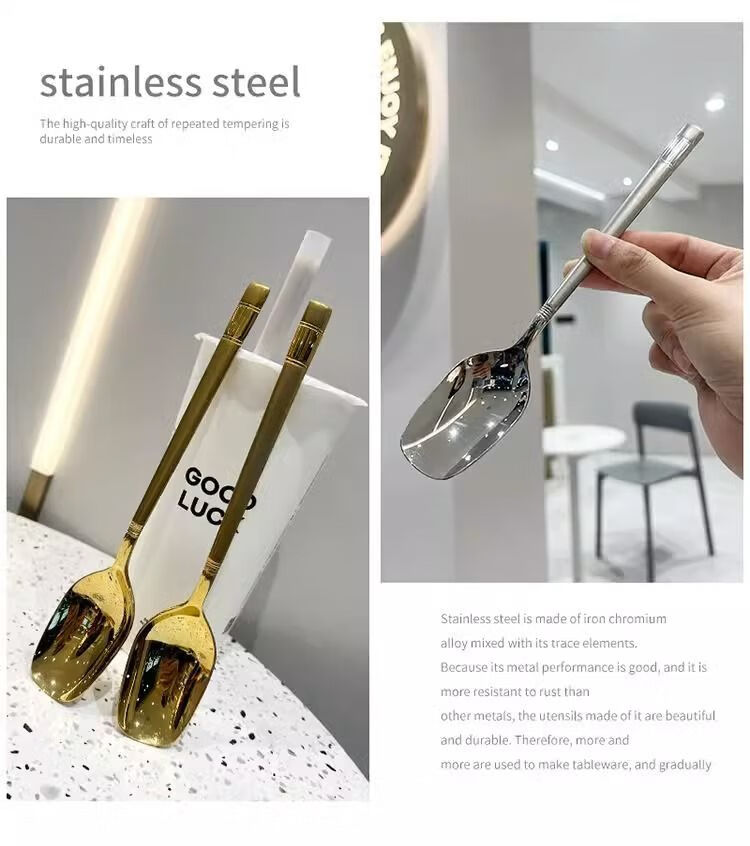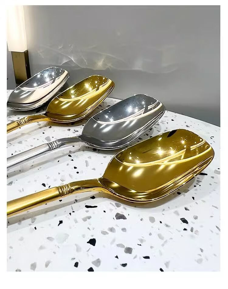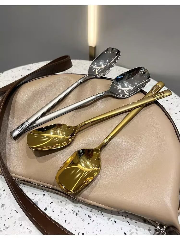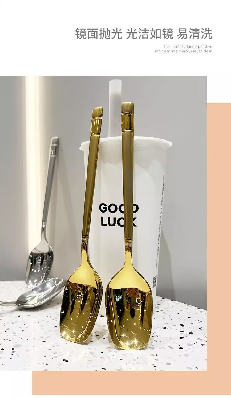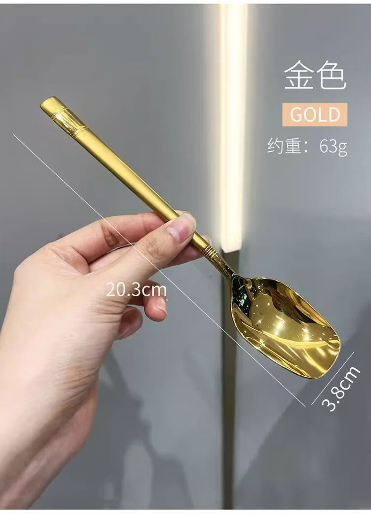 Vinoa stainless steel spoon Internet celebrity high-looking fruit watermelon spoon lantern spoon Korean creative soup eating spoon Starlight Silver 1 piece treasure light luxury high-looking rice spoon extended handle
