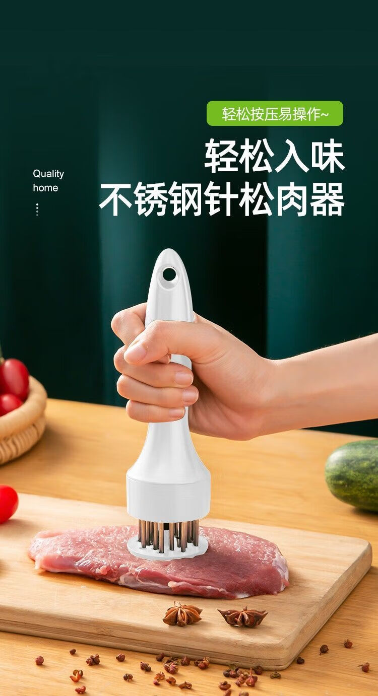 An Junsheng Stainless Steel Meat Loose Needle, Meat Tenderizer Meat Hammer, Steak Barbeque Button Meat Punch, Kitchen Household Tools for More Taste, Haoyuebai 1 Pack, Home Comfort Style, New Generation, 21 Needles, More Meat