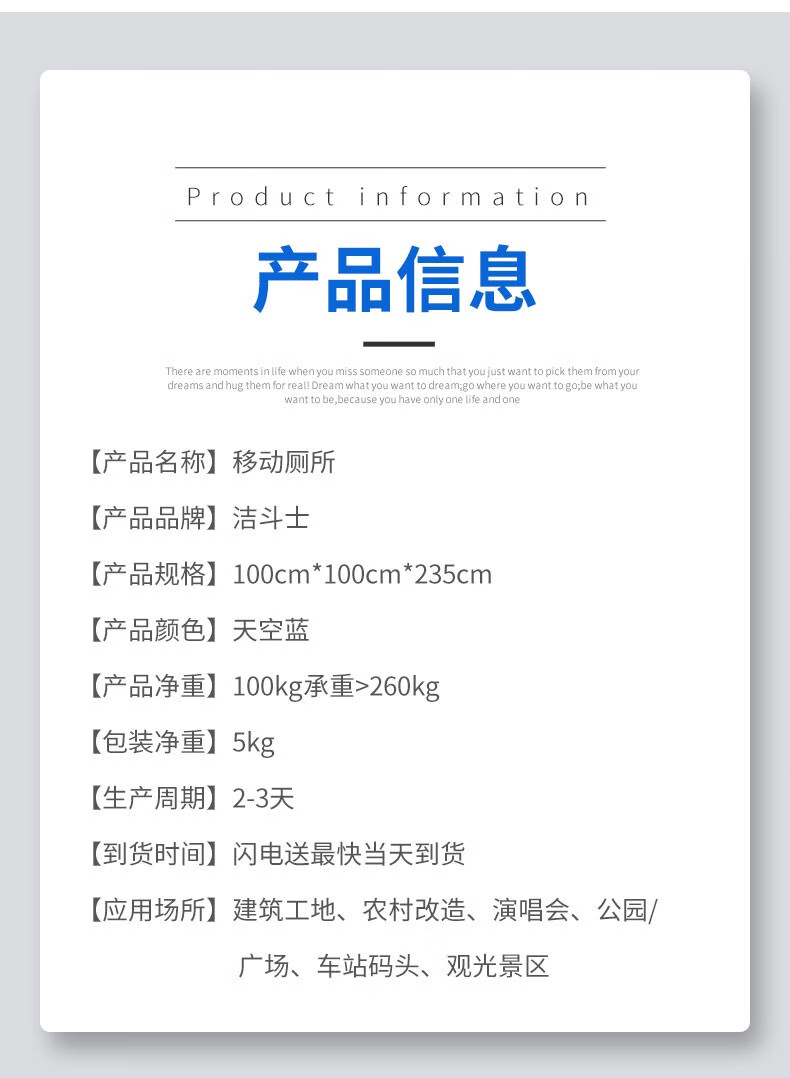Clean Fighter Mobile Toilet Bathroom Outdoor Rural Shower Room Finished Simple Outdoor Temporary Site Plastic Single Toilet H9 Luxurious One-piece 100*100*235cm