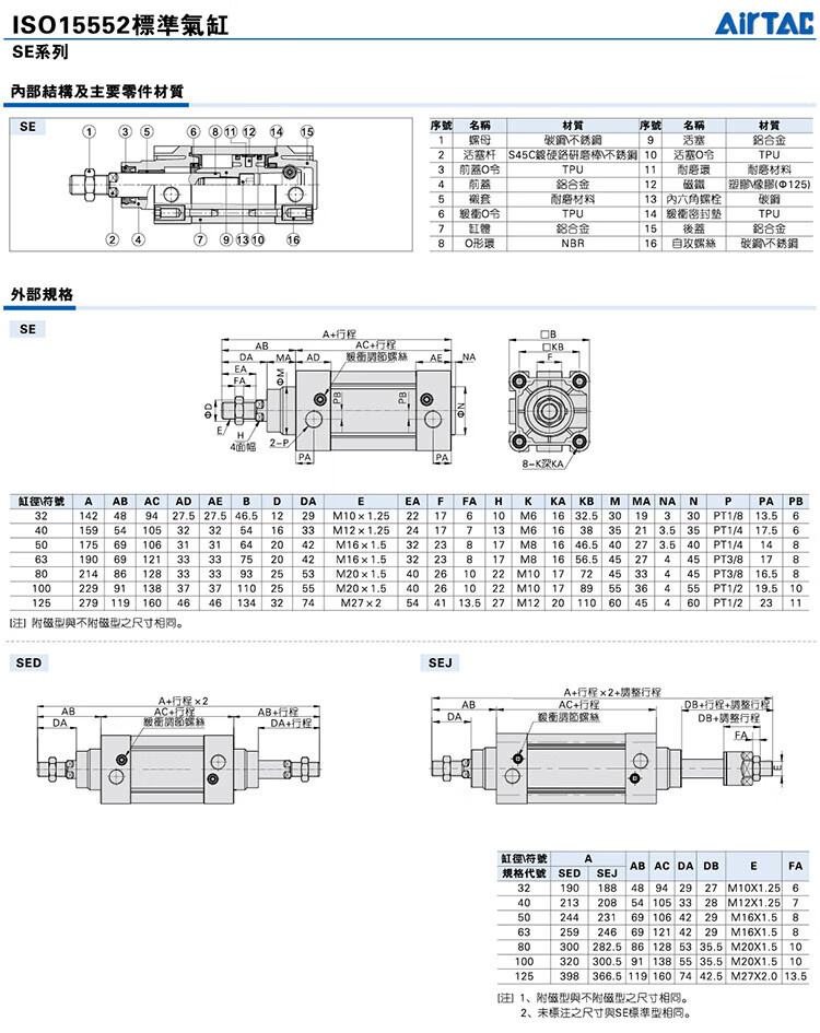 AirTac standard cylinder X50X75X100X125X150X175X200 SE100x125