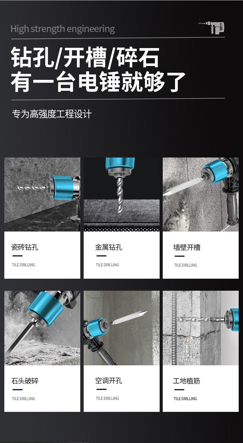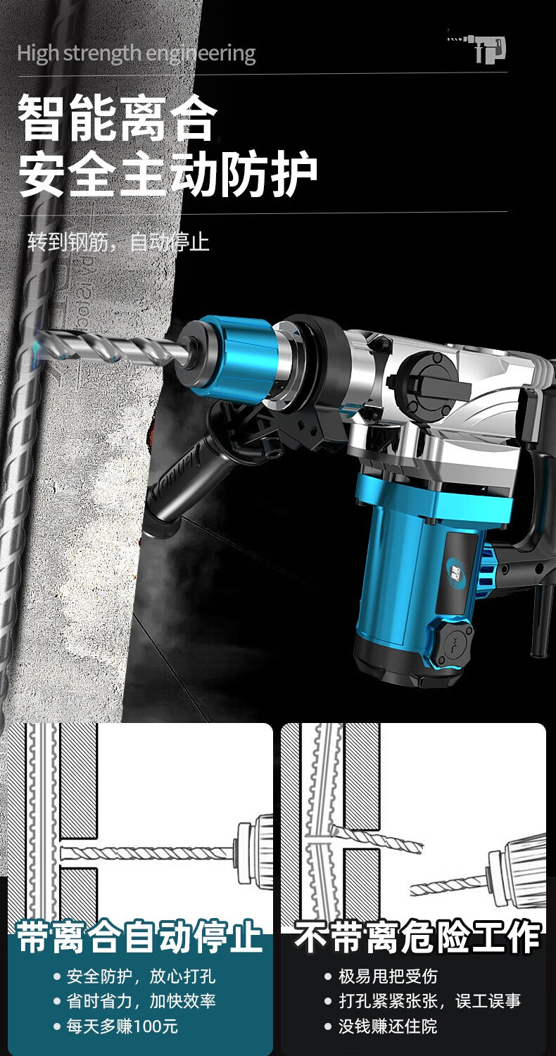 OP electric hammer electric pick high-power impact drill industrial concrete power tool household multi-function electric drill flagship model three-piece set
