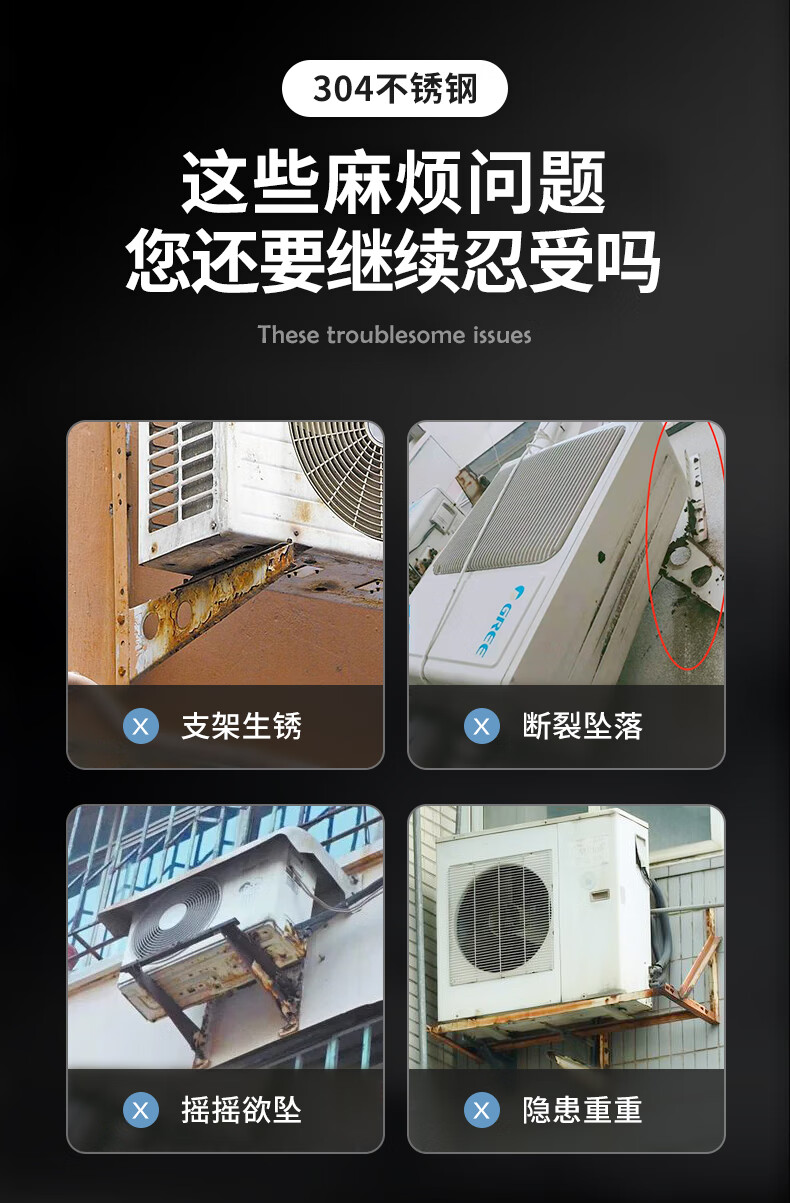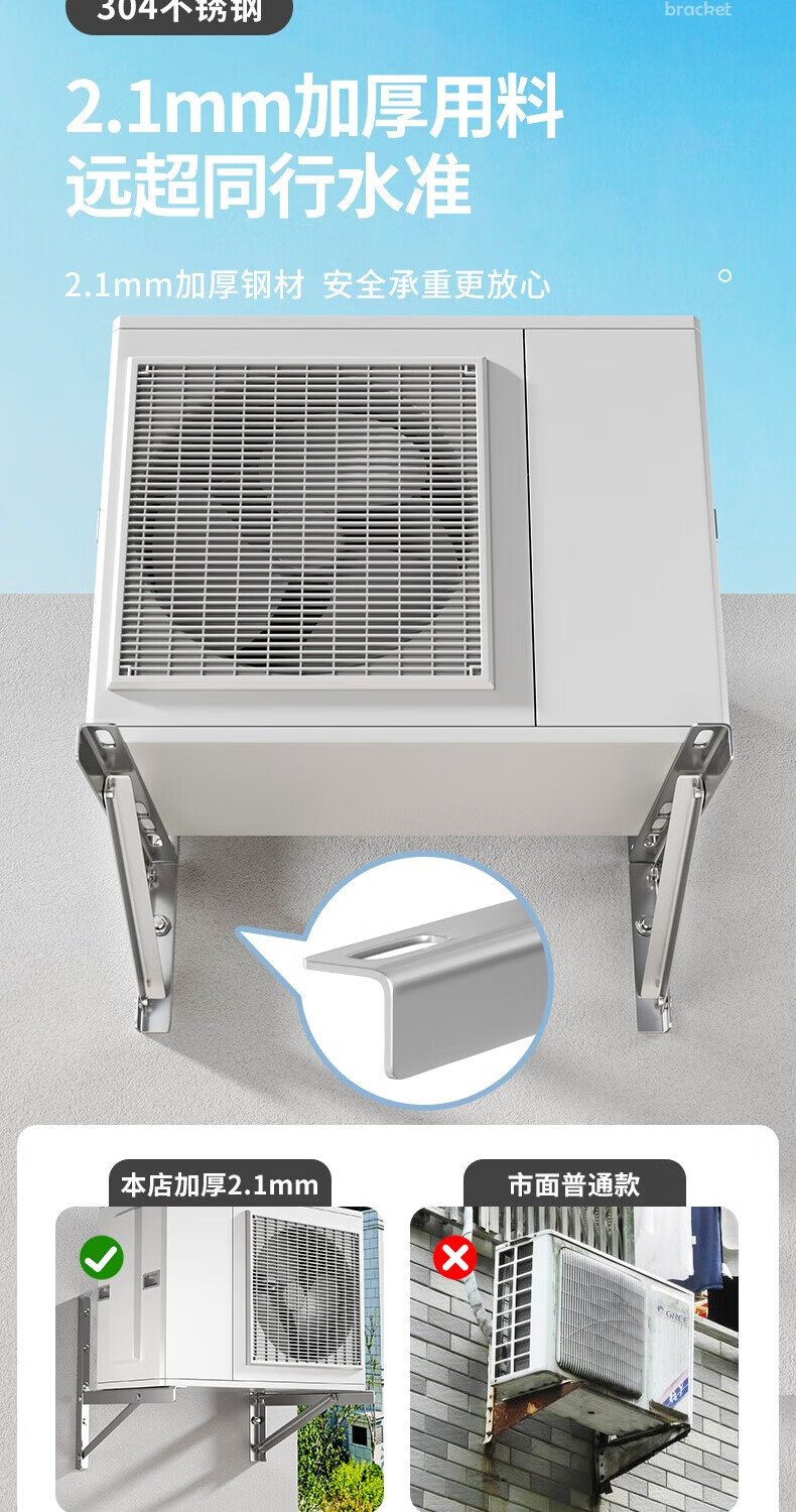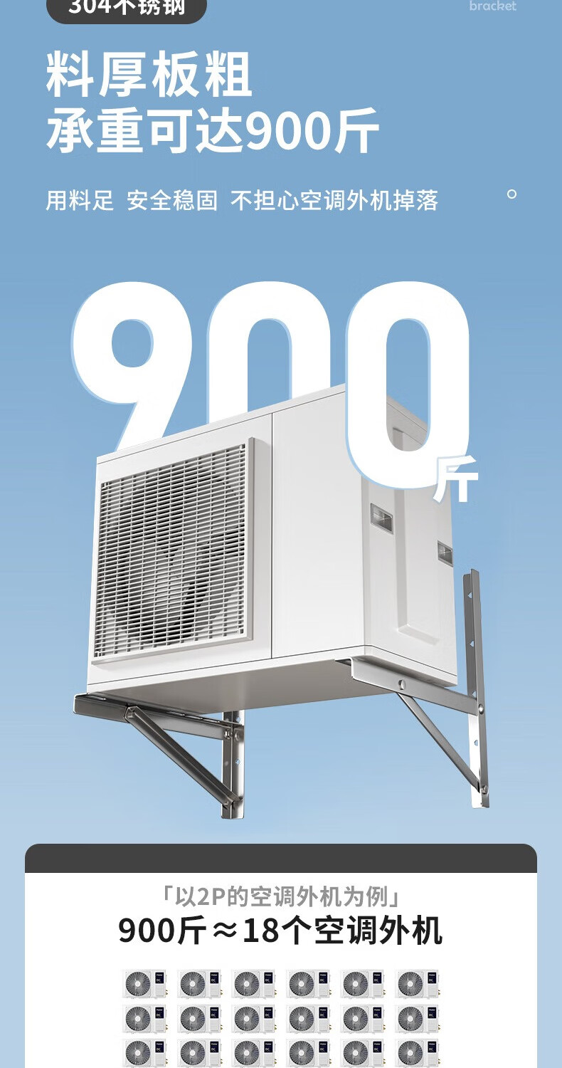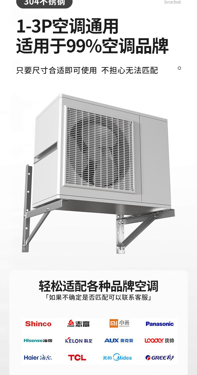 Minglus air conditioning bracket external unit 304 stainless steel universal 1.5 hp 2 hp 3 hp shelf external bracket external unit hanger suitable for Gree Haier Oaks Hisense Konka Daikin 1-1.5P thickened version/thickness 1.8MM load-bearing 350KG