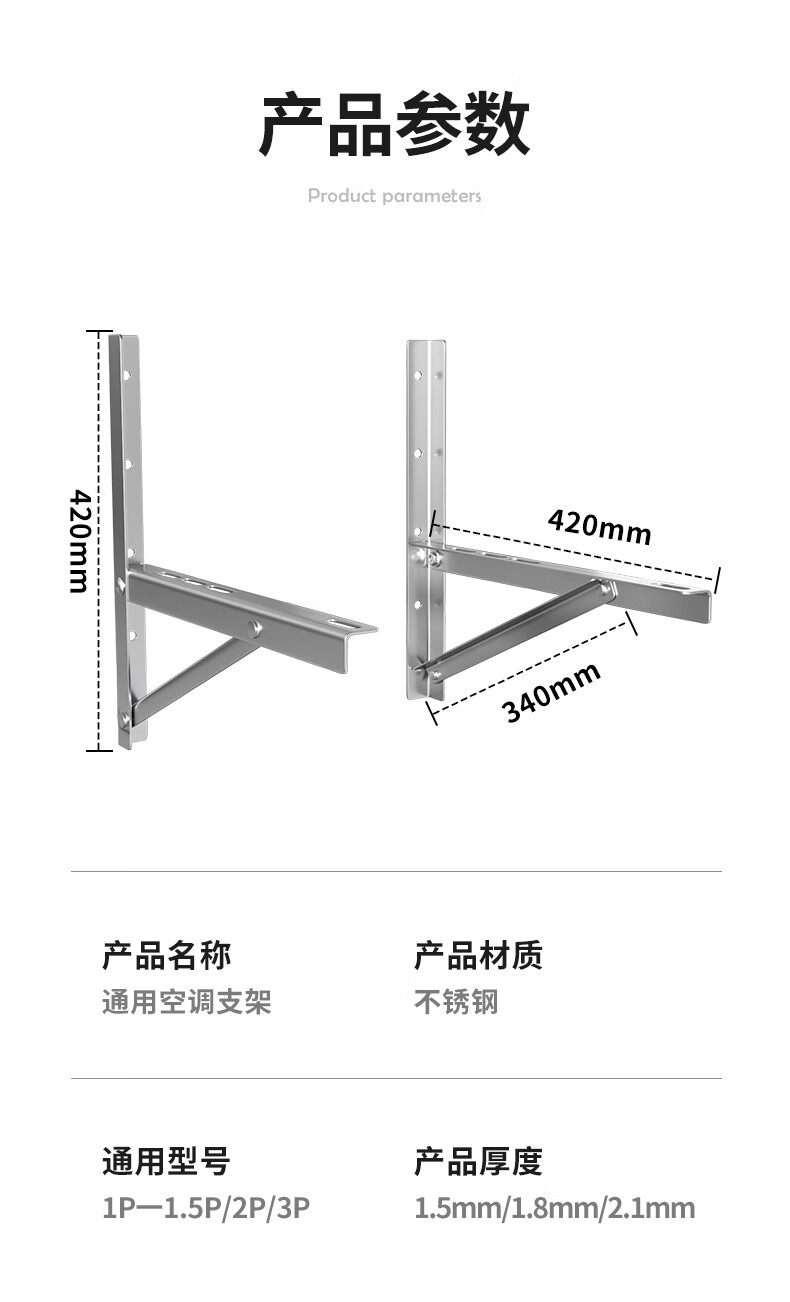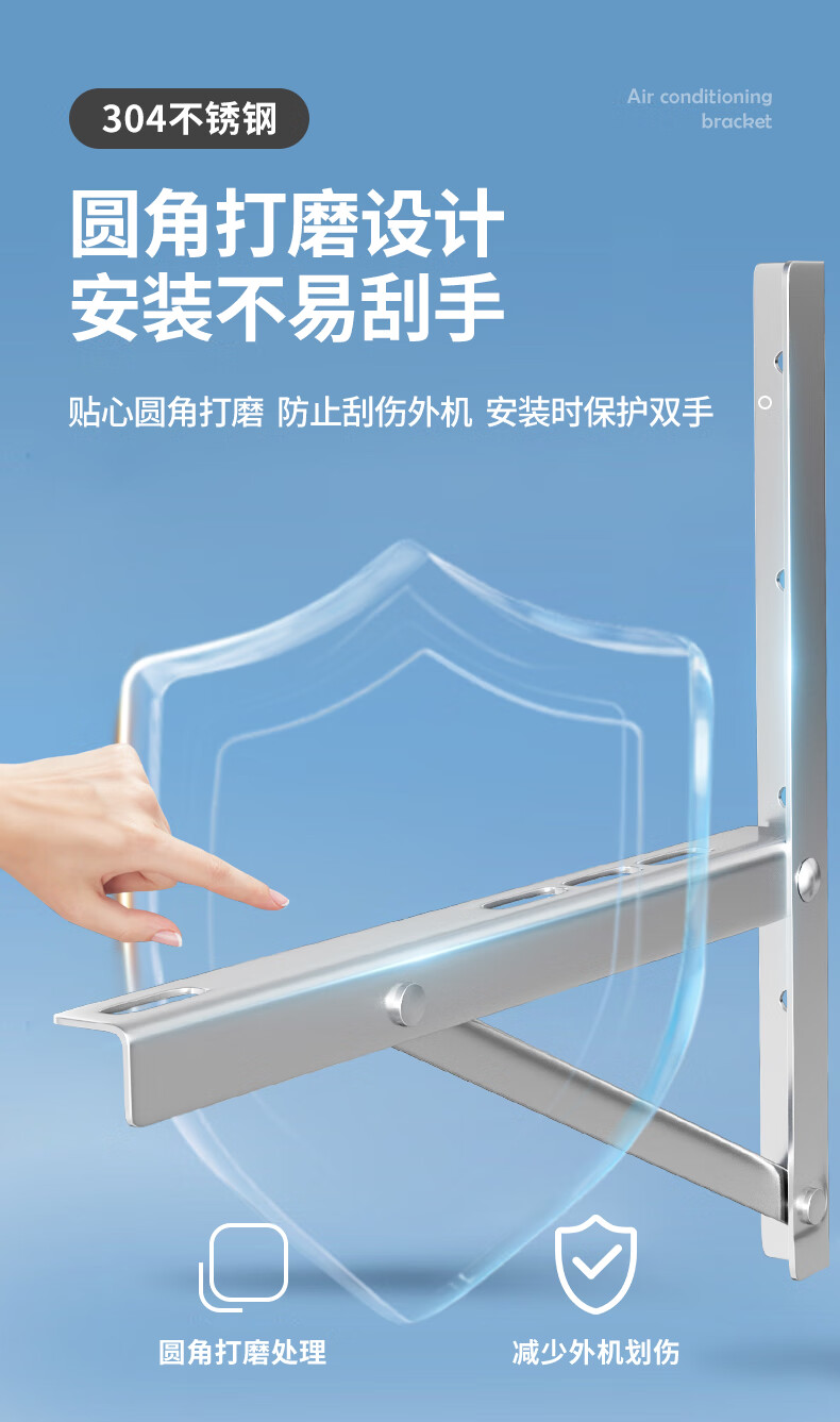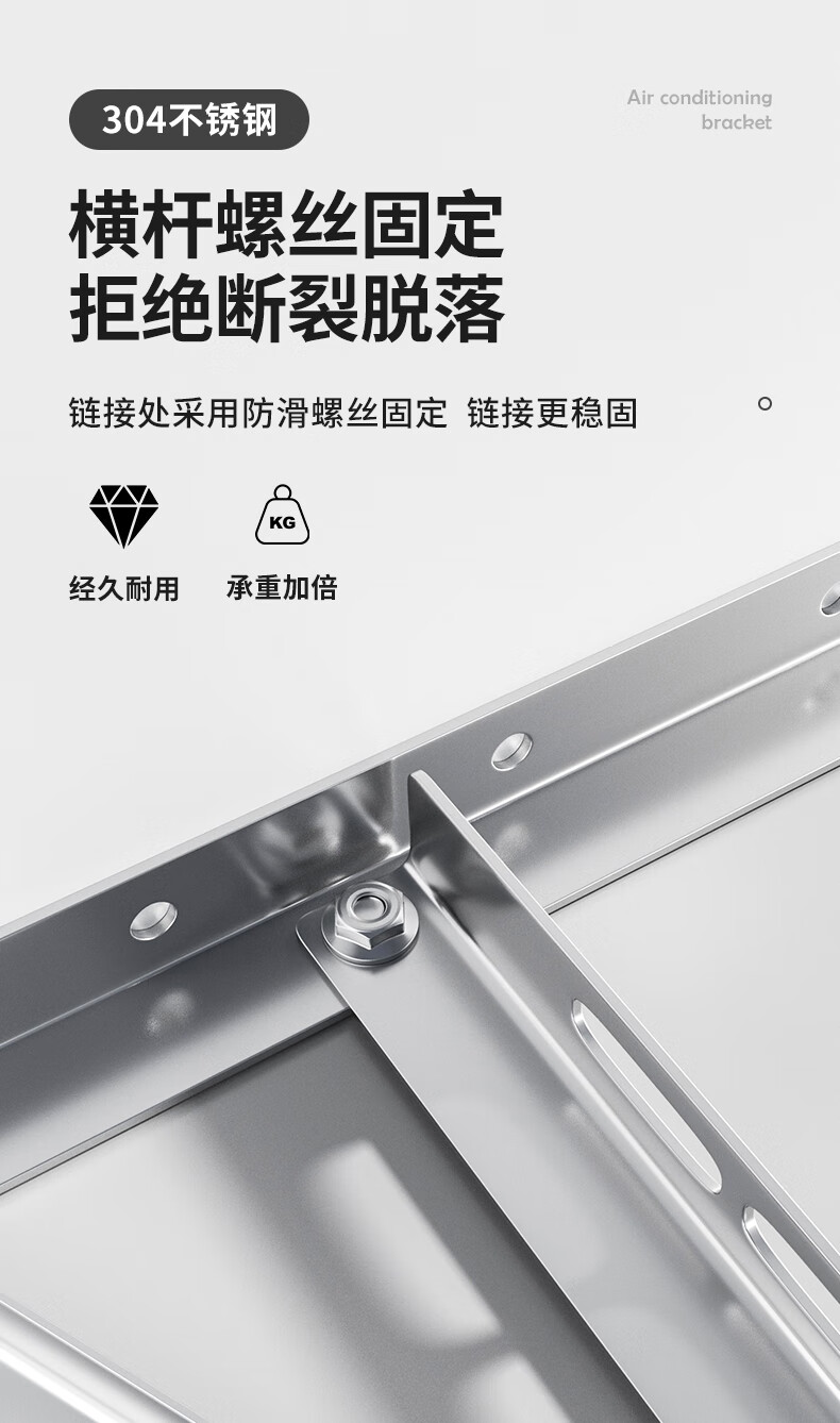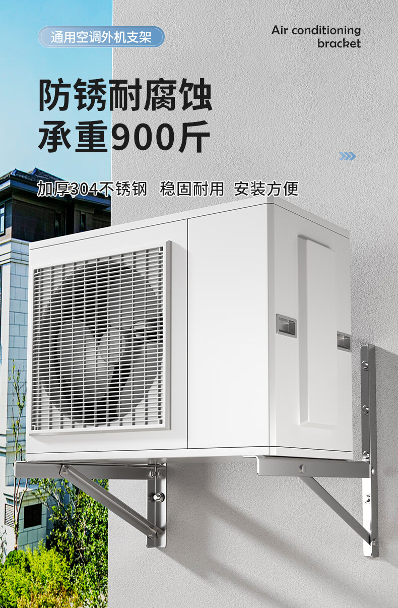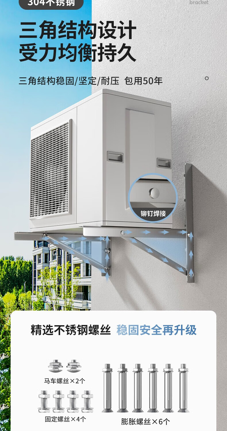 Minglus air conditioning bracket external unit 304 stainless steel universal 1.5 hp 2 hp 3 hp shelf external bracket external unit hanger suitable for Gree Haier Oaks Hisense Konka Daikin 1-1.5P thickened version/thickness 1.8MM load-bearing 350KG