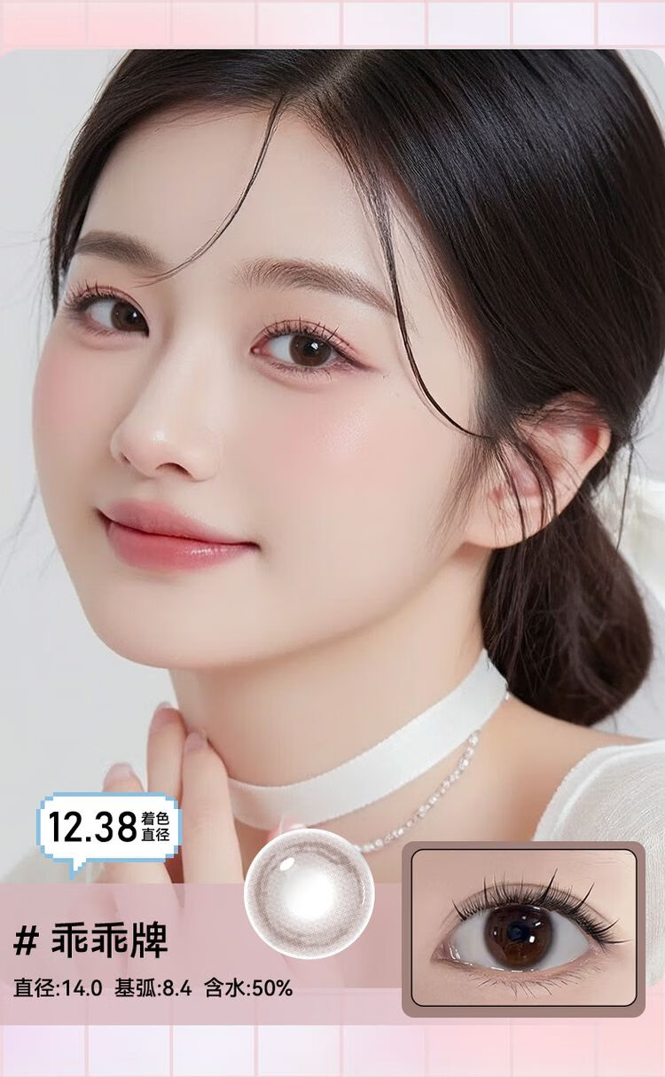 Han Jier color test set of 2 pieces, daily disposable color contact lenses, small diameter 12mm natural 13mm contact lenses, genuine, 2 pieces for daily use, Guaiguai brand - dyeing diameter 12.38mm, 0 degree