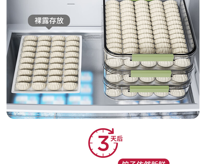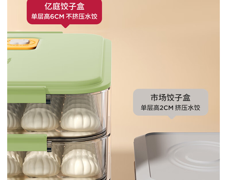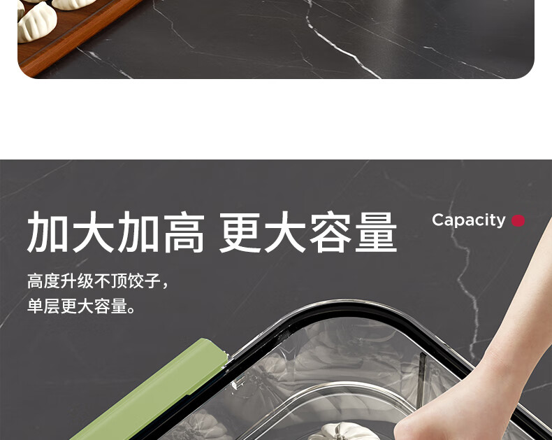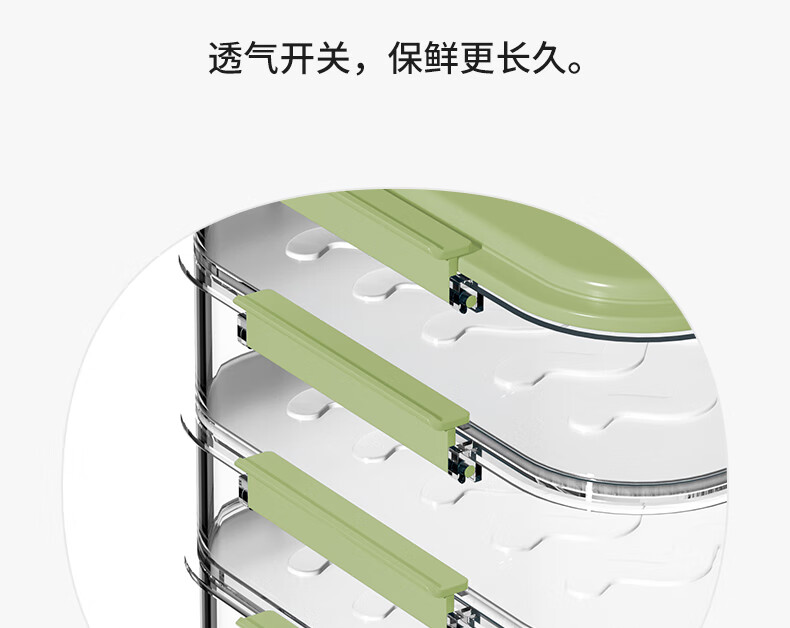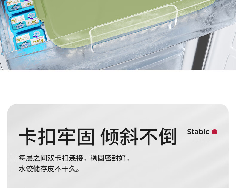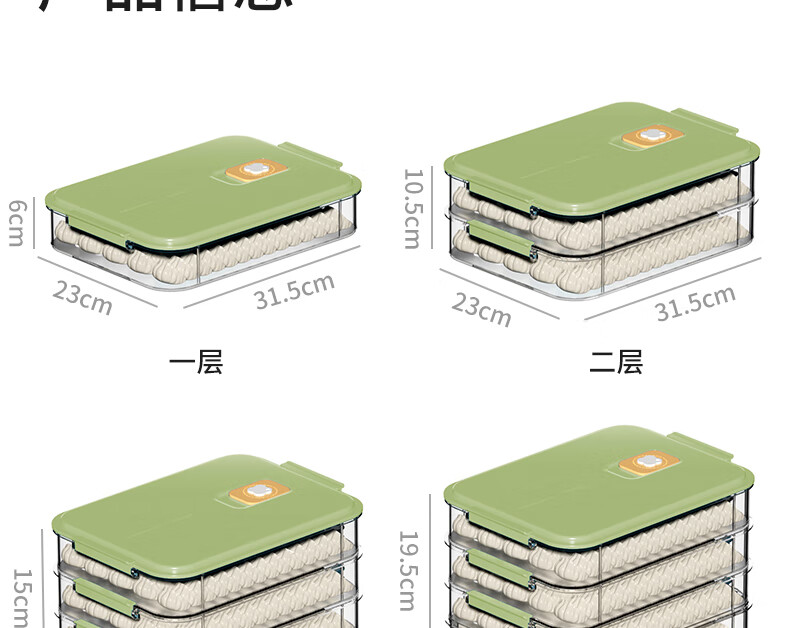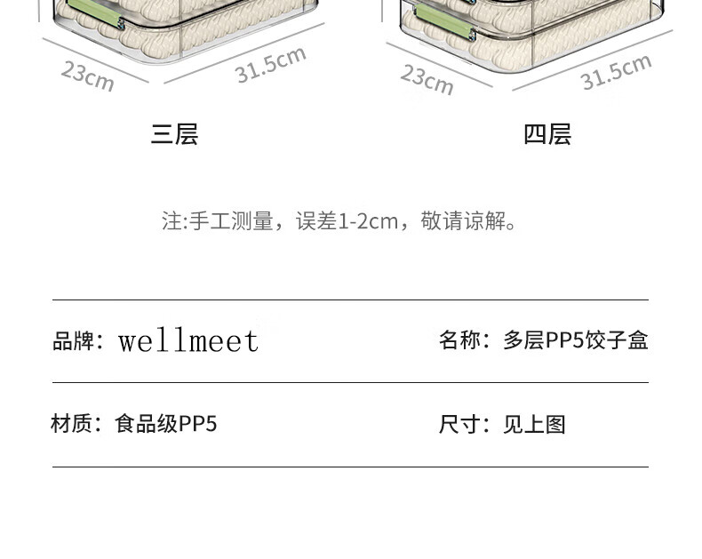 WELLMEET dumpling storage box for refrigerator, food-grade freezing, special kitchen quick-frozen dumpling crisper tray, wonton hand, green, 2 layers, non-stick bottom - holds 140 dumplings