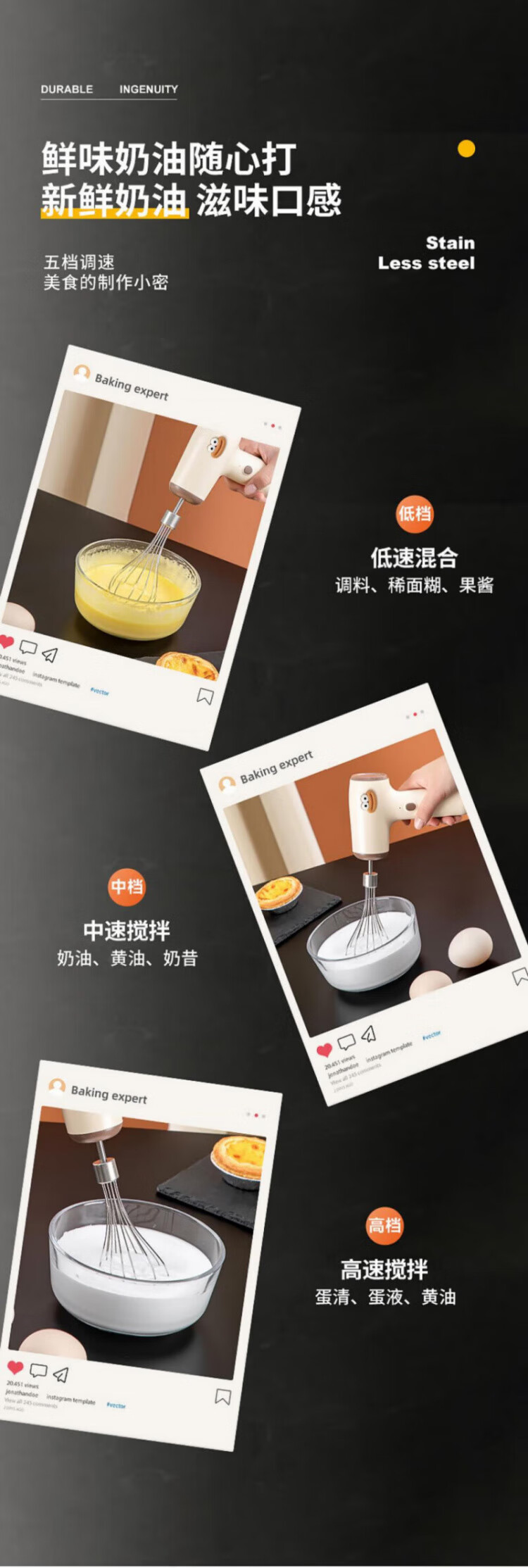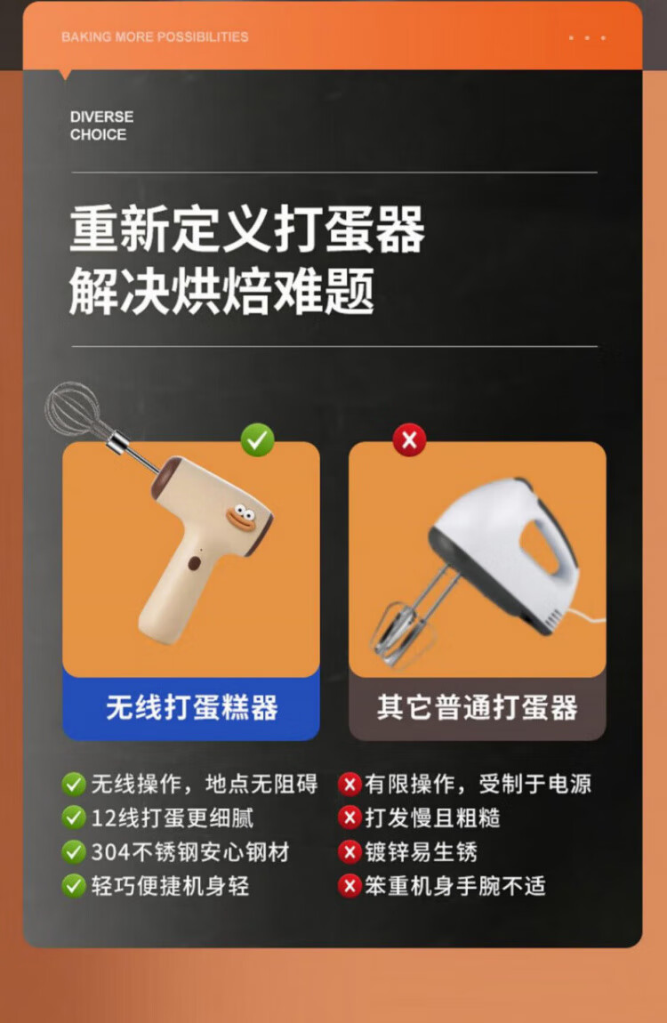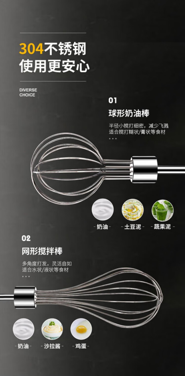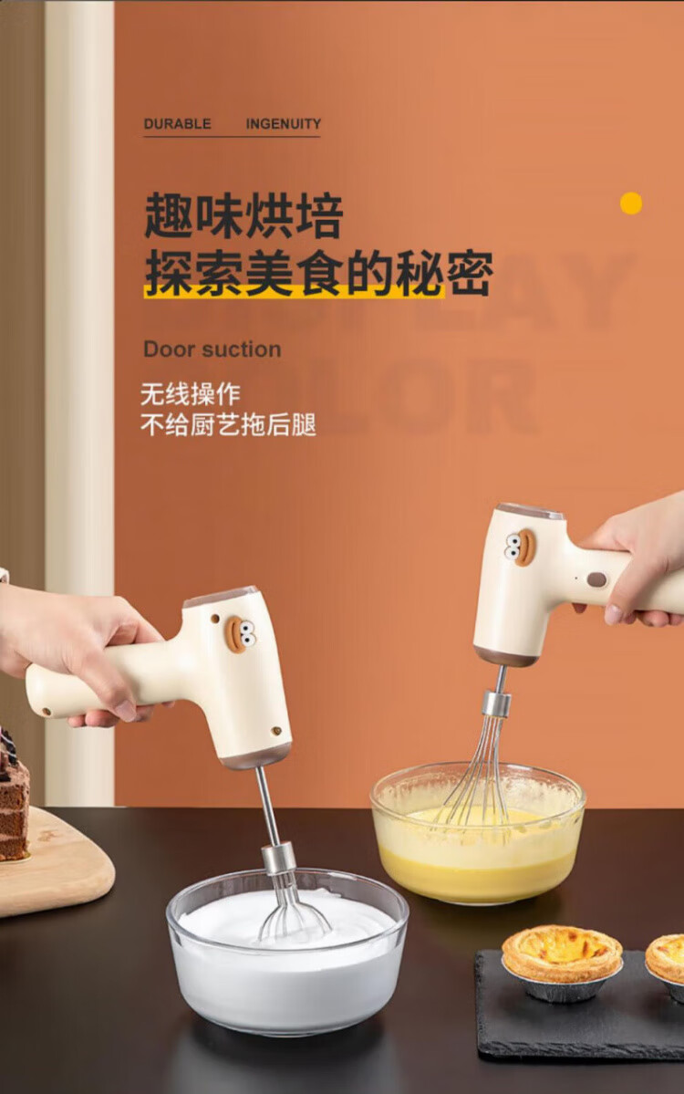 QCSK German electric egg beater household small baking cream whipper wireless egg beater cake cream mixer egg beater + cream stick five-speed smart model
