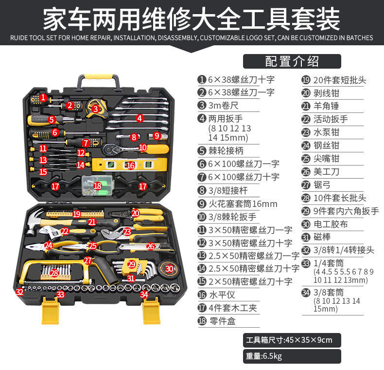 Ye Yu Tool Box Set Household Hardware Collection Screwdriver Pliers Household Daily Repair Set 105100 Household Daily Repair Tool Box
