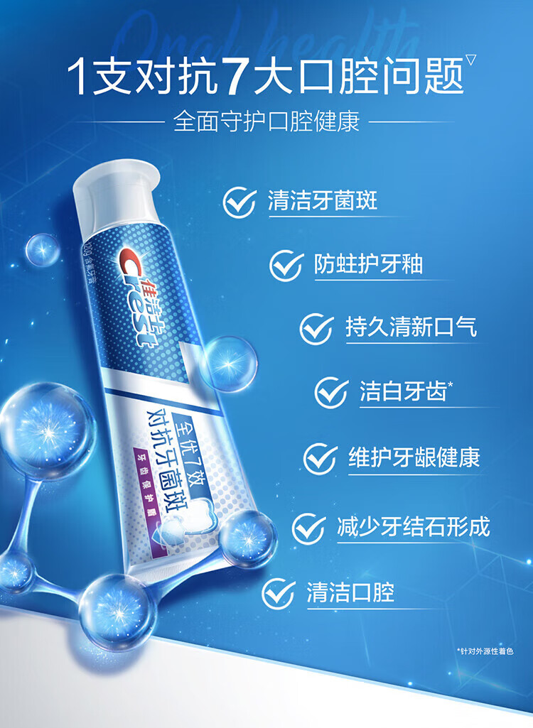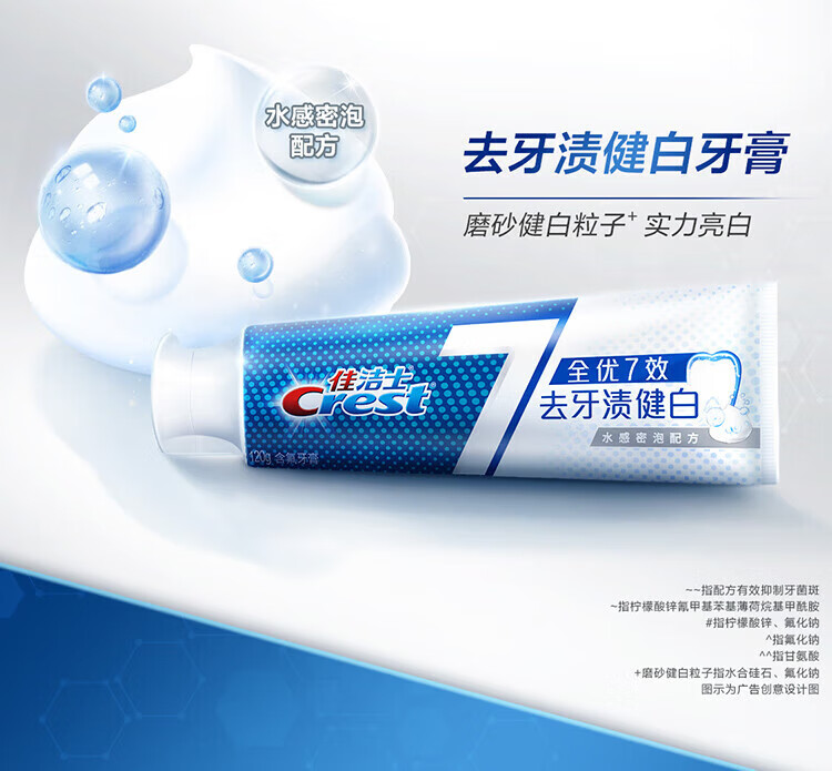 Crest 7-effect fluoride toothpaste 7-in-1 fresh breath 3D dazzling white toothpaste fluoride toothpaste for home use 6 pieces baking soda + double effect + jasmine total 920g