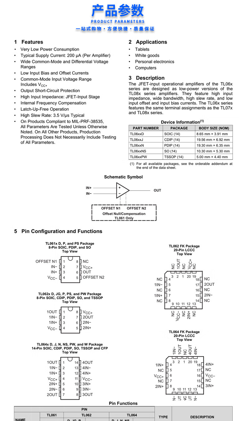 TL061 062 071 072 074 081 082 084CN/CP op amp chip direct plug-in patch TL072CPDIP-8 (2 pieces) No specifications
