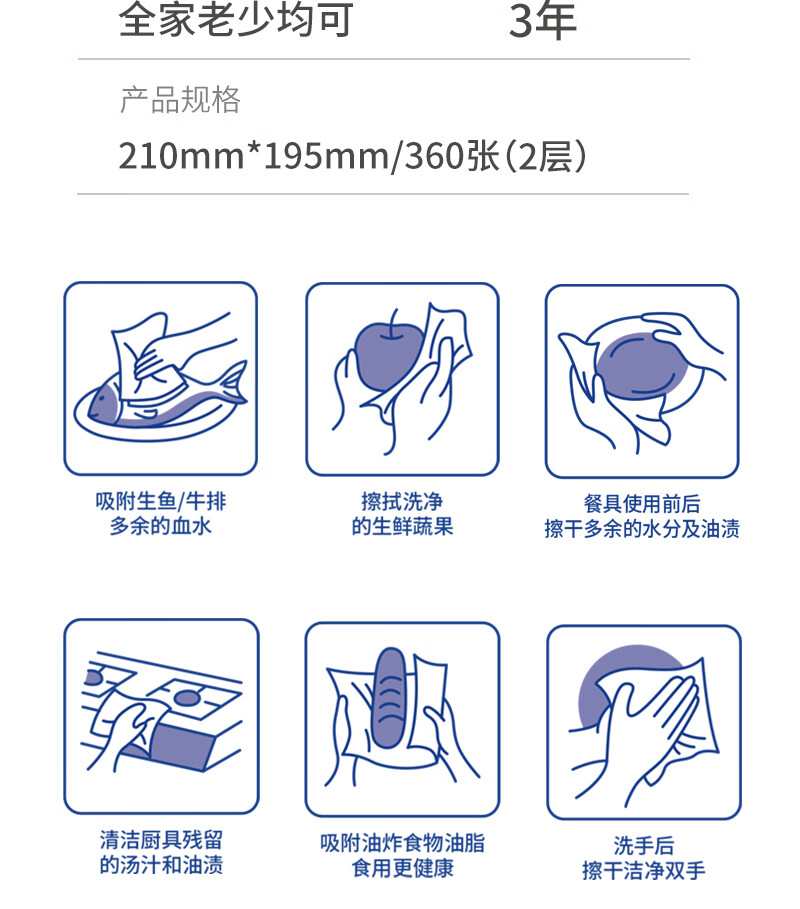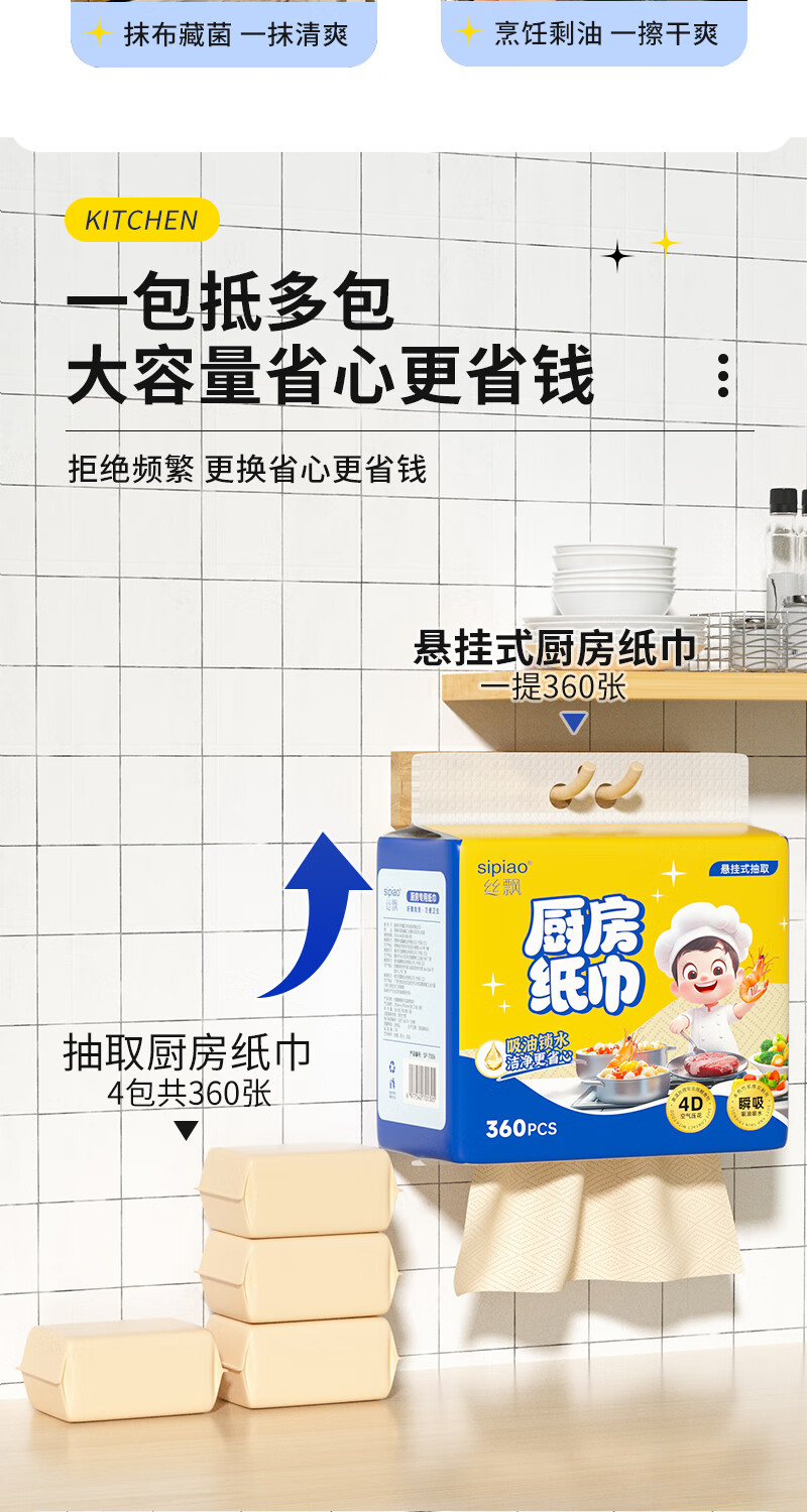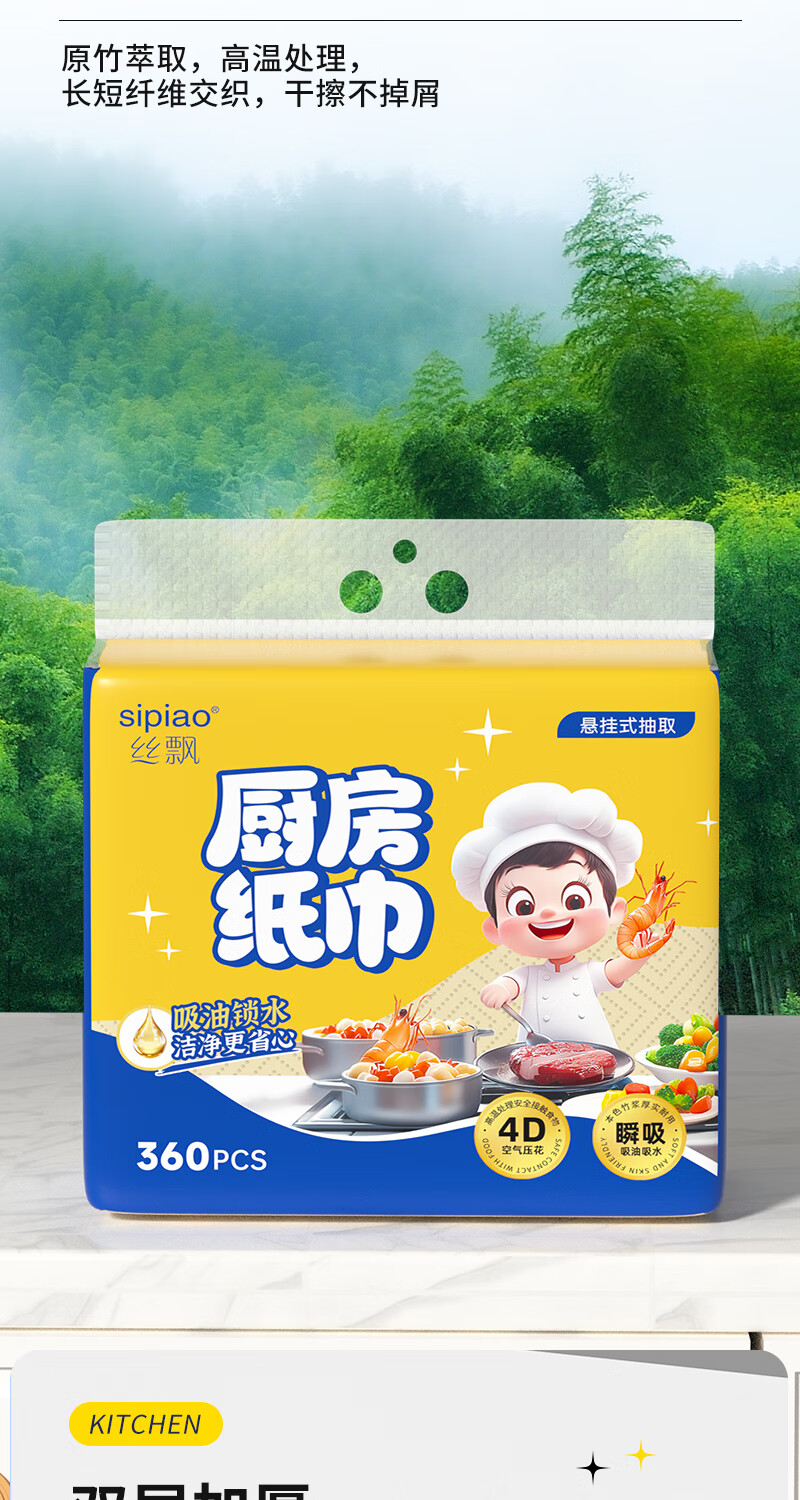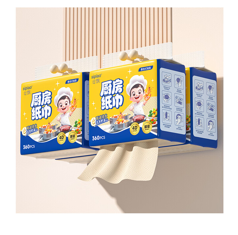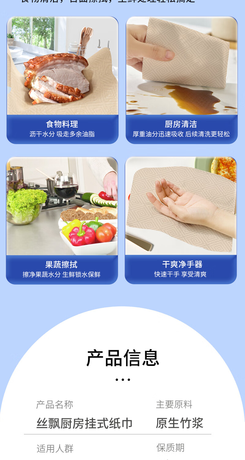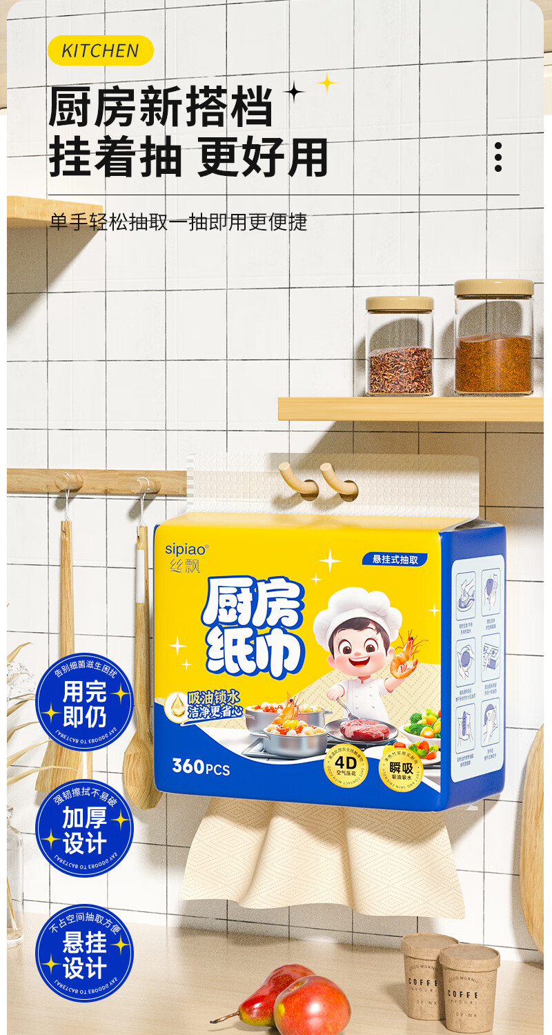 Silky kitchen paper towel hanging paper thickened water-absorbent and oil-absorbent paper towel kitchen paper Silky kitchen paper towel 2 layers 180 pumps * 2 packs