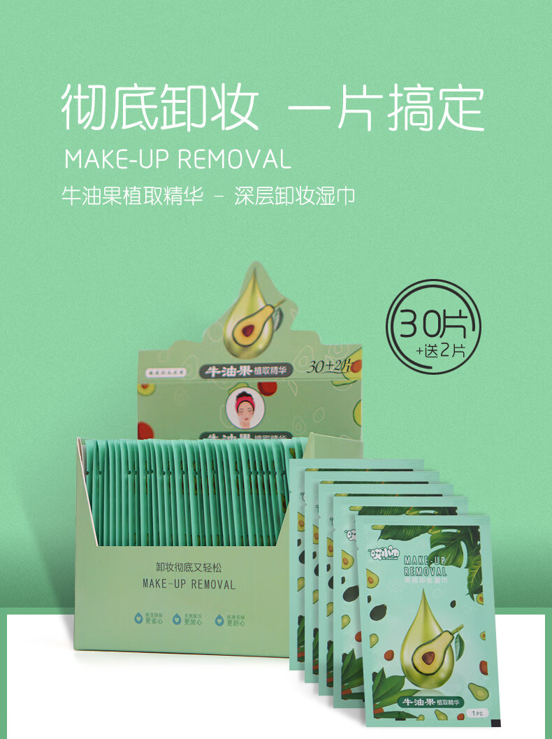 Makeup Remover Wipes Avocado Makeup Remover Wipes Single Piece Individually Packaged Makeup Remover Cotton Deep Cleansing Makeup Remover No-Wash Makeup Remover Wipes Makeup Remover Wipes 10 Pieces