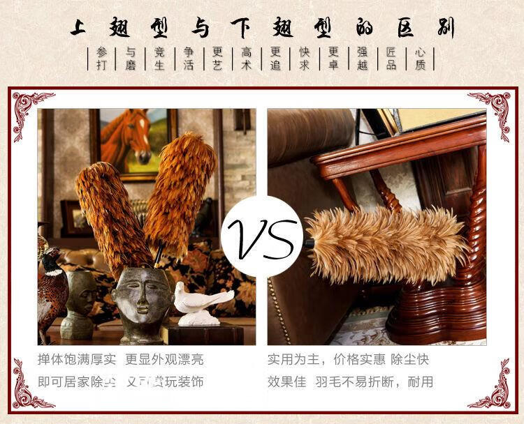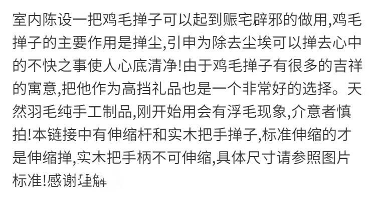 Feather duster removes dust without shedding hair, real household car dust sweeper telescopic cleaning Zenzi old-fashioned chicken feather sweep medium brown
