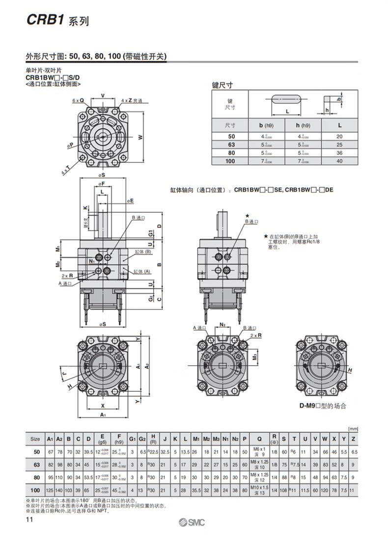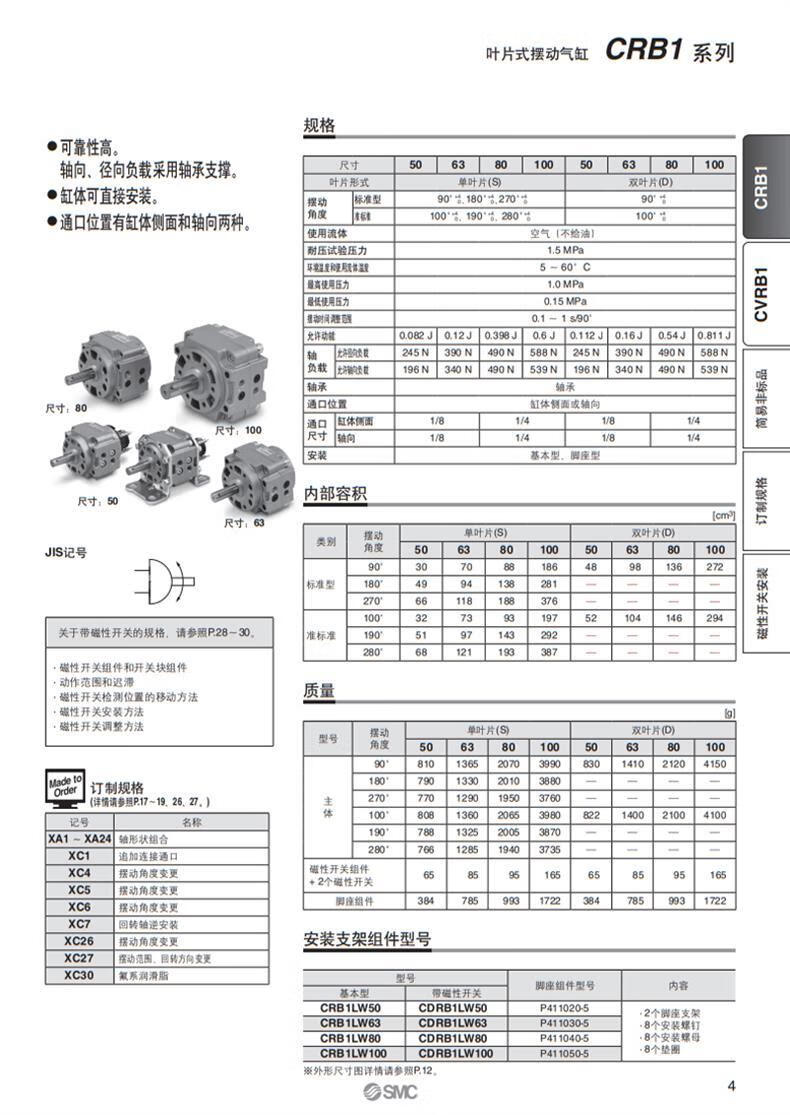 SMC blade rotating swing cylinder CRB1LW CRB1BW CDRB1BW50/63/80/100-90S/1 C CRB1LW63-180S