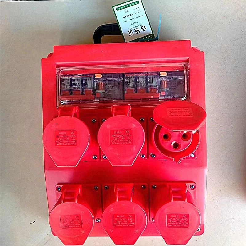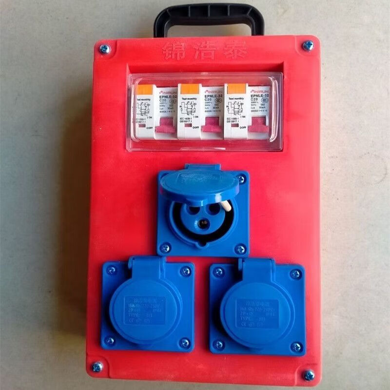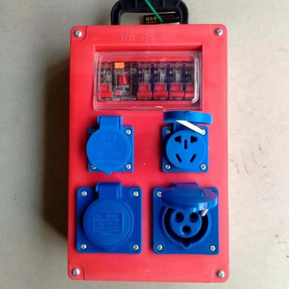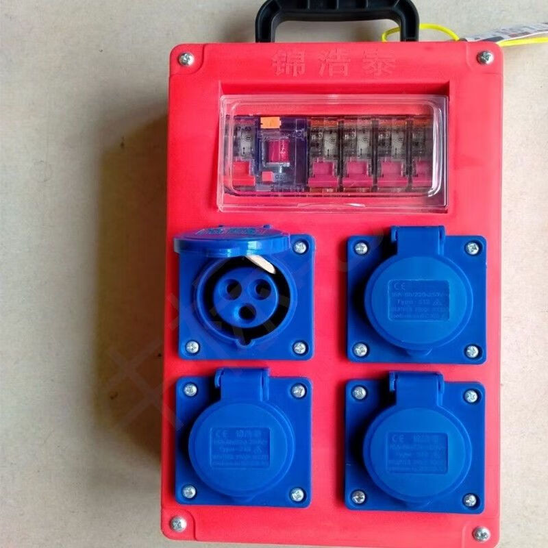 Construction site mobile suitcase 220v five-hole 10A16A leakage socket open three-core industrial plug 380v 4-core 32A new eight-bit waterproof five-hole one control and one protection
