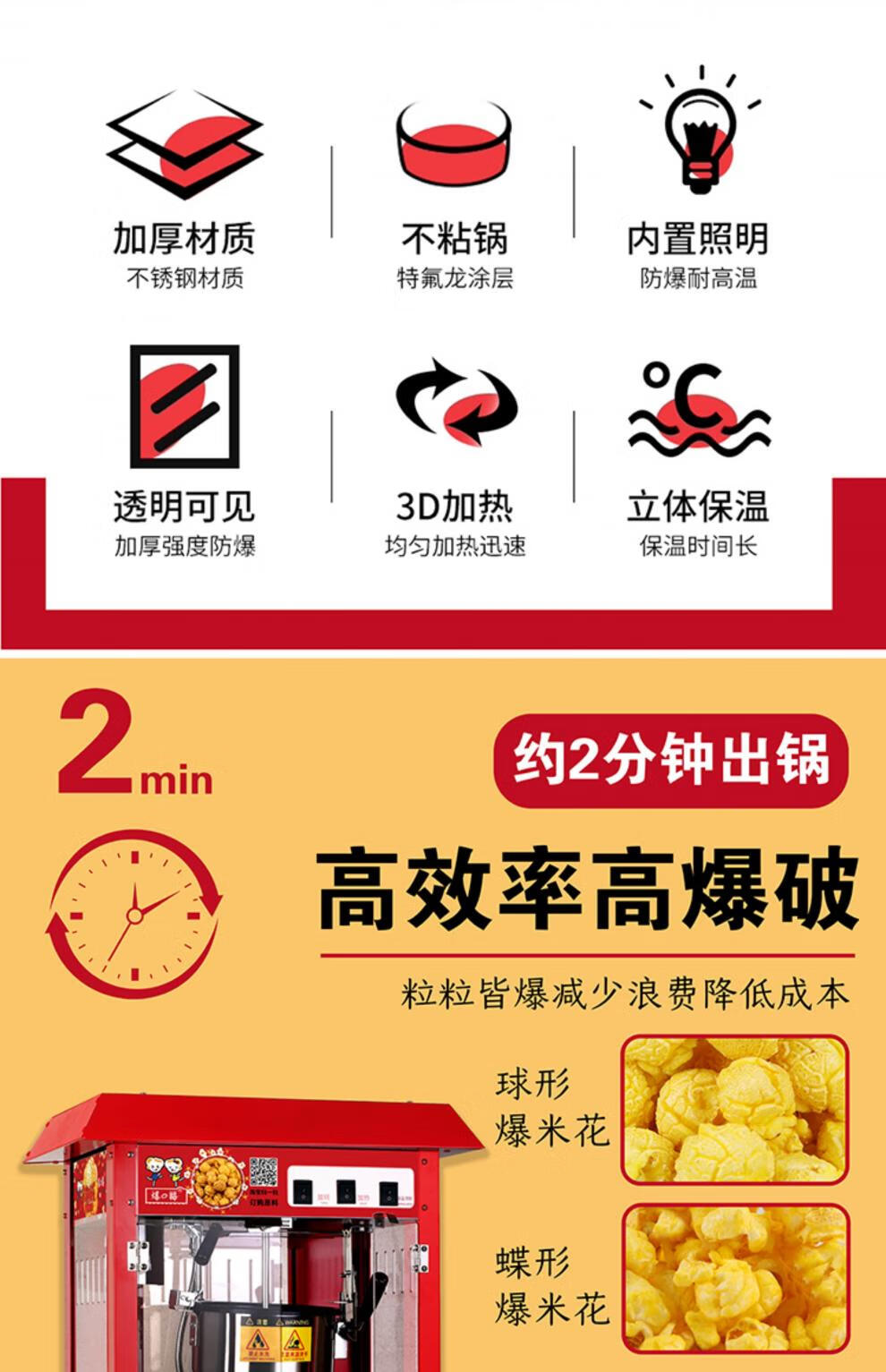 Commercial popcorn machine fully automatic electric stall popcorn popcorn new spherical popcorn machine red roof popcorn machine
