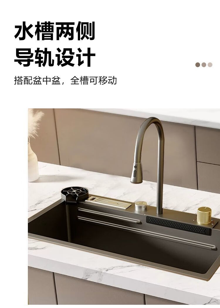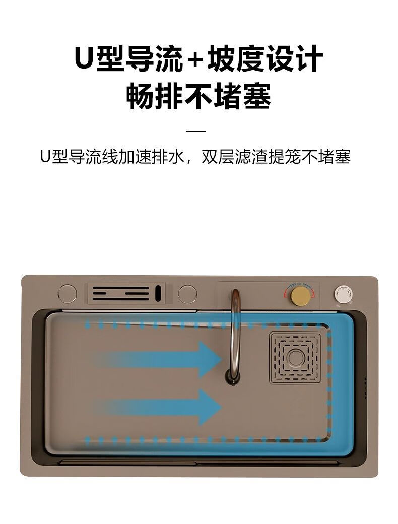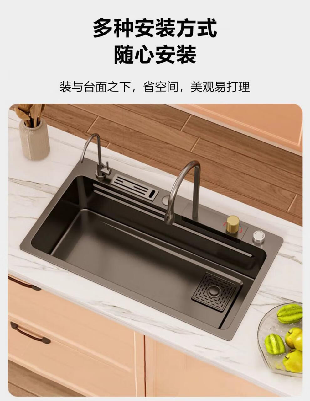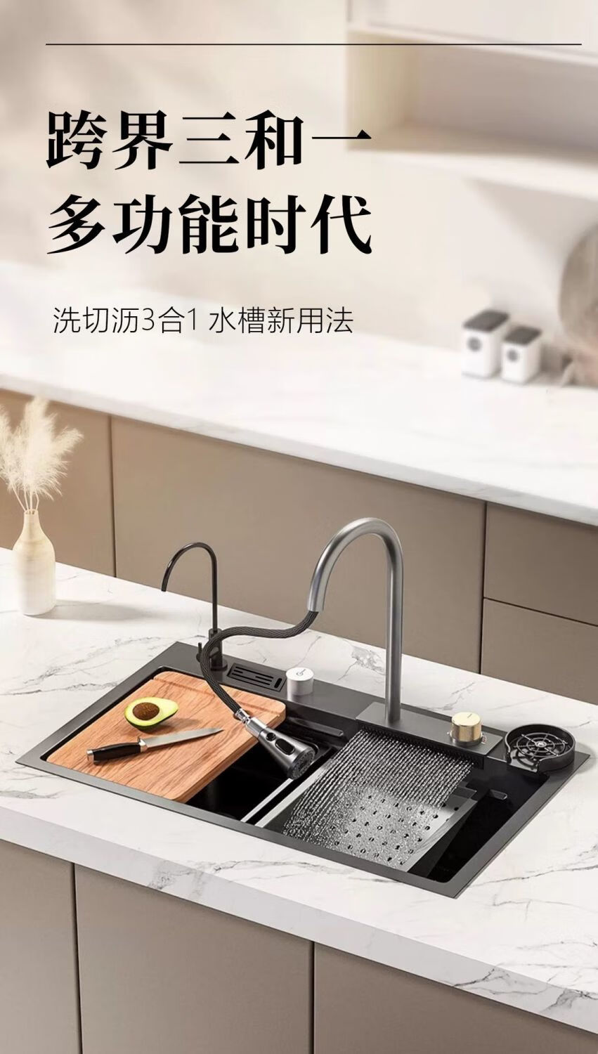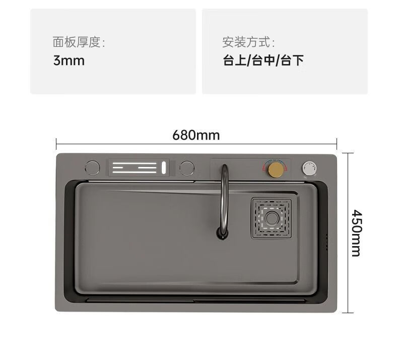 Ye Yuqiang gray kitchen sink Raindance large single-slot material sink with knife holder 68*45 top version