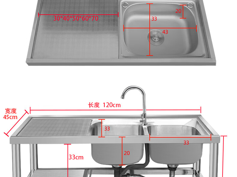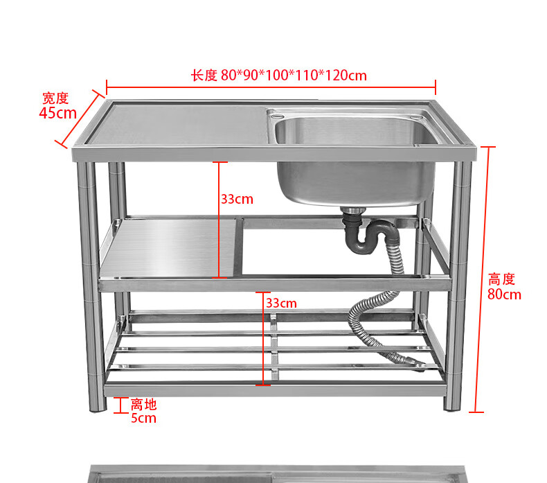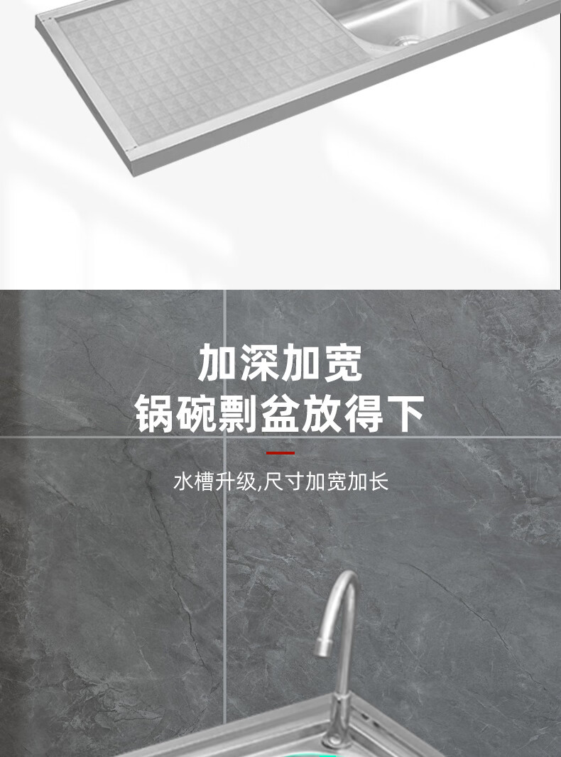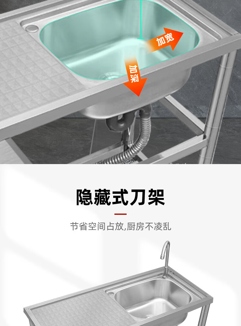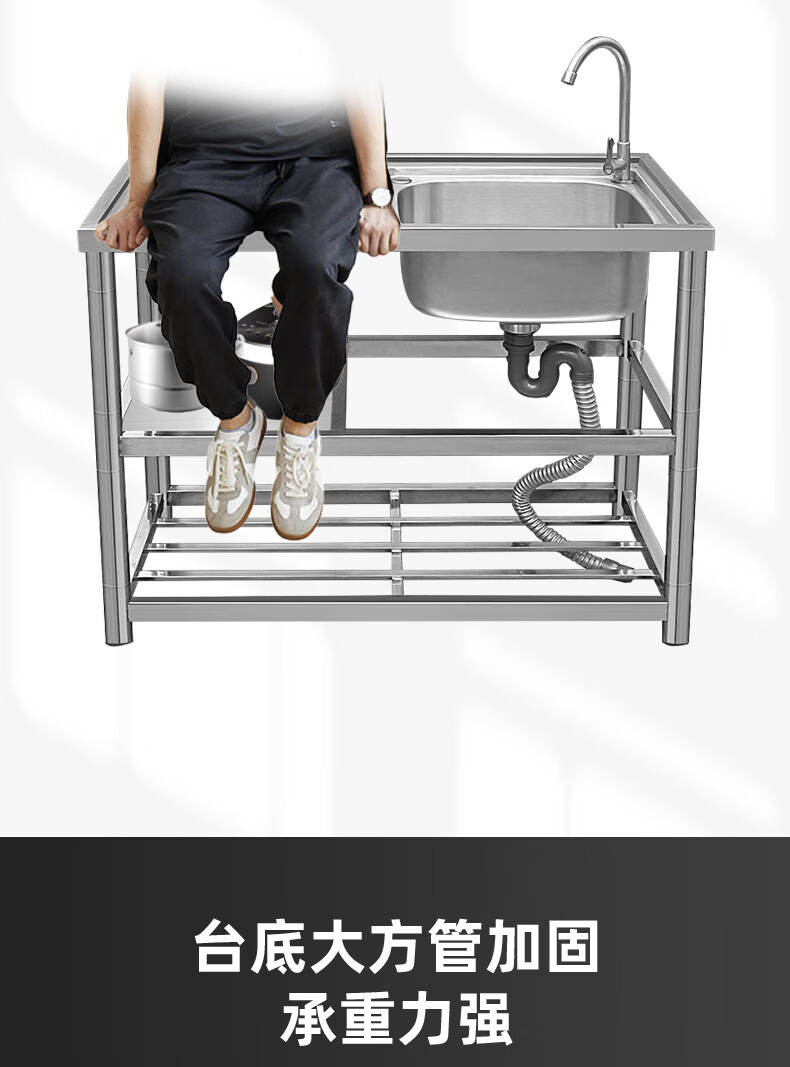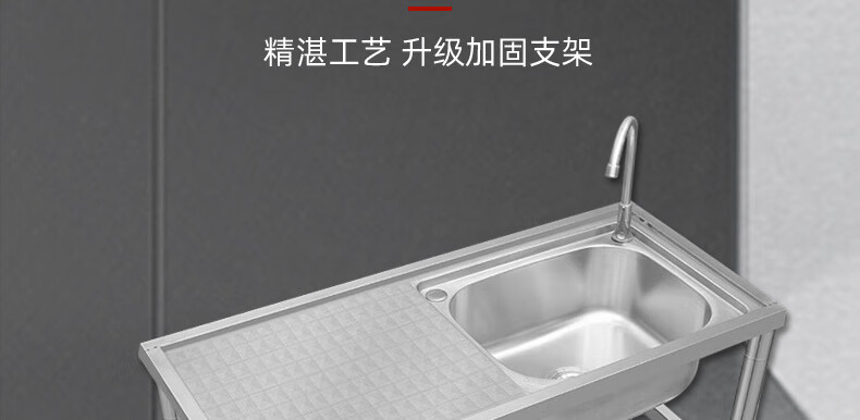 Ye Yu stainless steel sink with bracket kitchen wash basin countertop integrated dishwashing sink household single sink vegetable basin double sink single cold faucet package 120* thickened three-layer right single sink