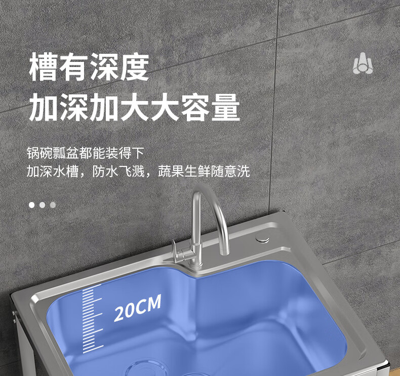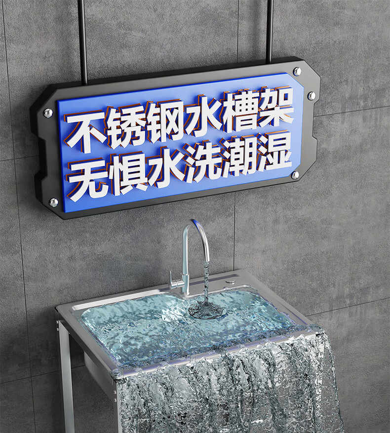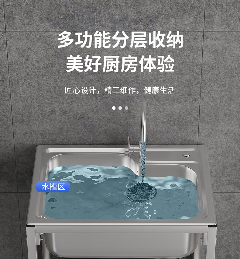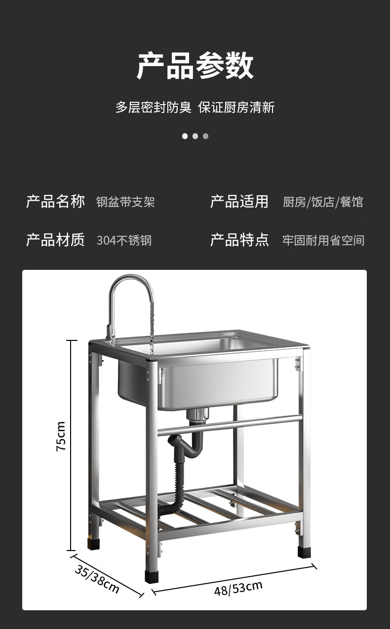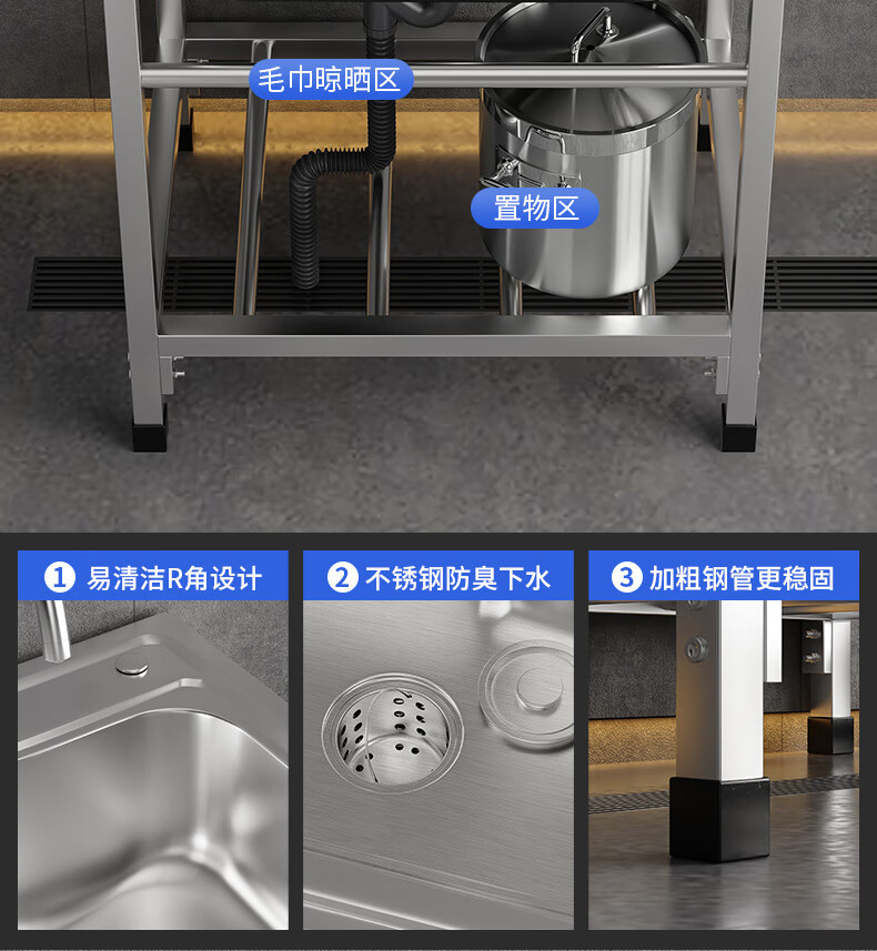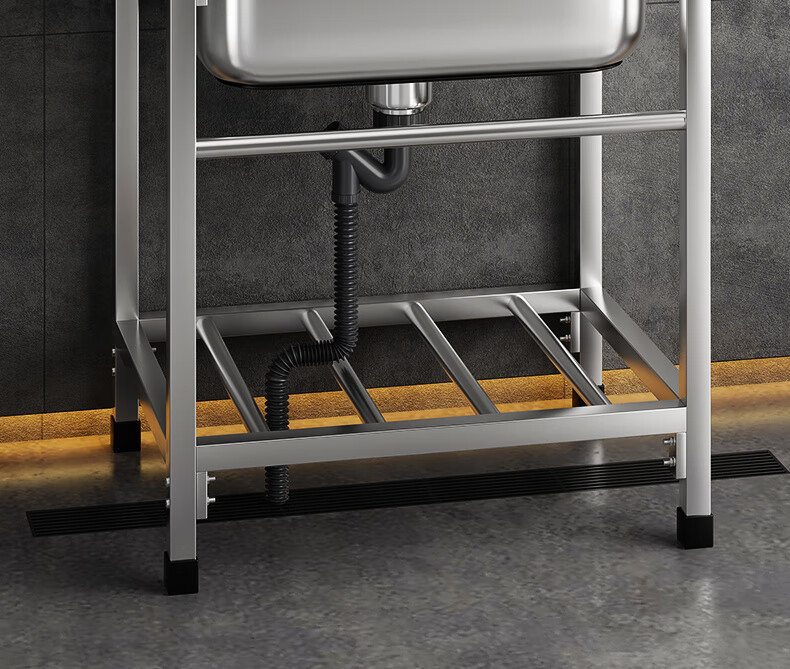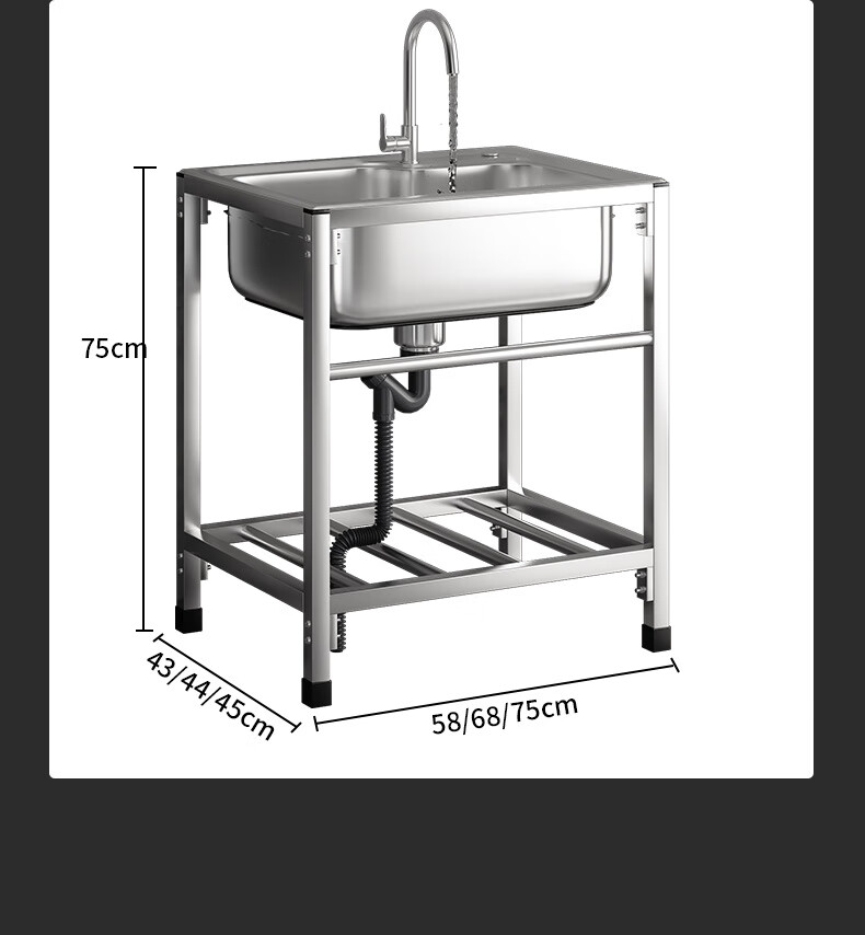 Ye Yu Kitchen Thick Simple Stainless Steel Sink Single Slot Double Slot Large Single Slot Water Basin Wash Basin Washing Sink Rack with Stand Ordinary Steel Welding 68*44 (Single Cold Faucet)