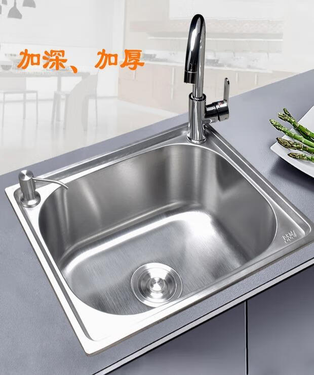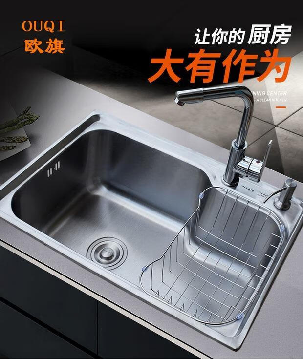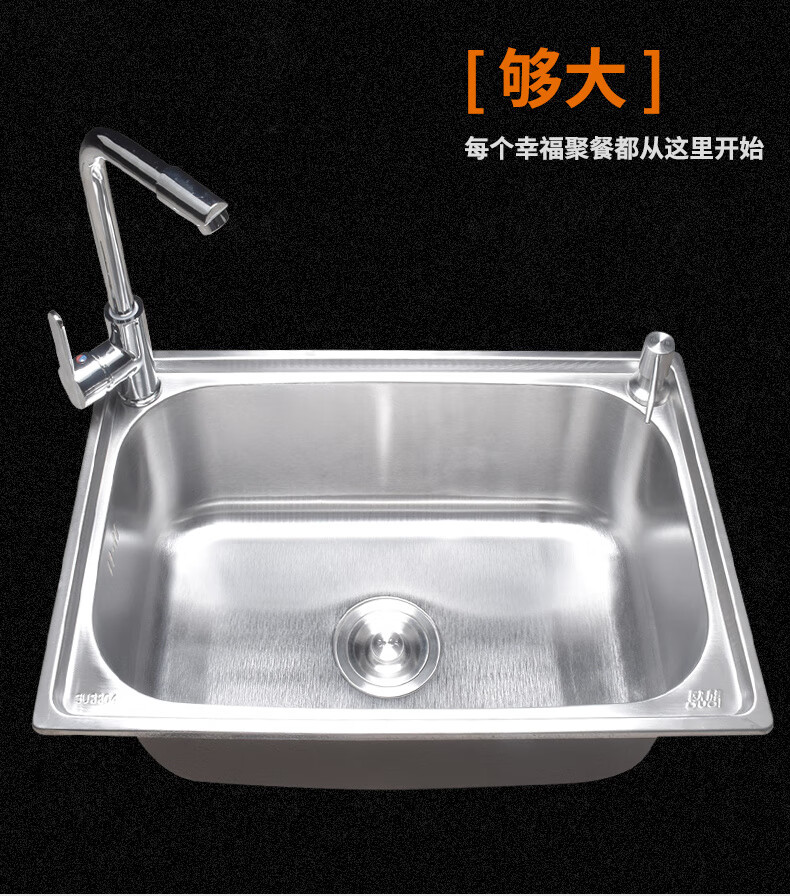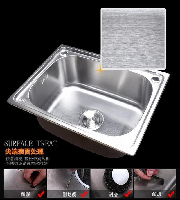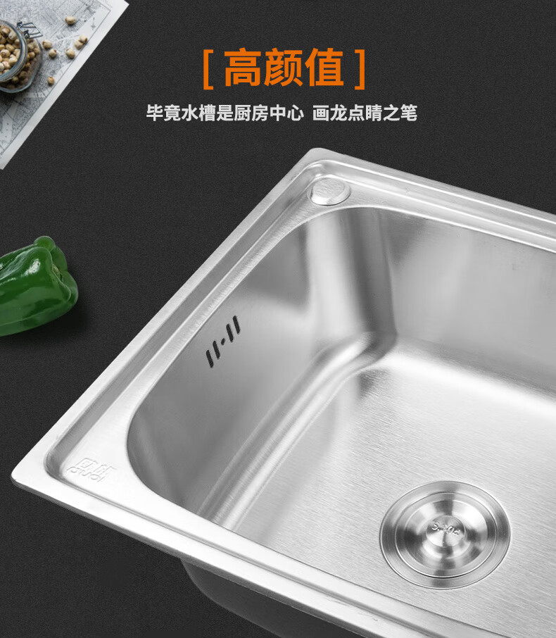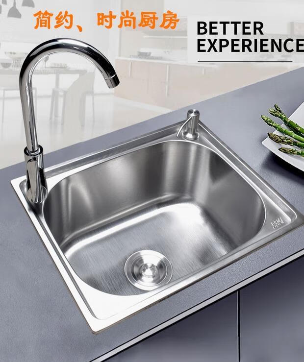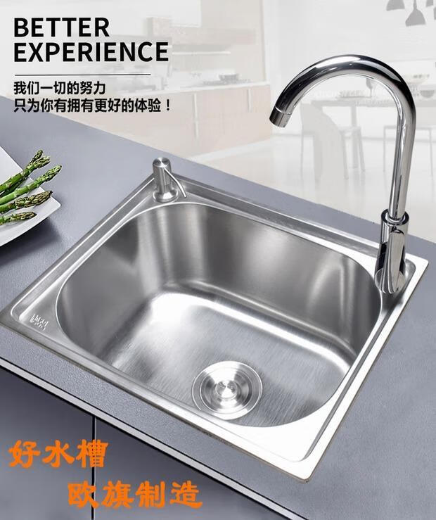 Yeyu SUS304 stainless steel sink single-slot thickened one-piece large single-slot sink sink enjoy package (sixteen-piece set) 304 steel - thickened 58X42 thick 1.2