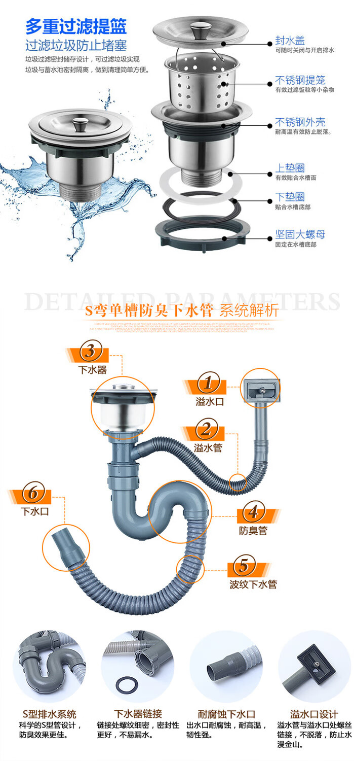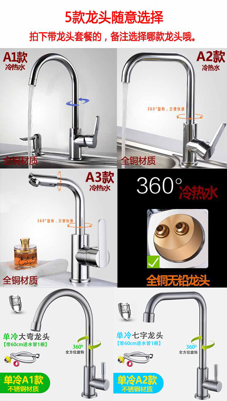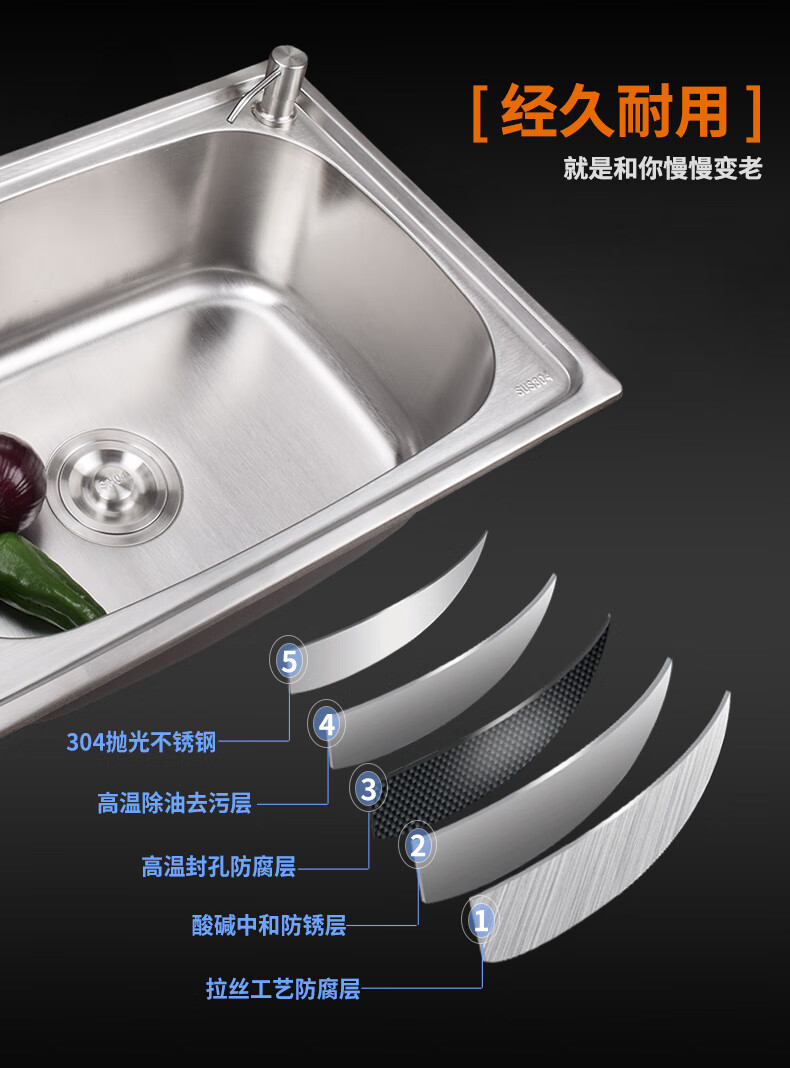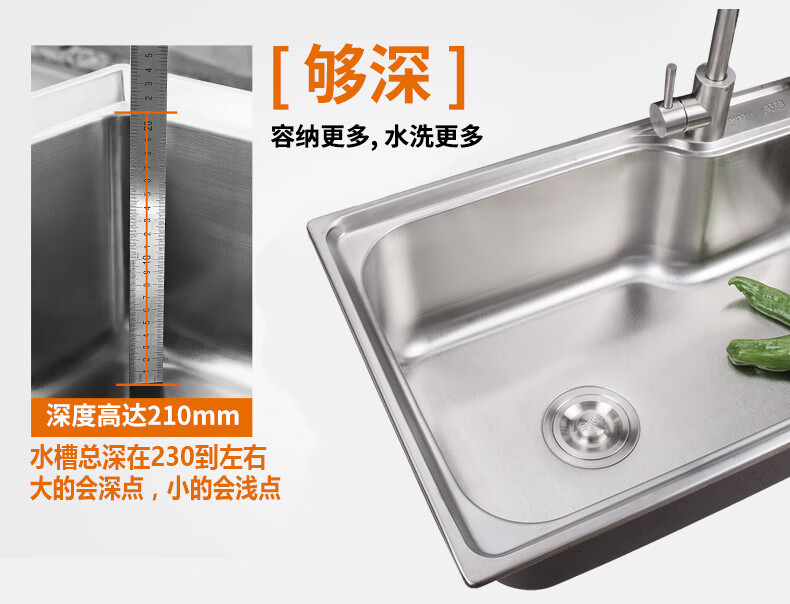 Yeyu SUS304 stainless steel sink single-slot thickened one-piece large single-slot sink sink enjoy package (sixteen-piece set) 304 steel - thickened 58X42 thick 1.2