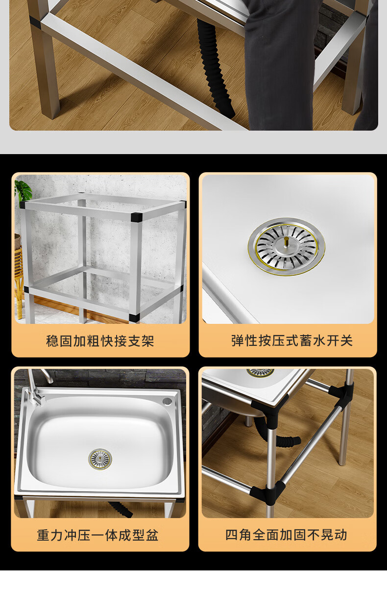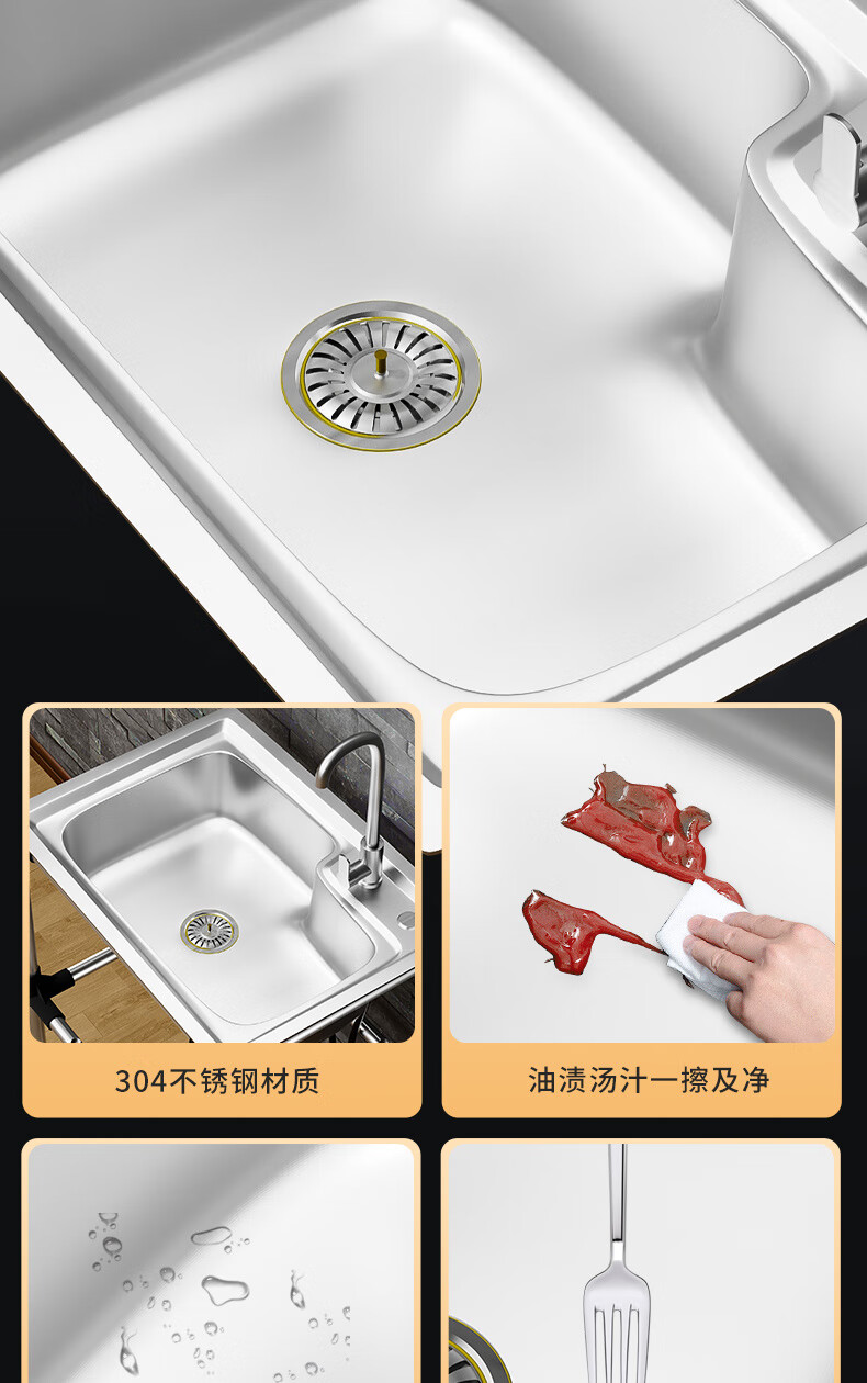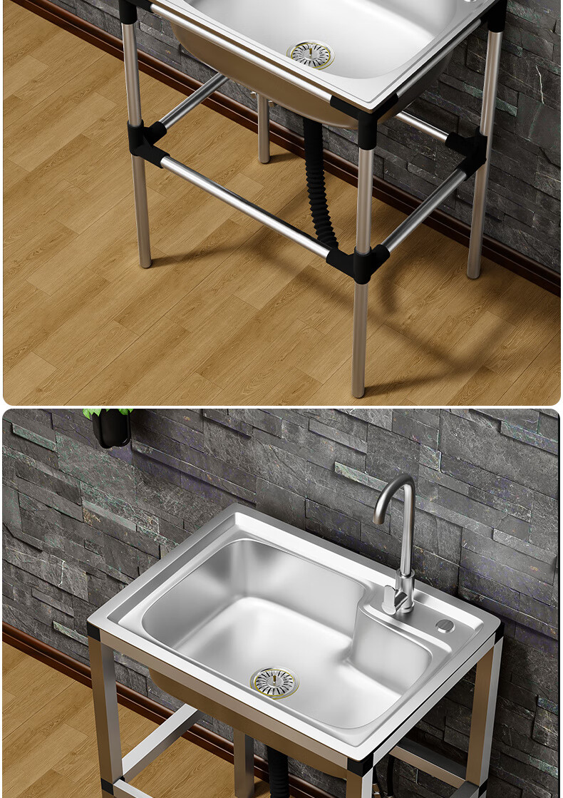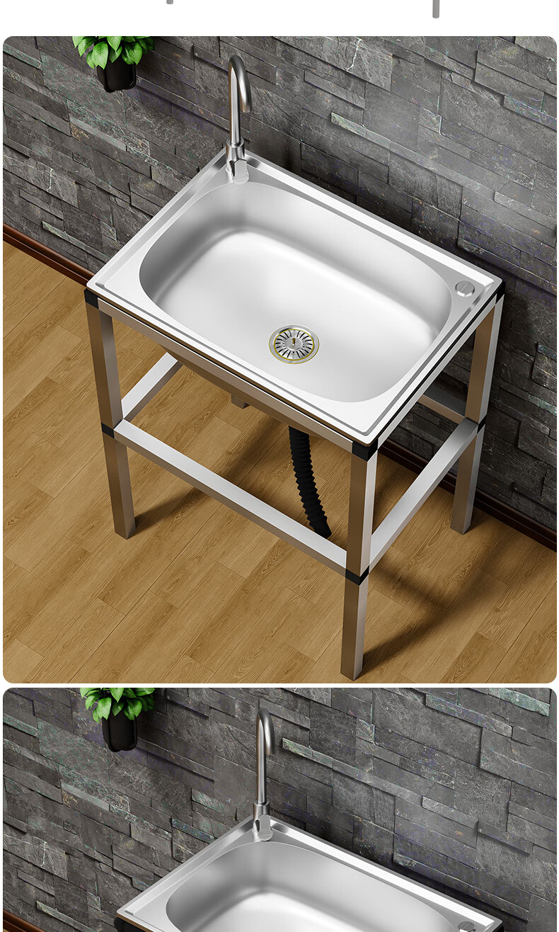 Ye Yu thickened stainless steel floor-standing sink kitchen dishwashing sink household large single tank integrated commercial water hot and cold faucet package 58*43-thick 304 steel