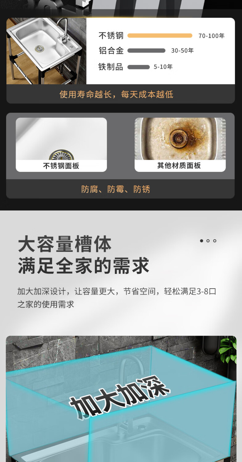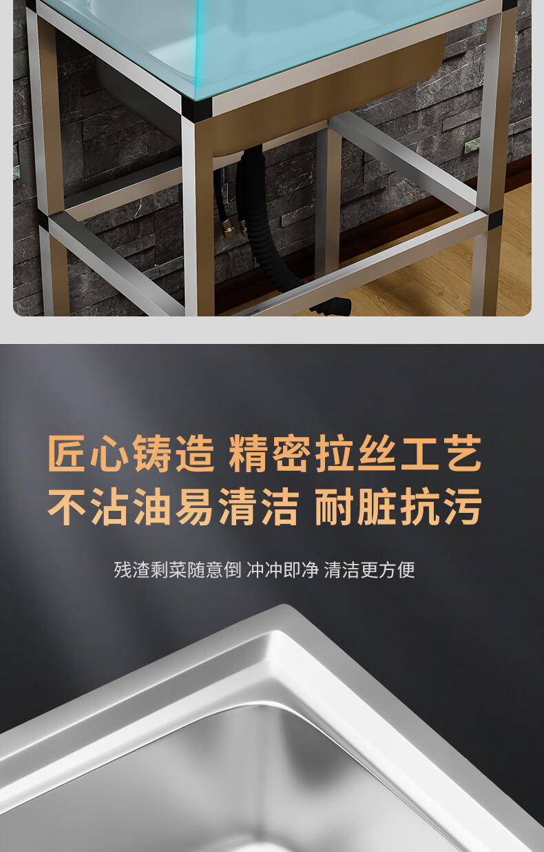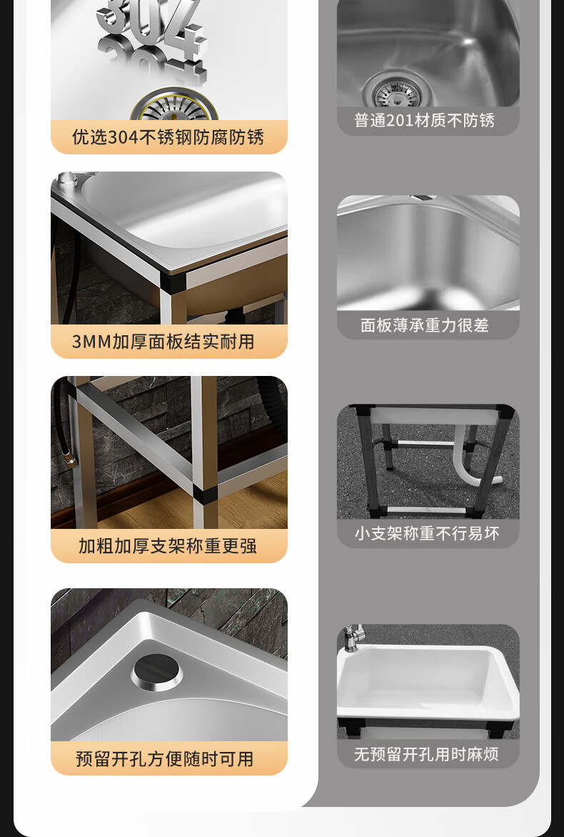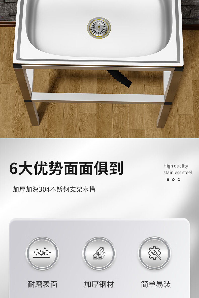 Ye Yu thickened stainless steel floor-standing sink kitchen dishwashing sink household large single tank integrated commercial water hot and cold faucet package 58*43-thick 304 steel