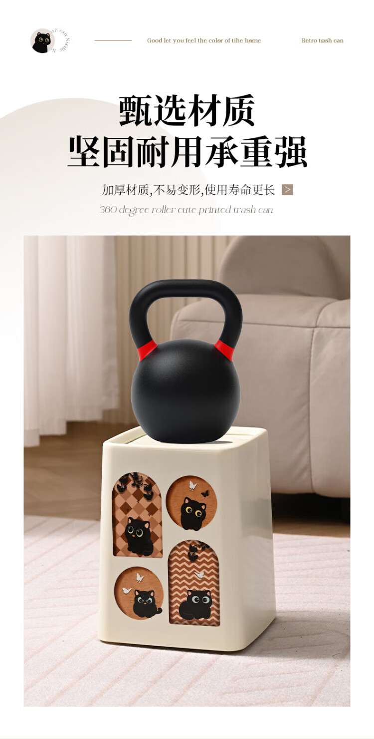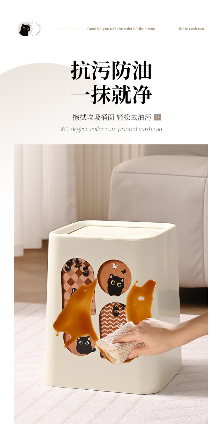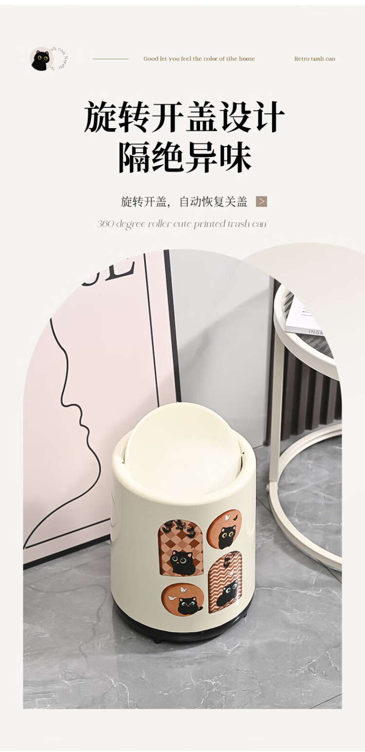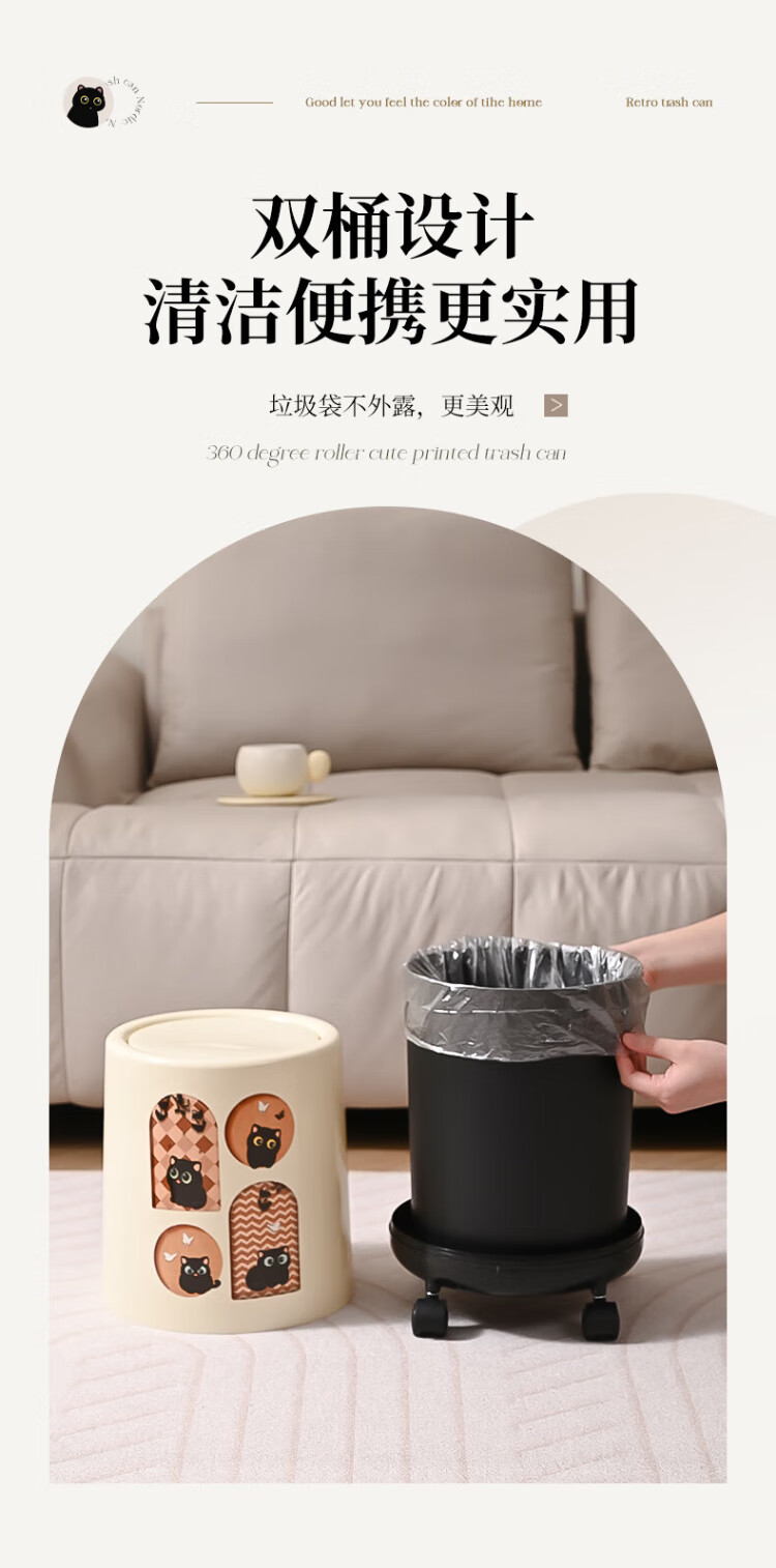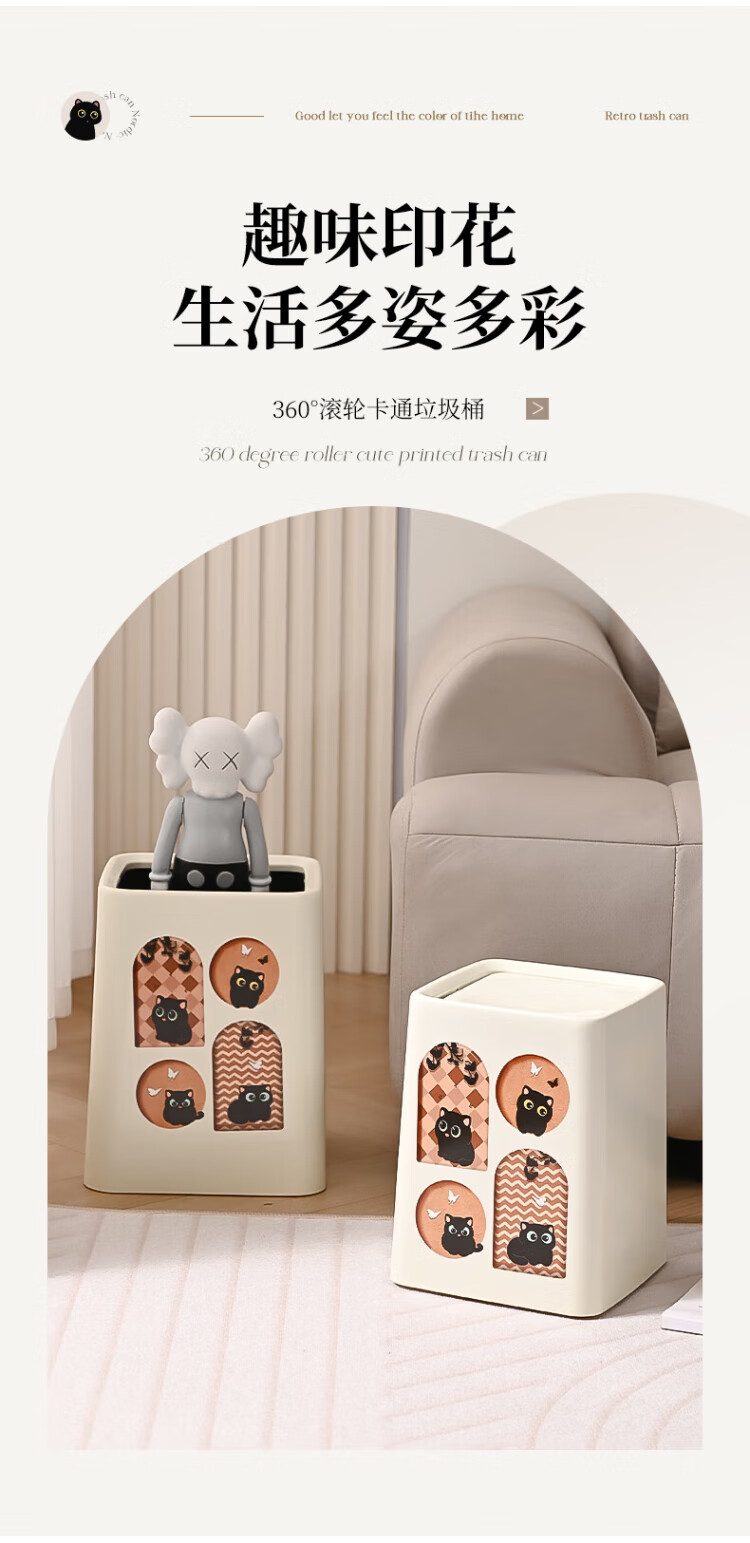 Baiyite trash can household 2025 new model living room kitchen bedroom removable high-value cartoon cute sanitary bucket with wheels large round trash can without lid and wheels