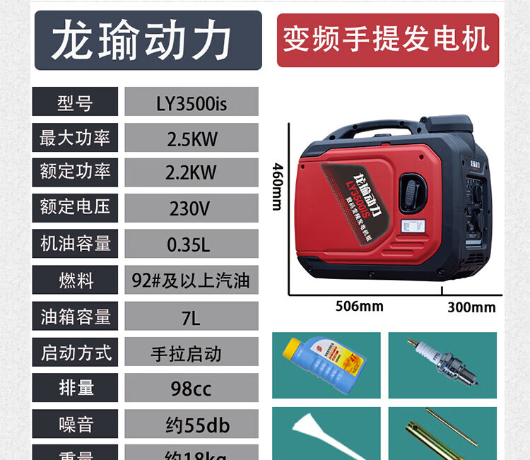 Pupan Low Noise Variable Frequency Gasoline Generator 220V Small Portable Home Outdoor RV Camping Travel Stall Variable Frequency Low Noise - 4500 Watts - Remote Control/Electric Start/Hand