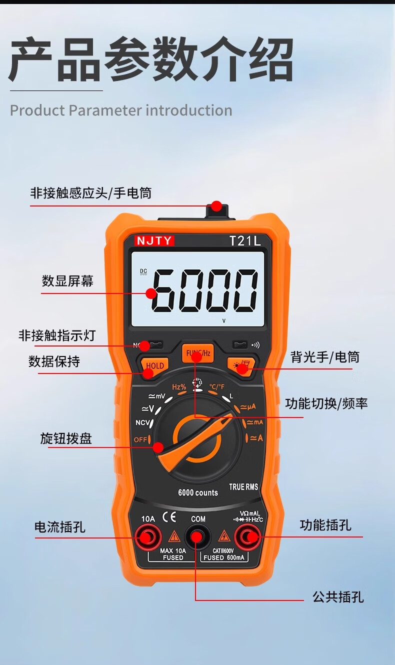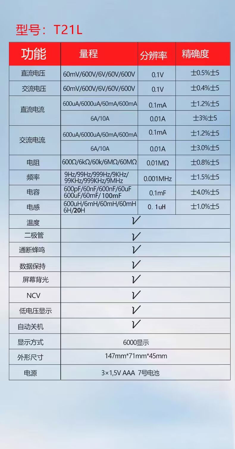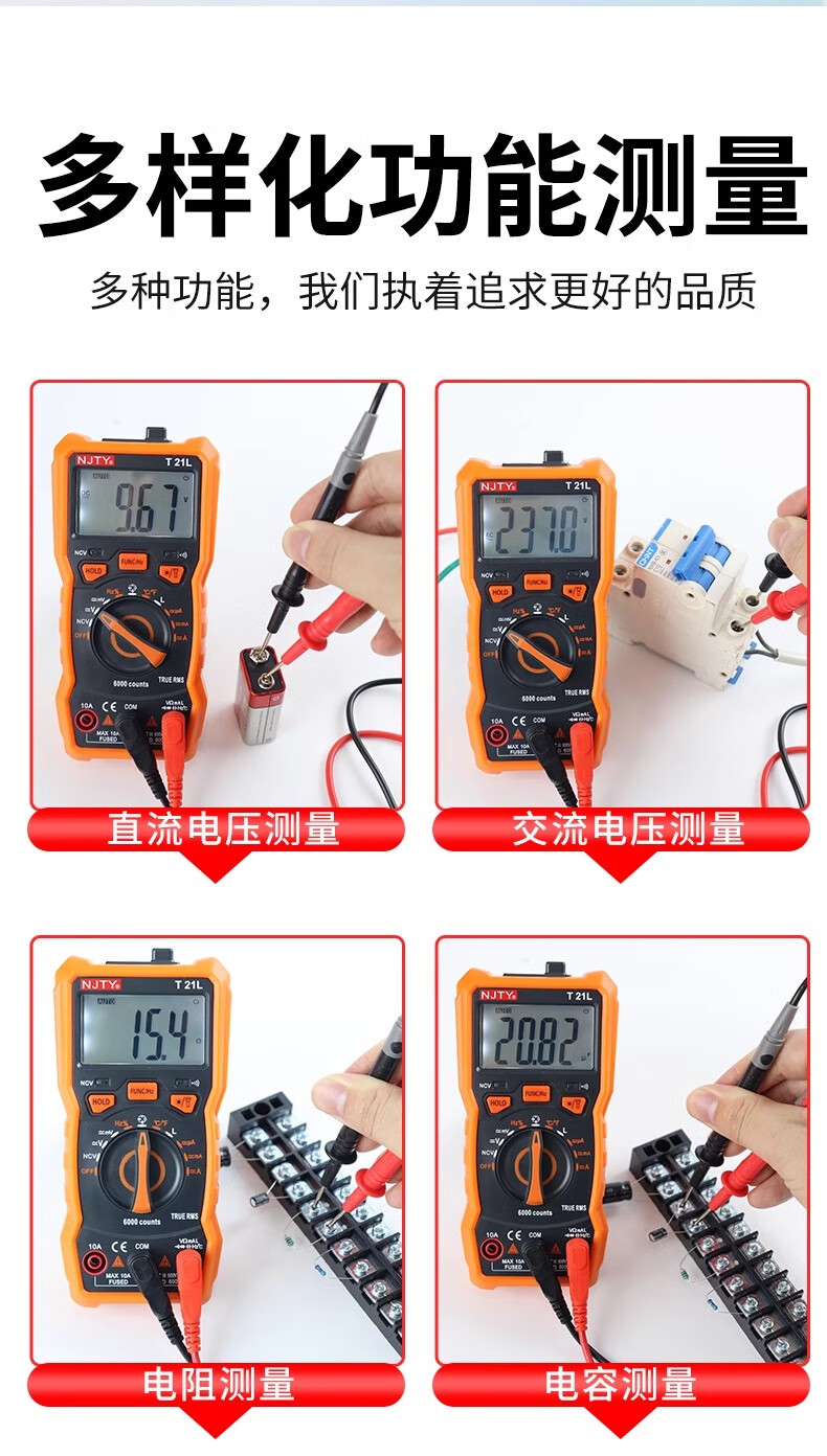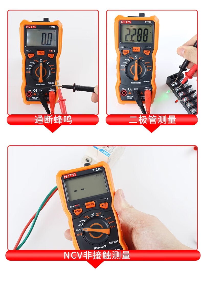 NJTY Nanjing Tianyu T21L high-precision digital display digital multi-function multi-function intelligent anti-burn repair electrician multimeter T21L official standard + special tip pen