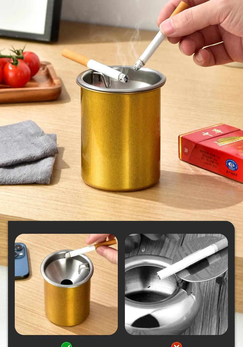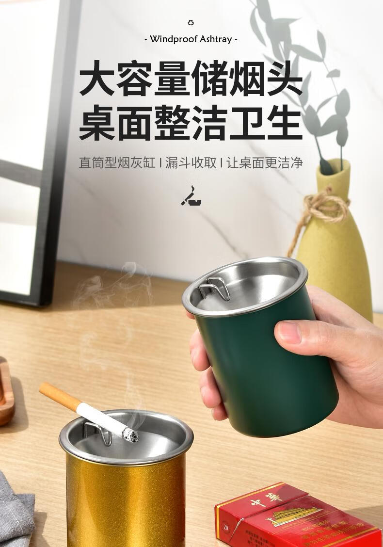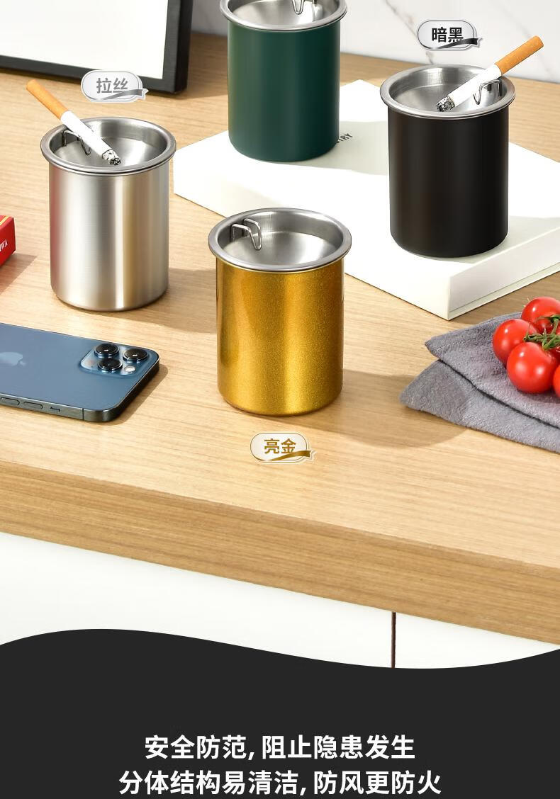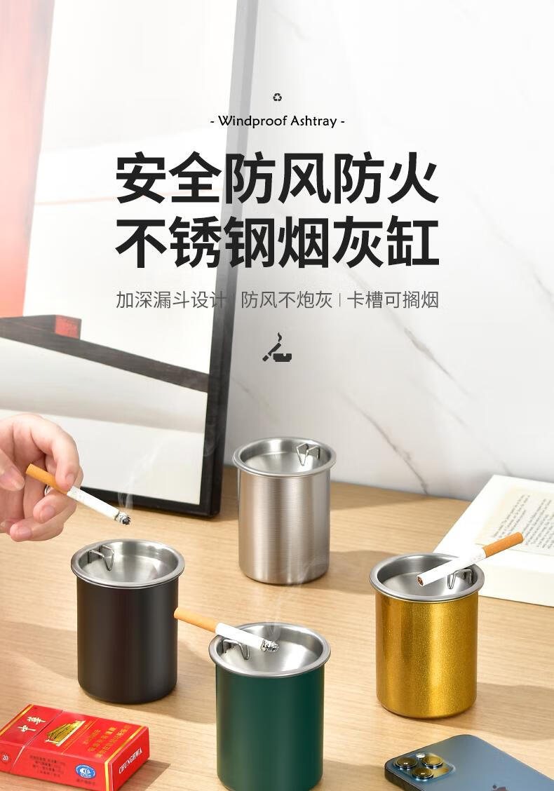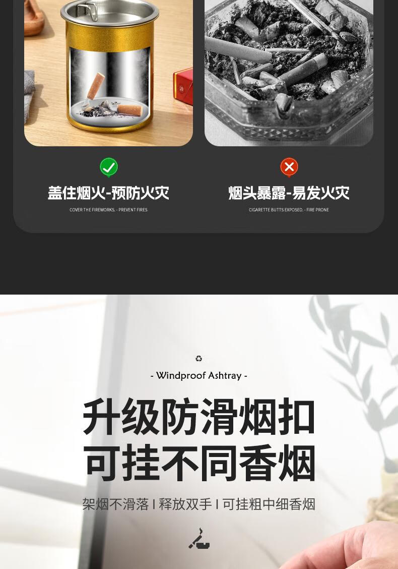 Futan Funnel Ashtray Stainless Steel Ashtray with Cigarette Clip Windproof and Fly Ashproof Ashtray Matte Black Fly Ashproof Type*Thick Type