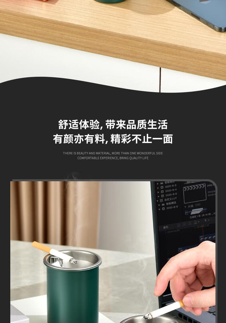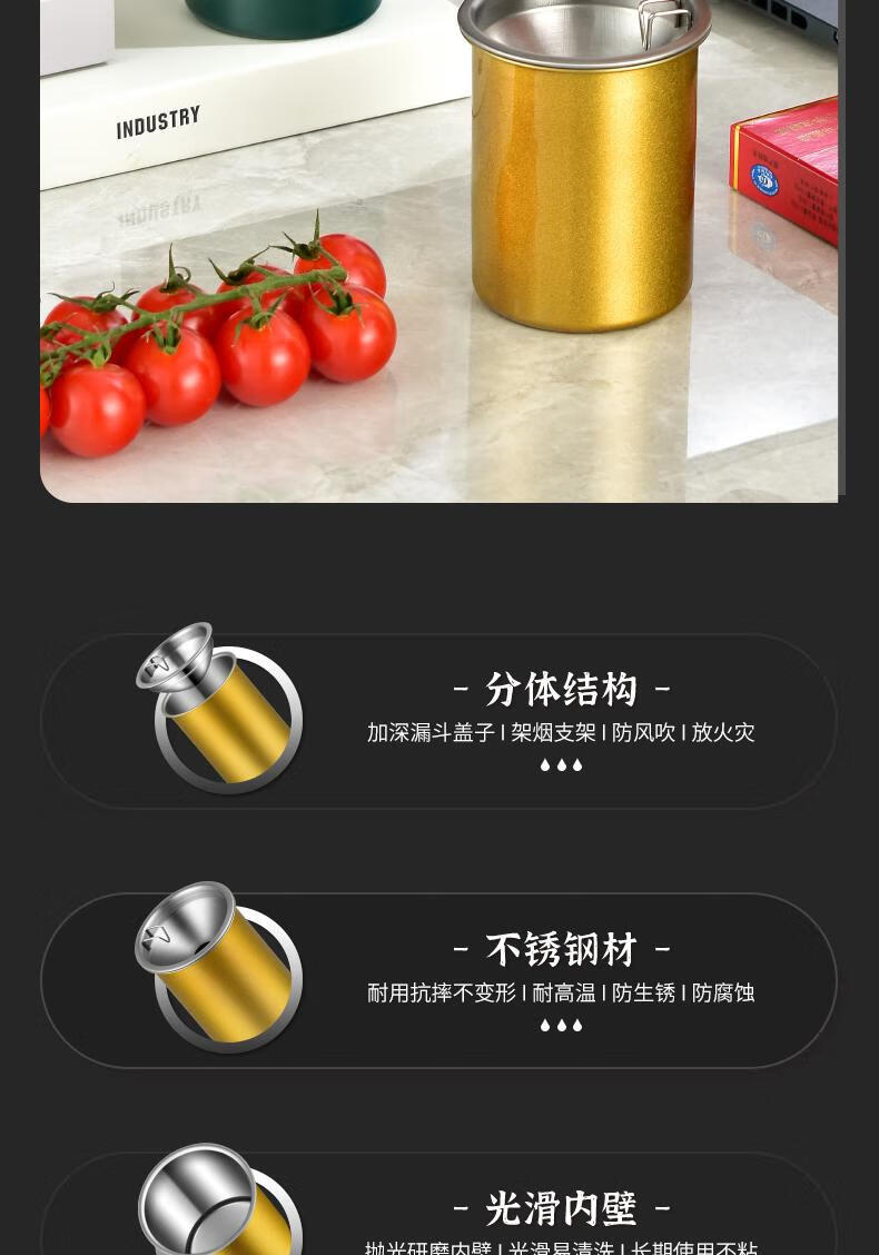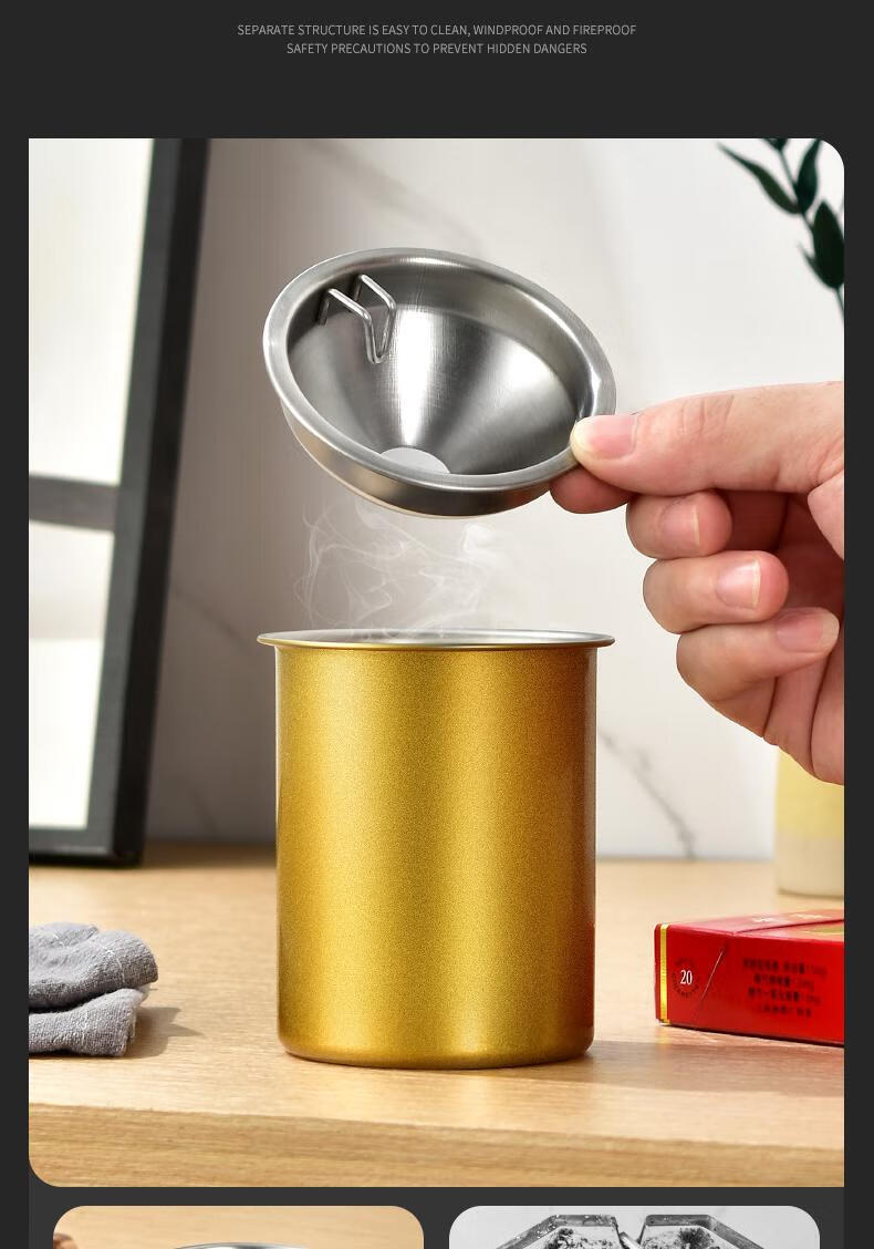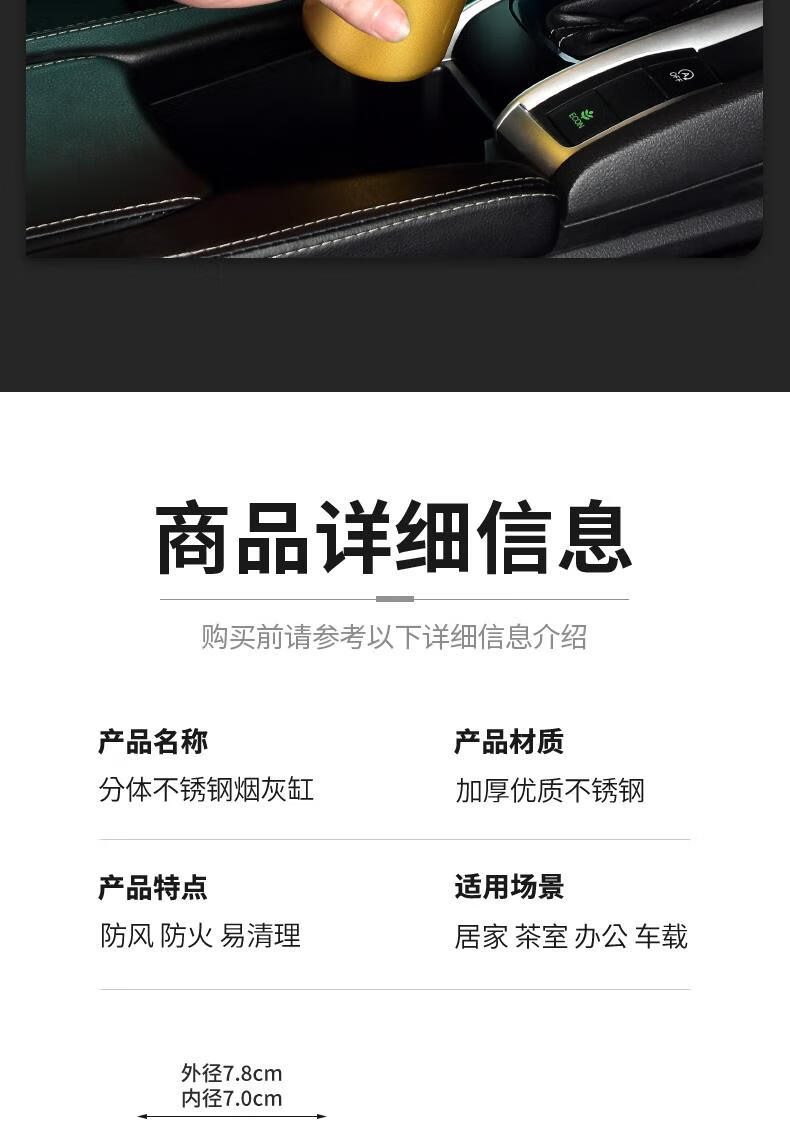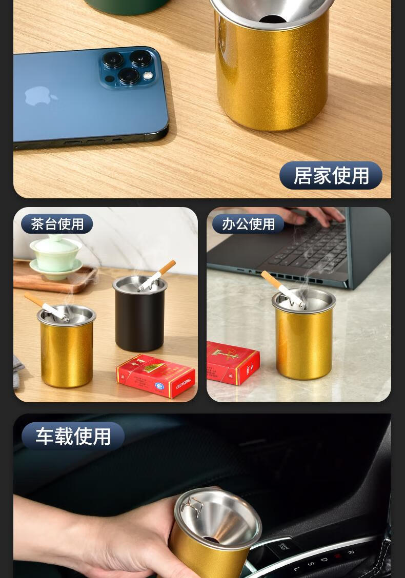 Futan Funnel Ashtray Stainless Steel Ashtray with Cigarette Clip Windproof and Fly Ashproof Ashtray Matte Black Fly Ashproof Type*Thick Type