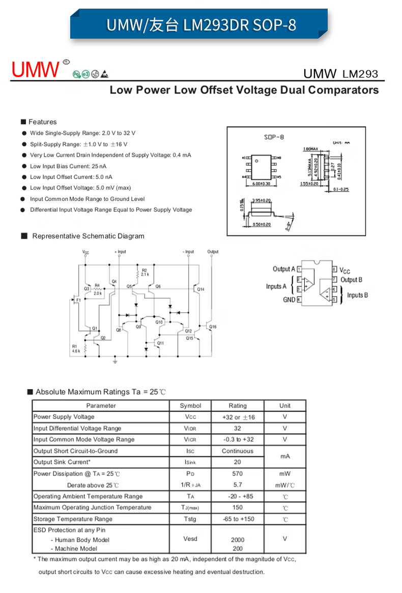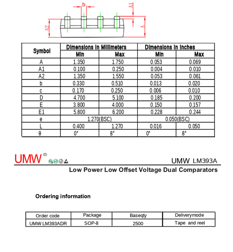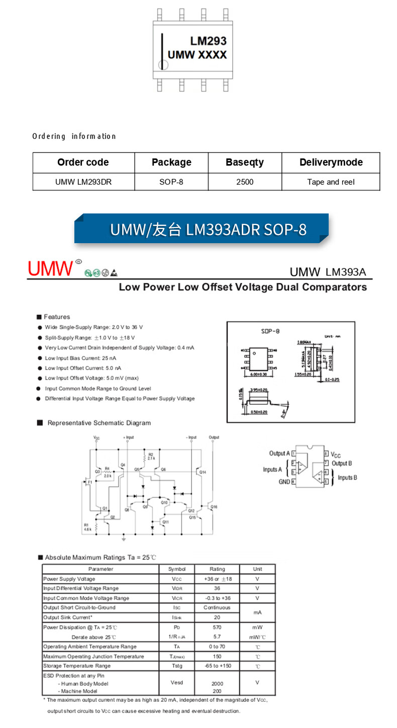 Original genuine UMW LM193DR LM293DR LM393ADR linear voltage comparator SOP8 UMW/Friend Taiwan LM393ADR SOP-8 (5 pieces)