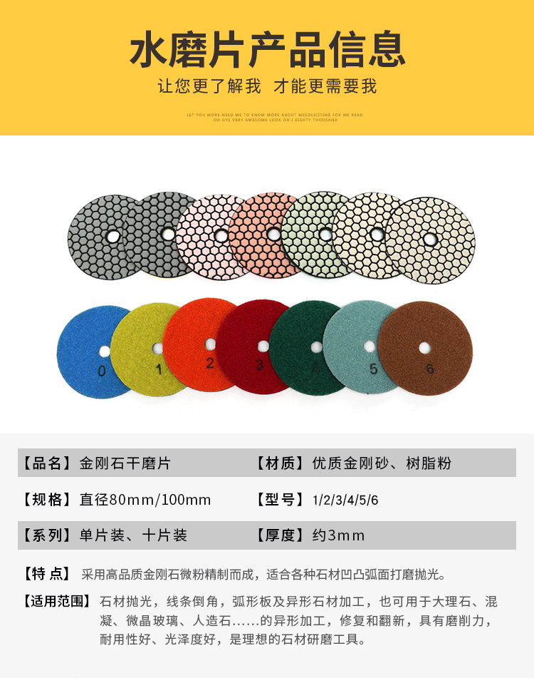 UIS dry grinding tablets marble polishing tablets diamond water grinding tablets stone polishing tablets ceramic tile trimming angle grinder polished 8 cm 0# full 10 pieces 2 pieces