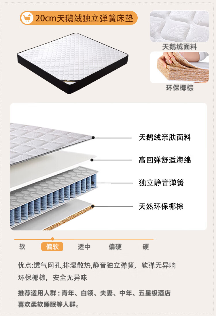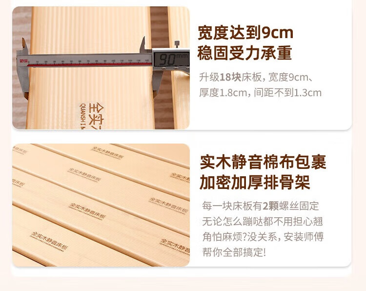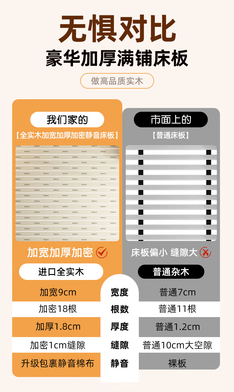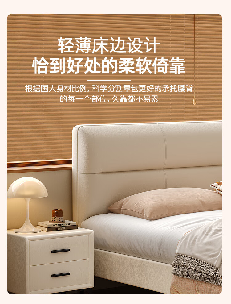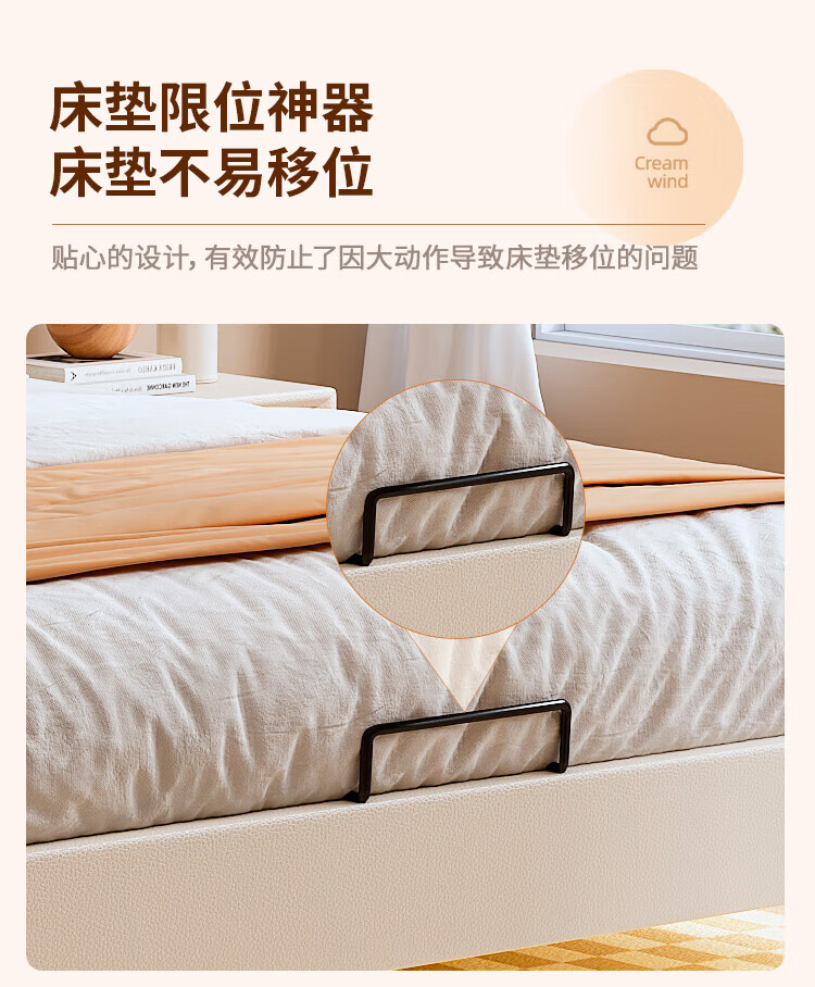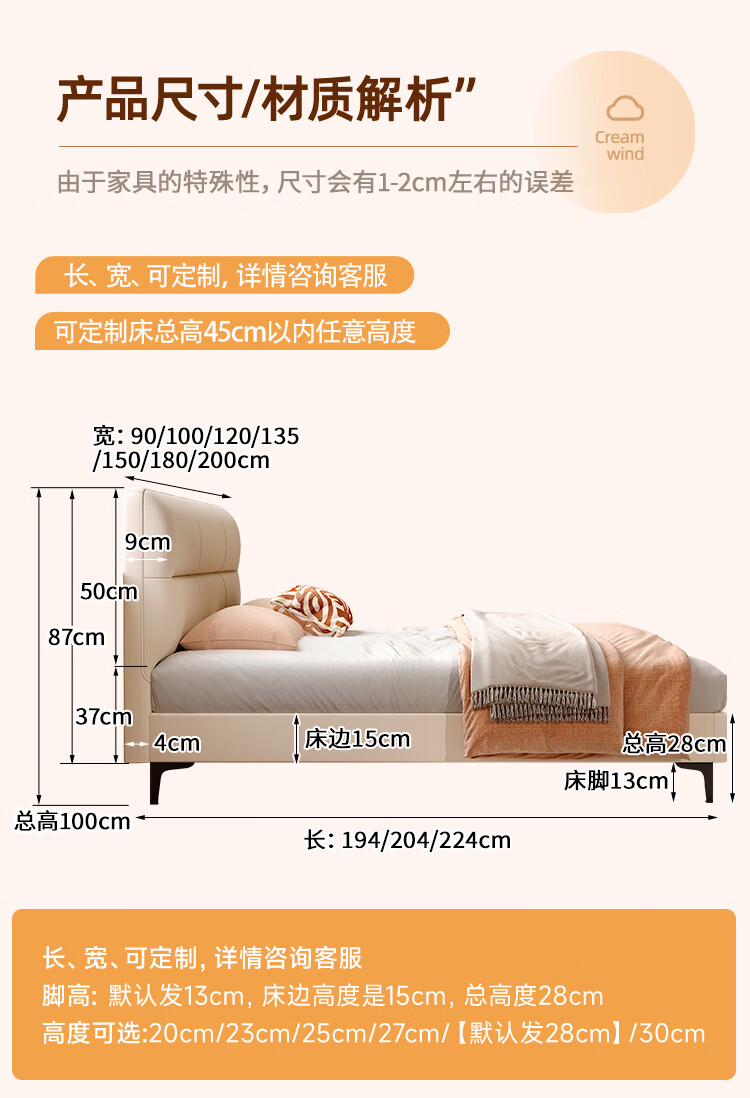 Langxiang solid wood double bed 1.8 meters 2 meters row frame edge frame leather bed master bedroom cream style wedding bed furniture bed + 20cm independent spring mattress 1.8*2 meters