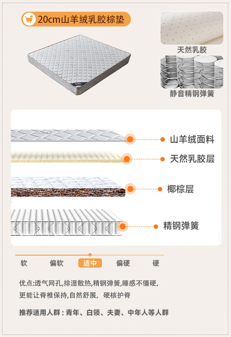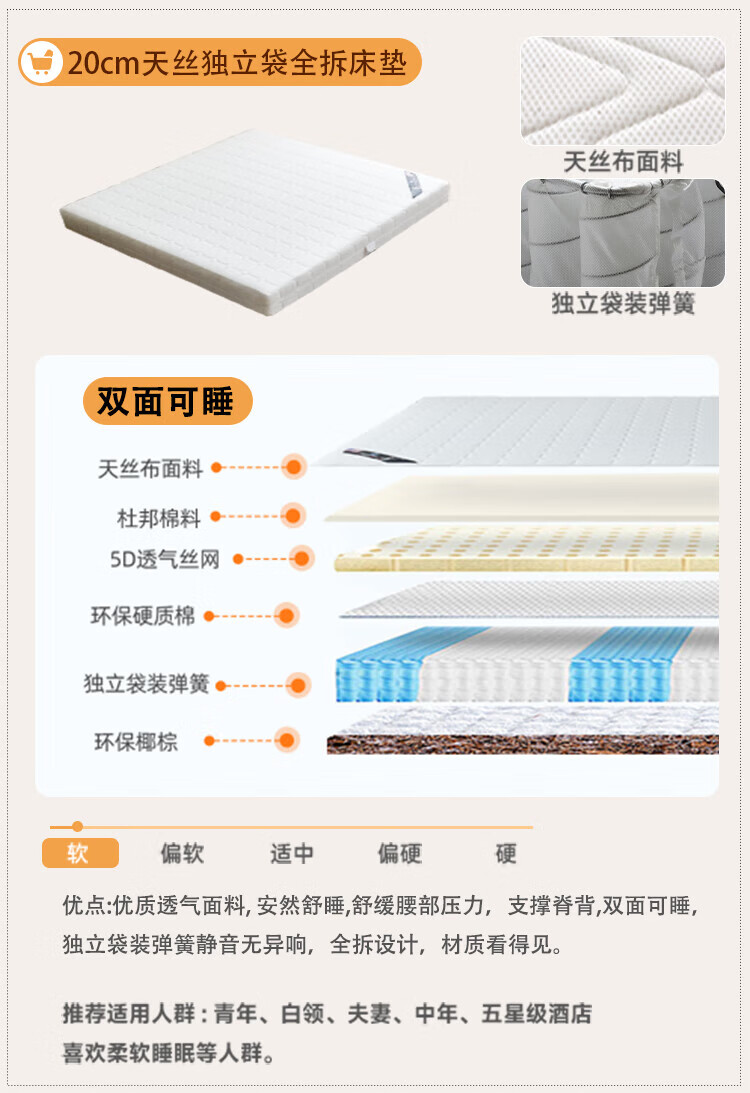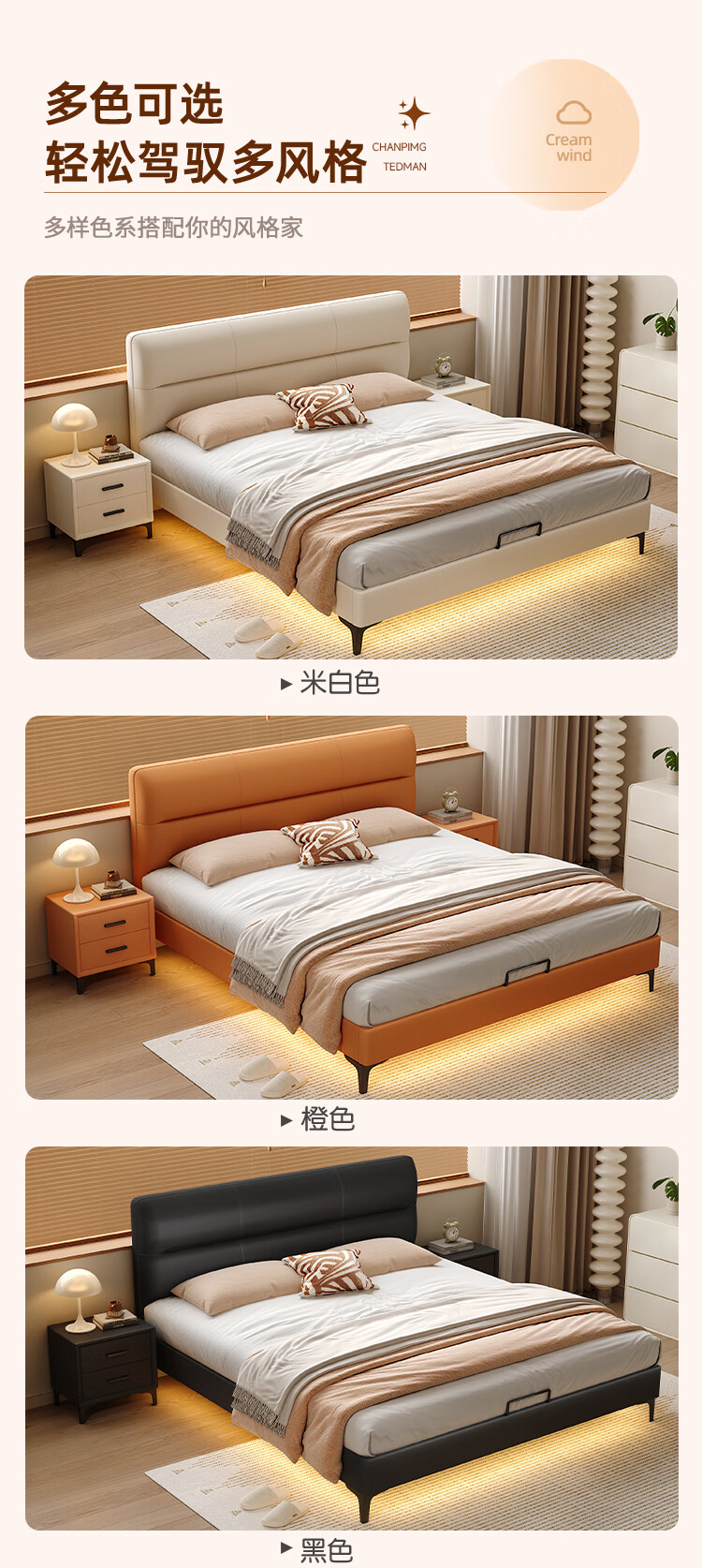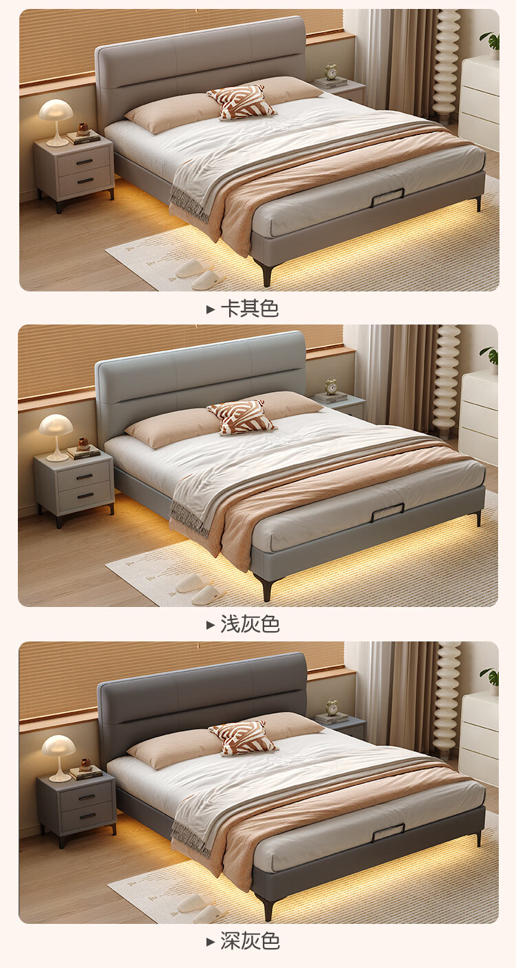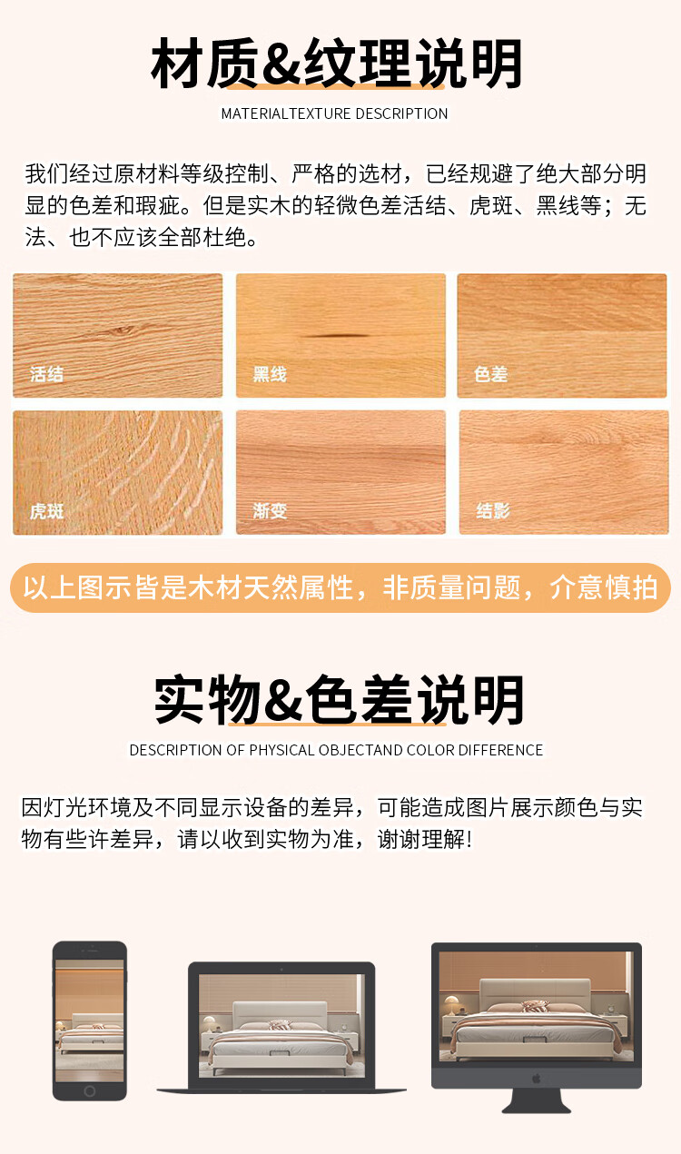 Langxiang solid wood double bed 1.8 meters 2 meters row frame edge frame leather bed master bedroom cream style wedding bed furniture bed + 20cm independent spring mattress 1.8*2 meters