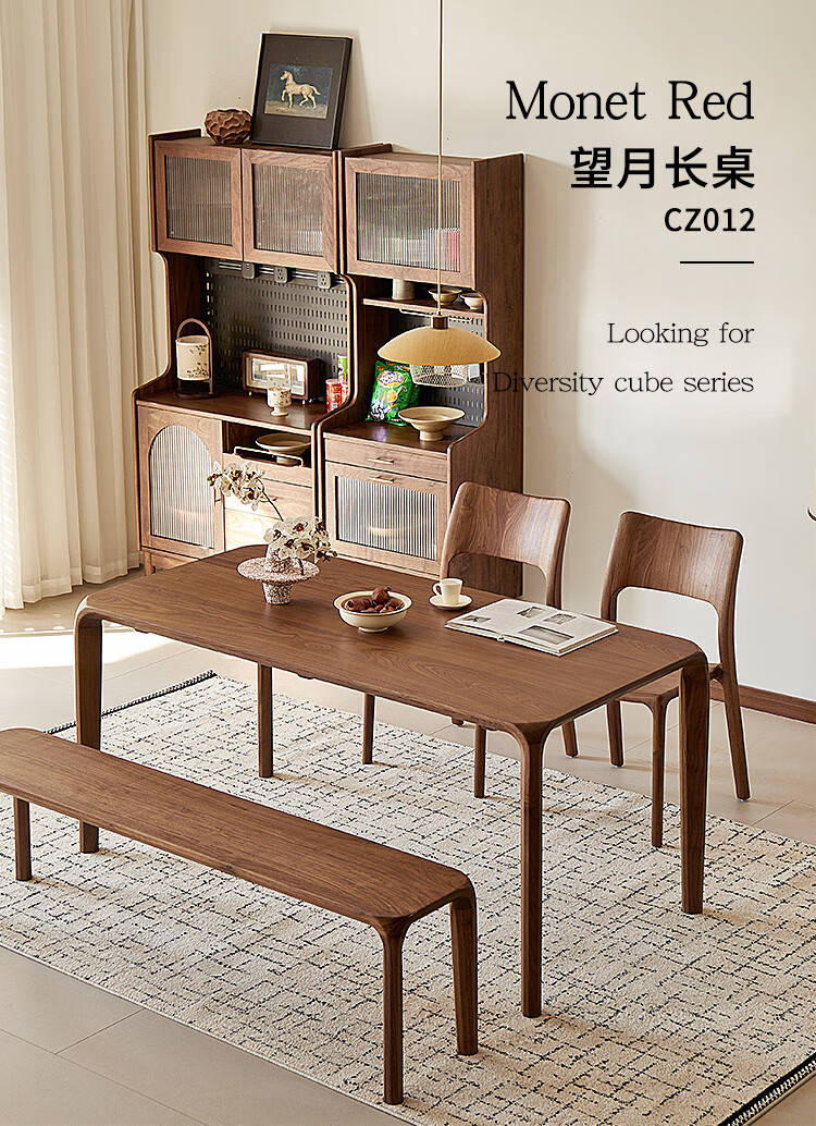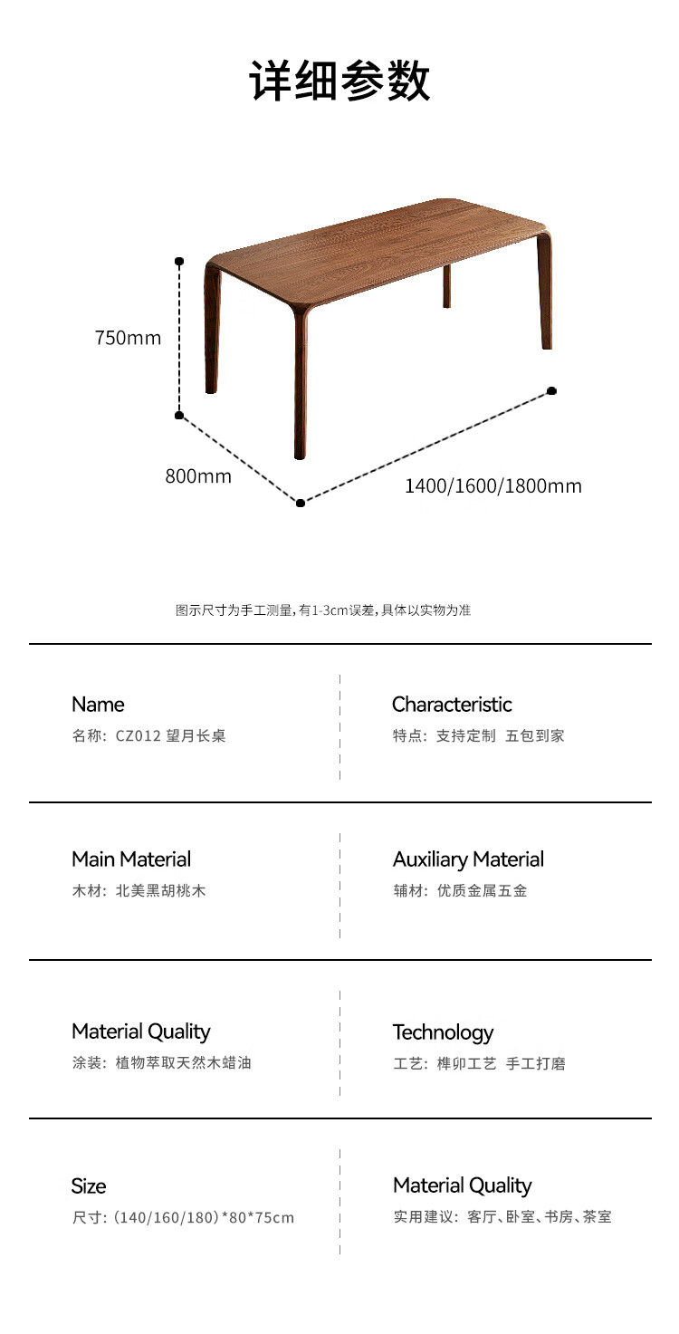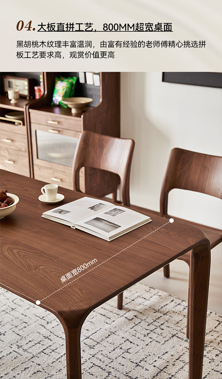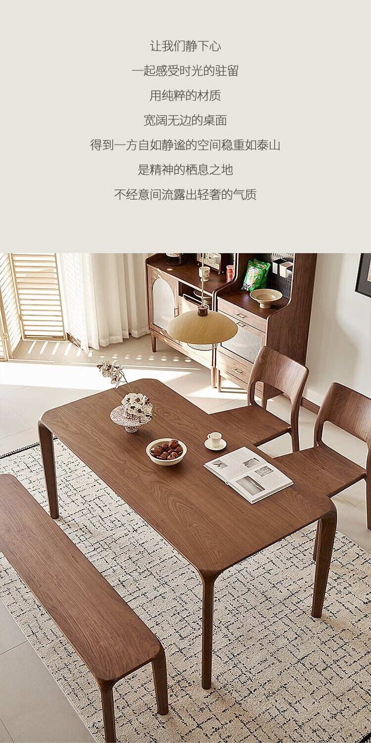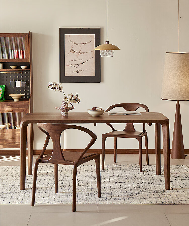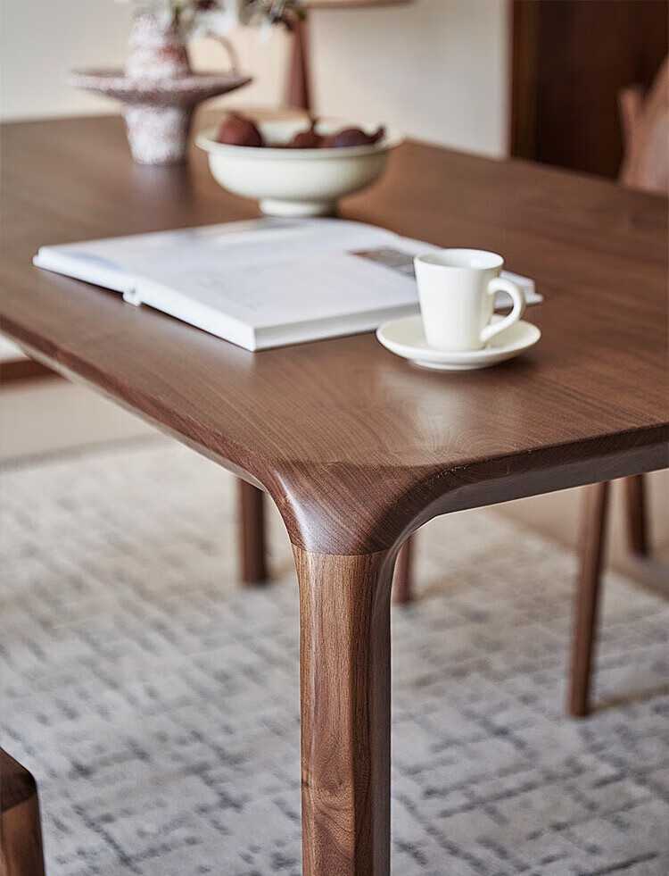 Faner solid wood dining table North American black walnut home rectangular dining table office tea table large plate straight dining table Moon dining table 160*80*75cm frame