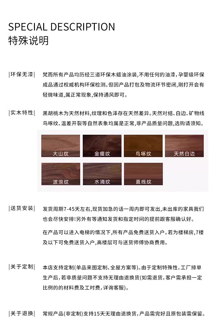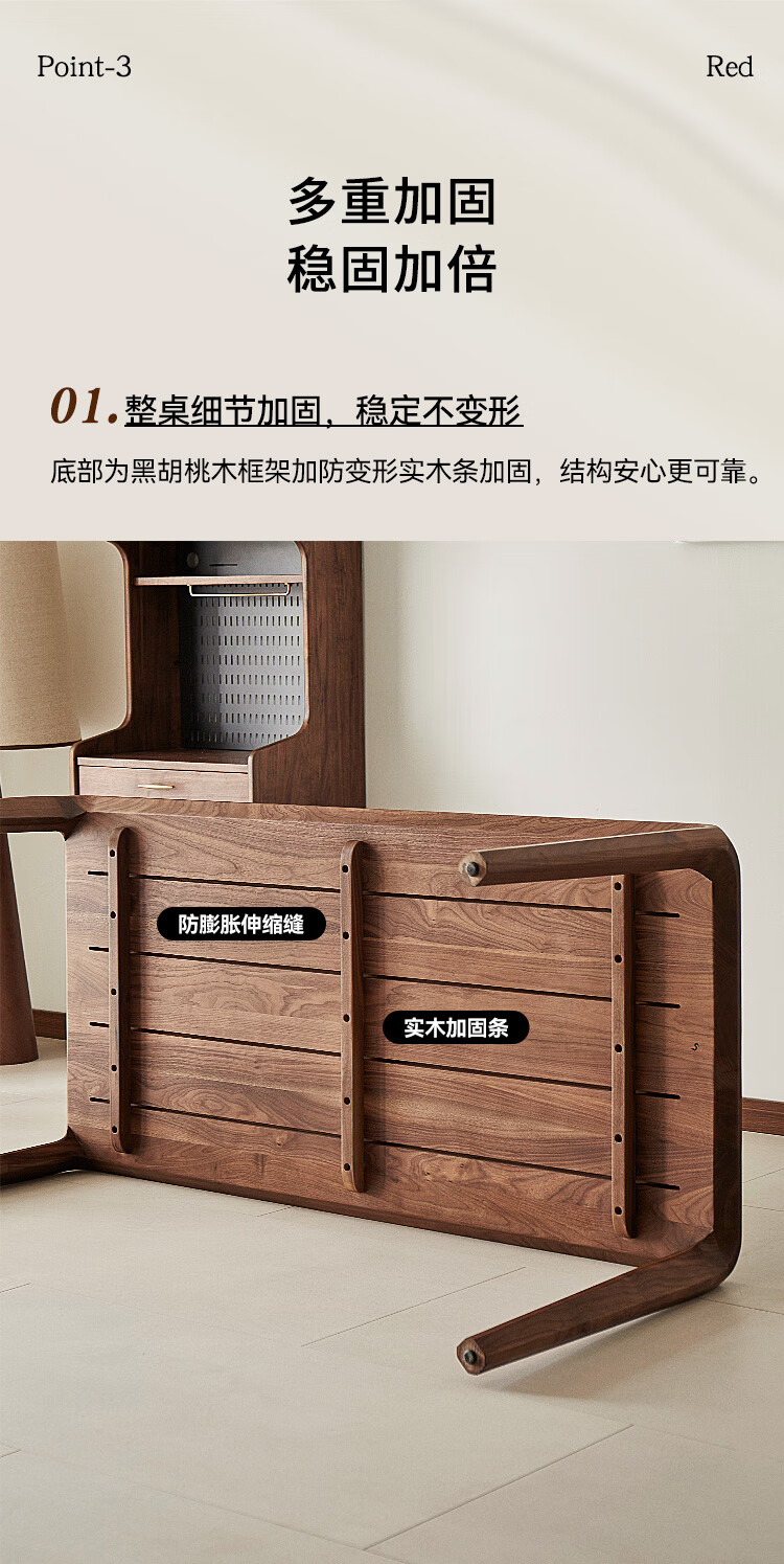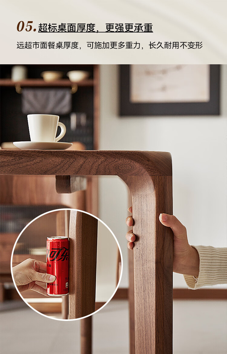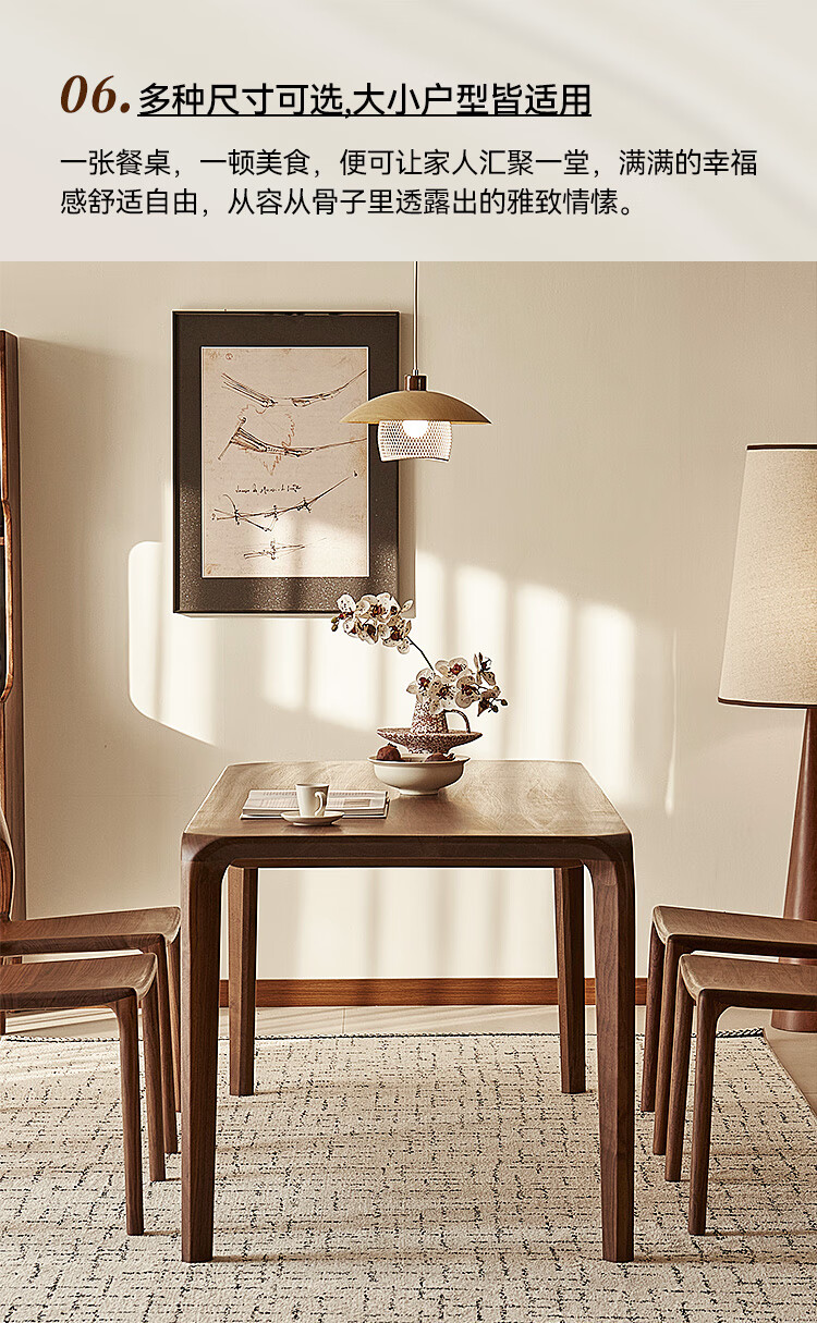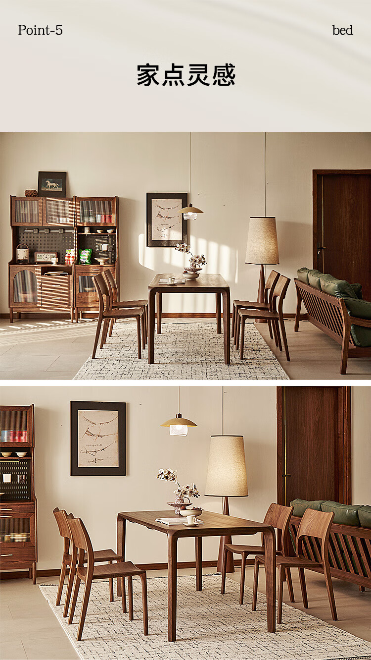 Faner solid wood dining table North American black walnut home rectangular dining table office tea table large plate straight dining table Moon dining table 160*80*75cm frame