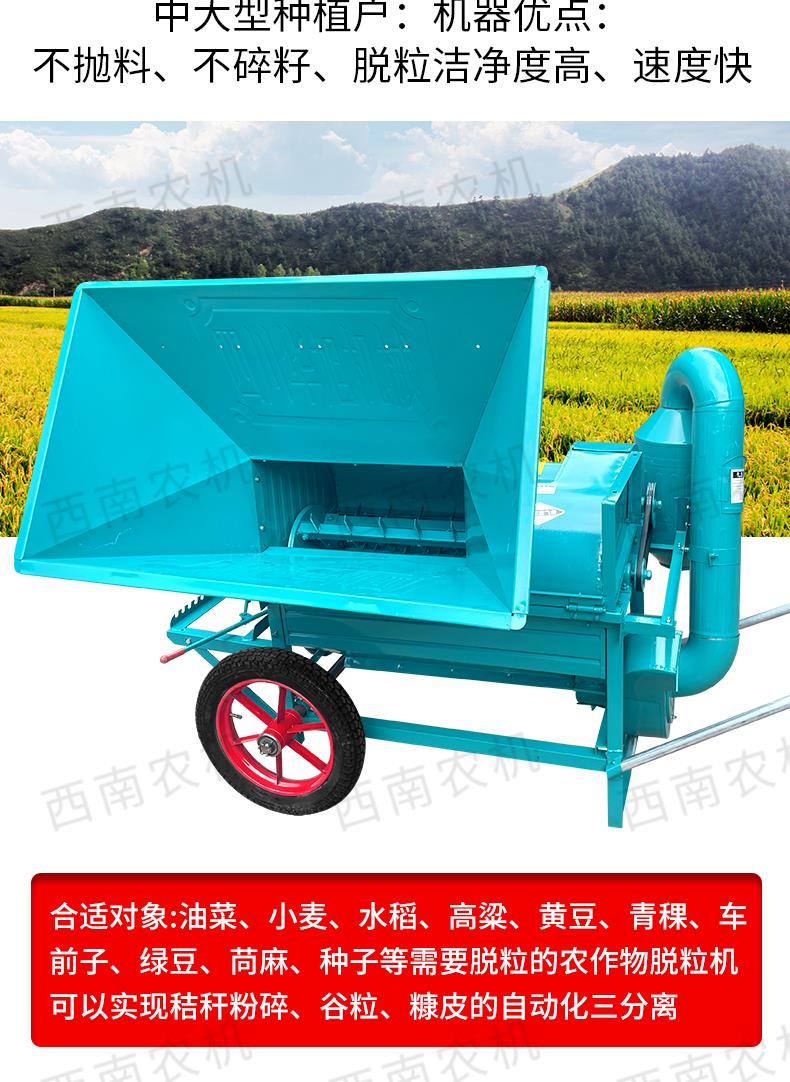 Wen Yijia's new double-drum threshing machine multi-functional sorghum, rape and soybean threshing machine wheat and soybean threshing machine 80 double-drum threshing machine (feeding wheel) starts with power