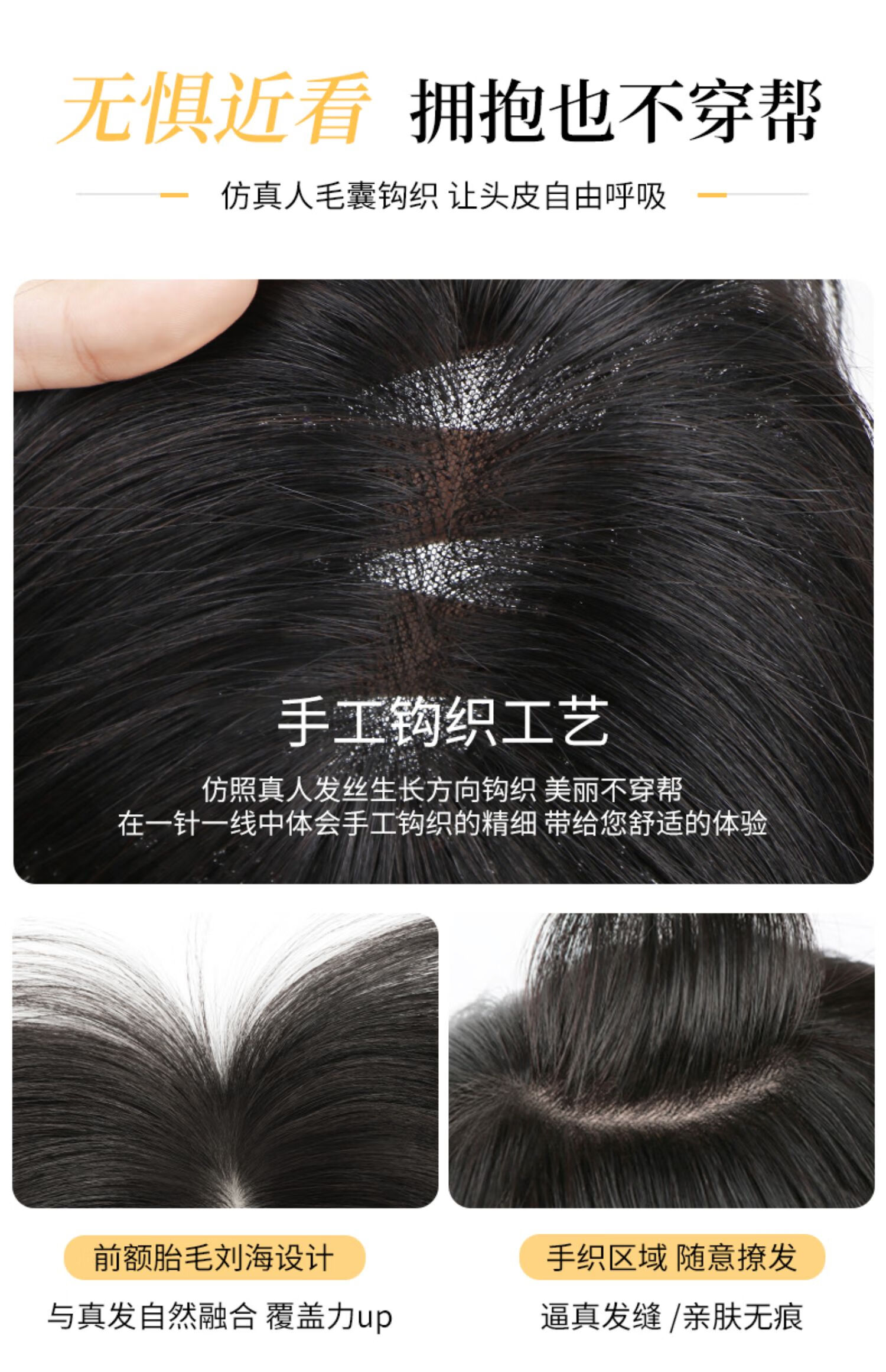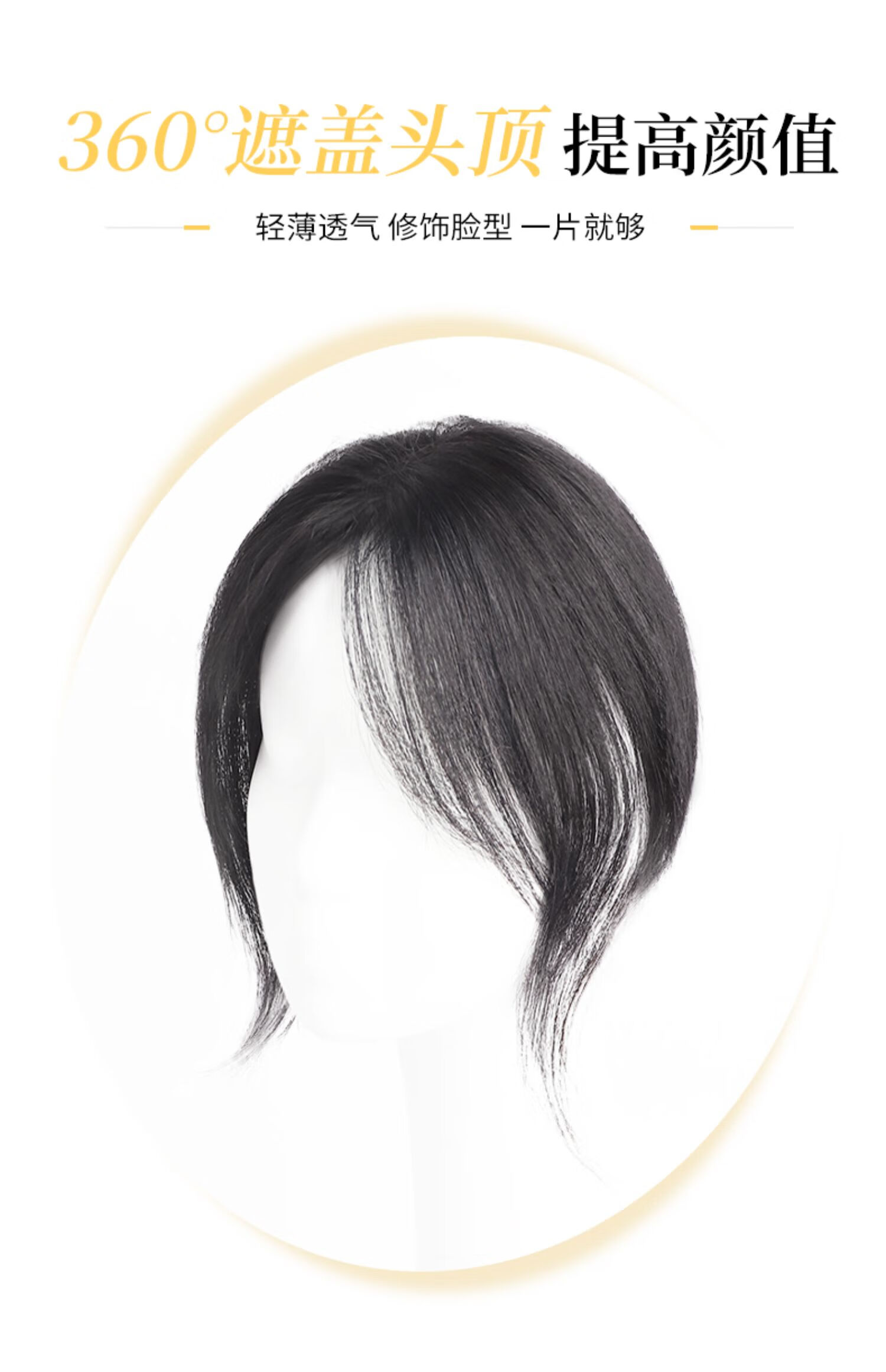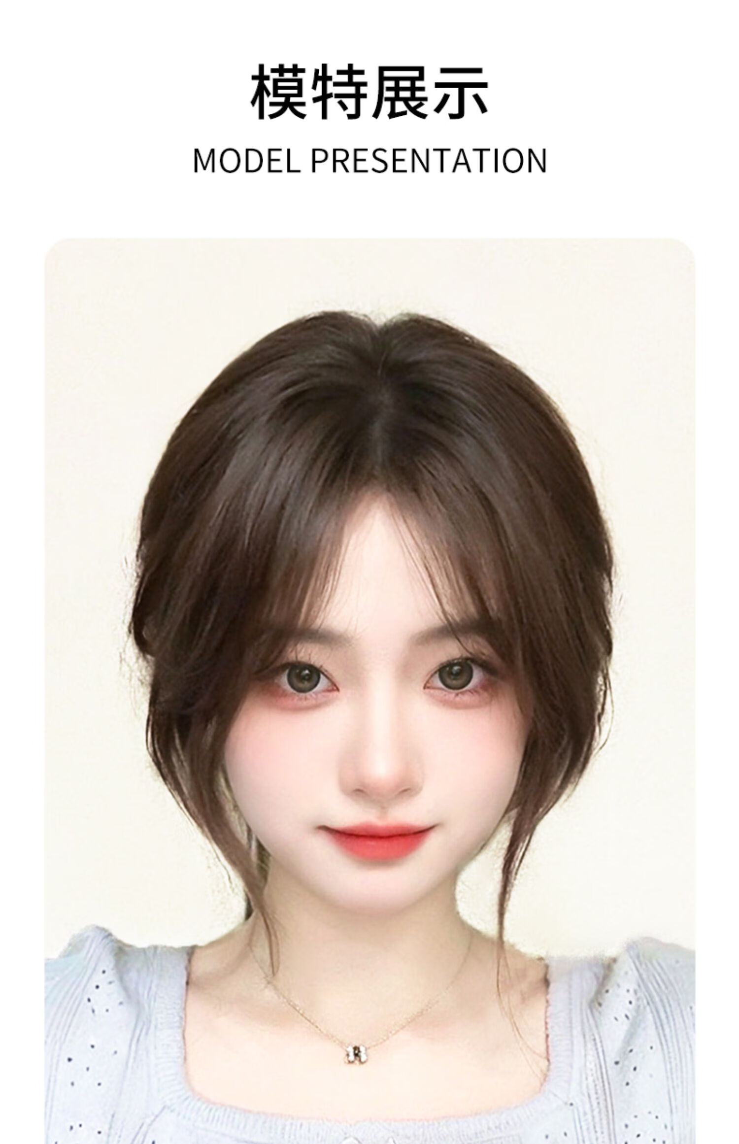 Fake bangs female head replacement hair piece natural forehead full human hair covering white high skull light French bangs wig high quality artificial hair brown black small T French style