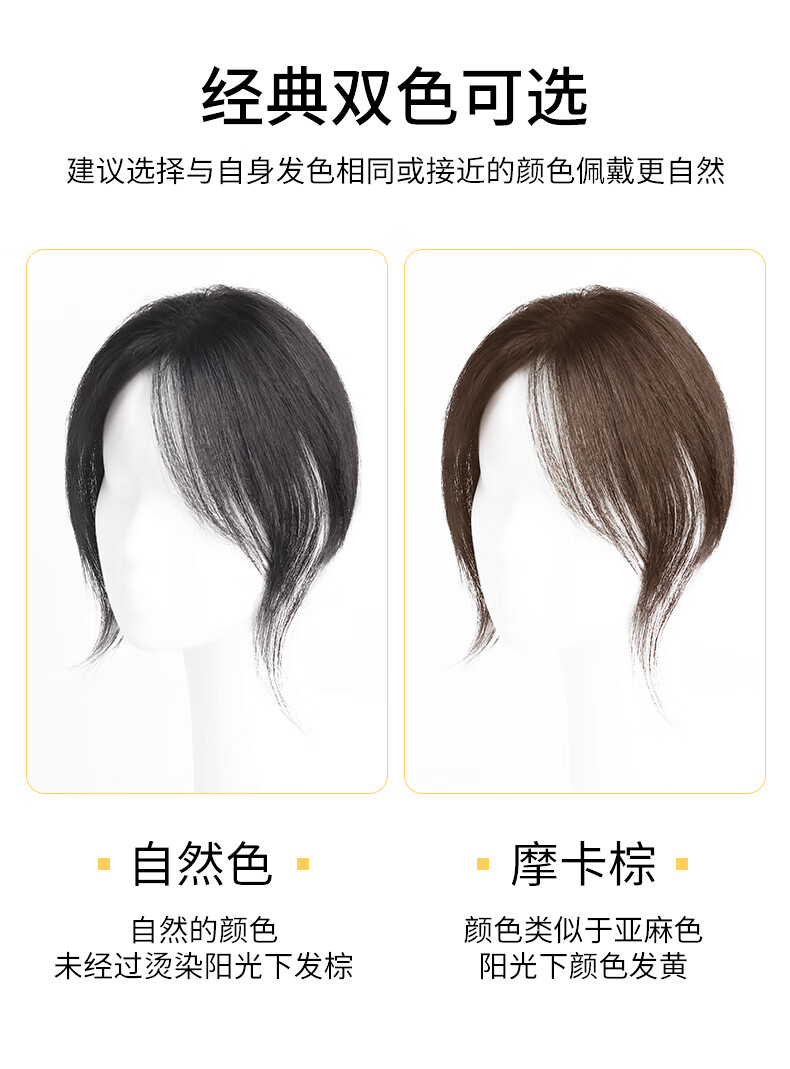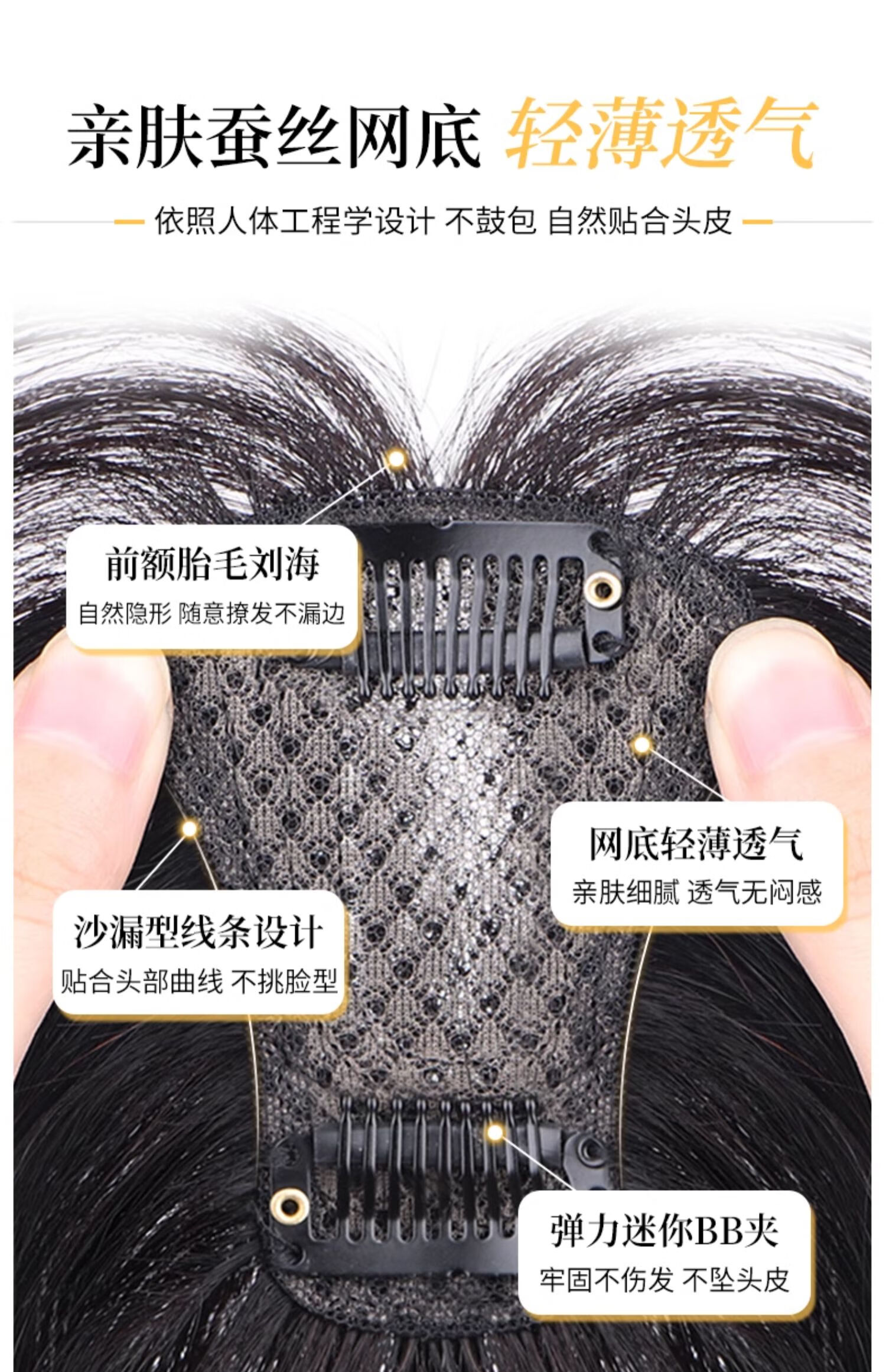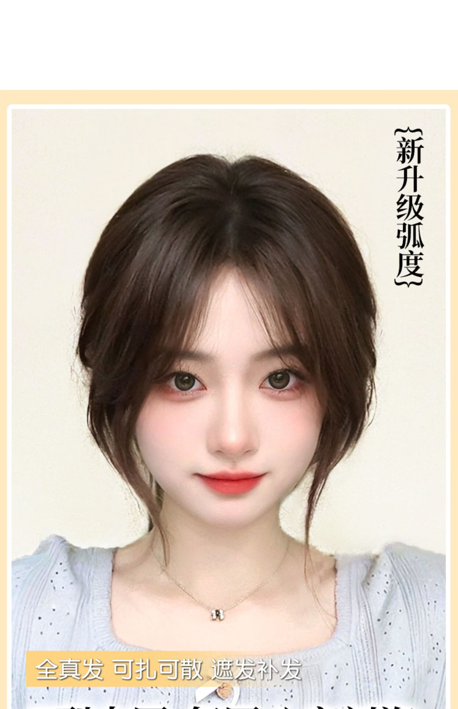 Fake bangs female head replacement hair piece natural forehead full human hair covering white high skull light French bangs wig high quality artificial hair brown black small T French style