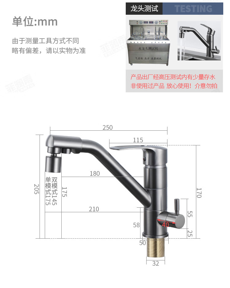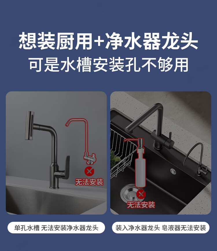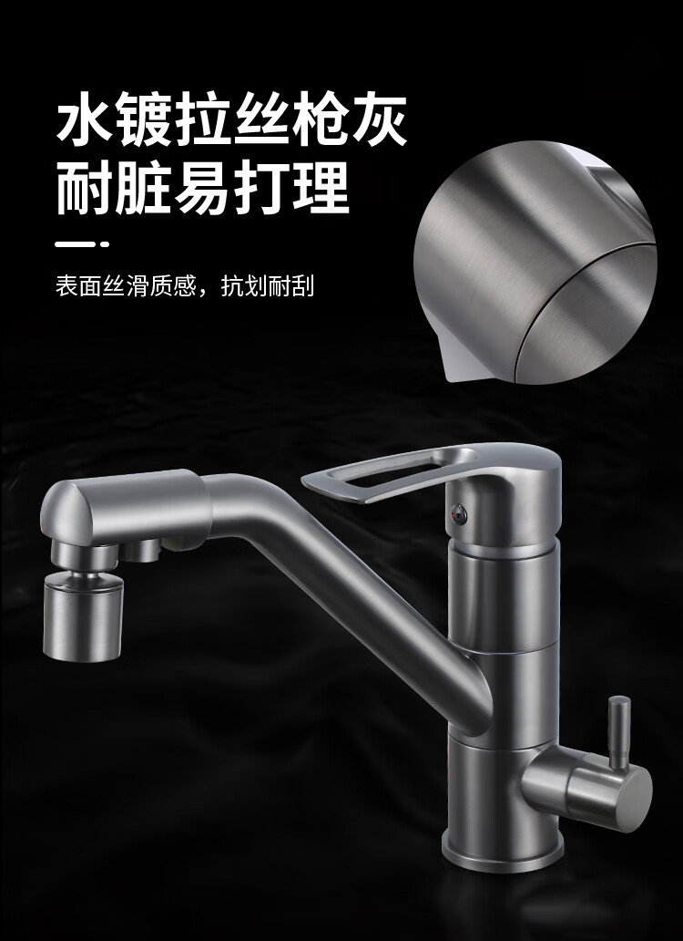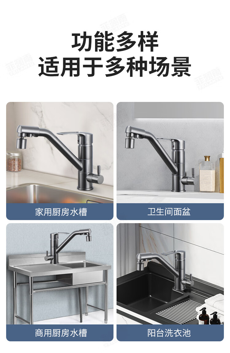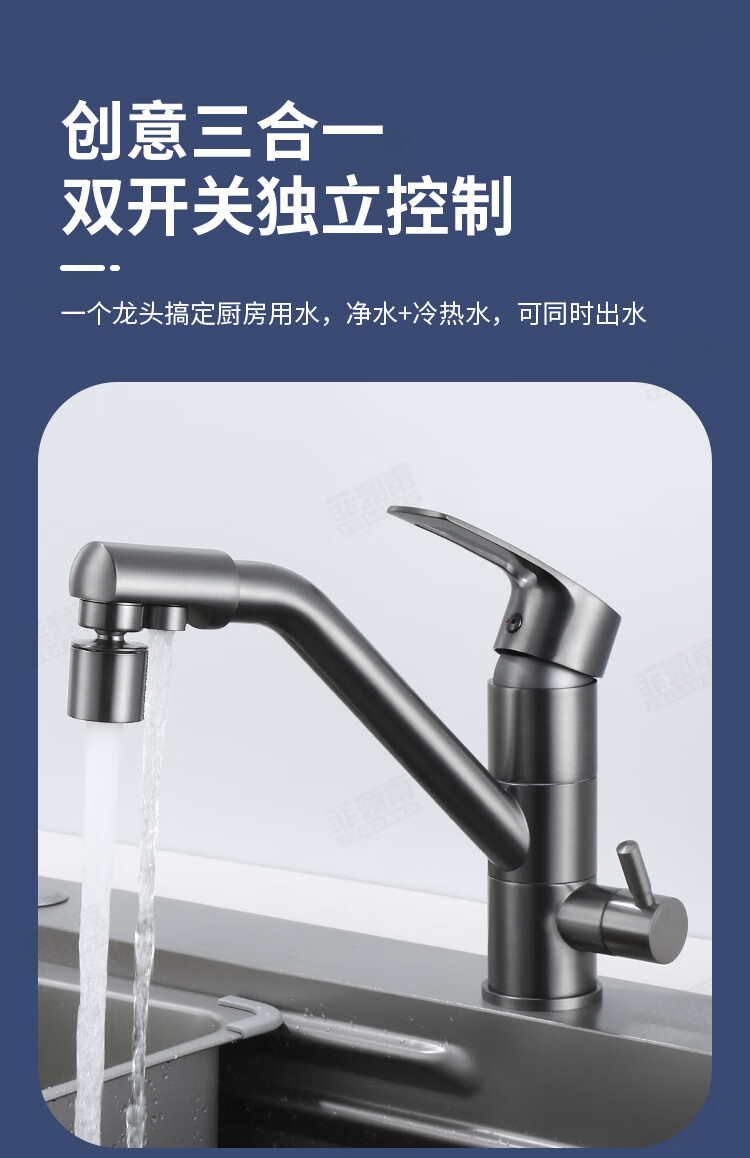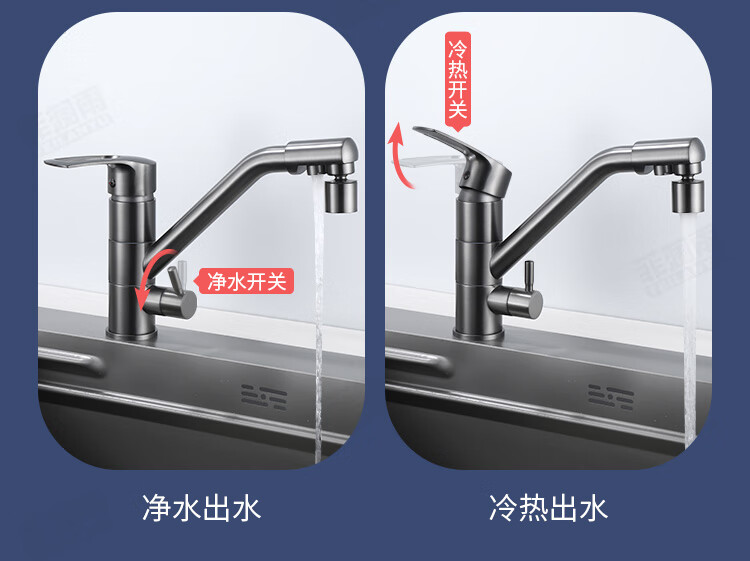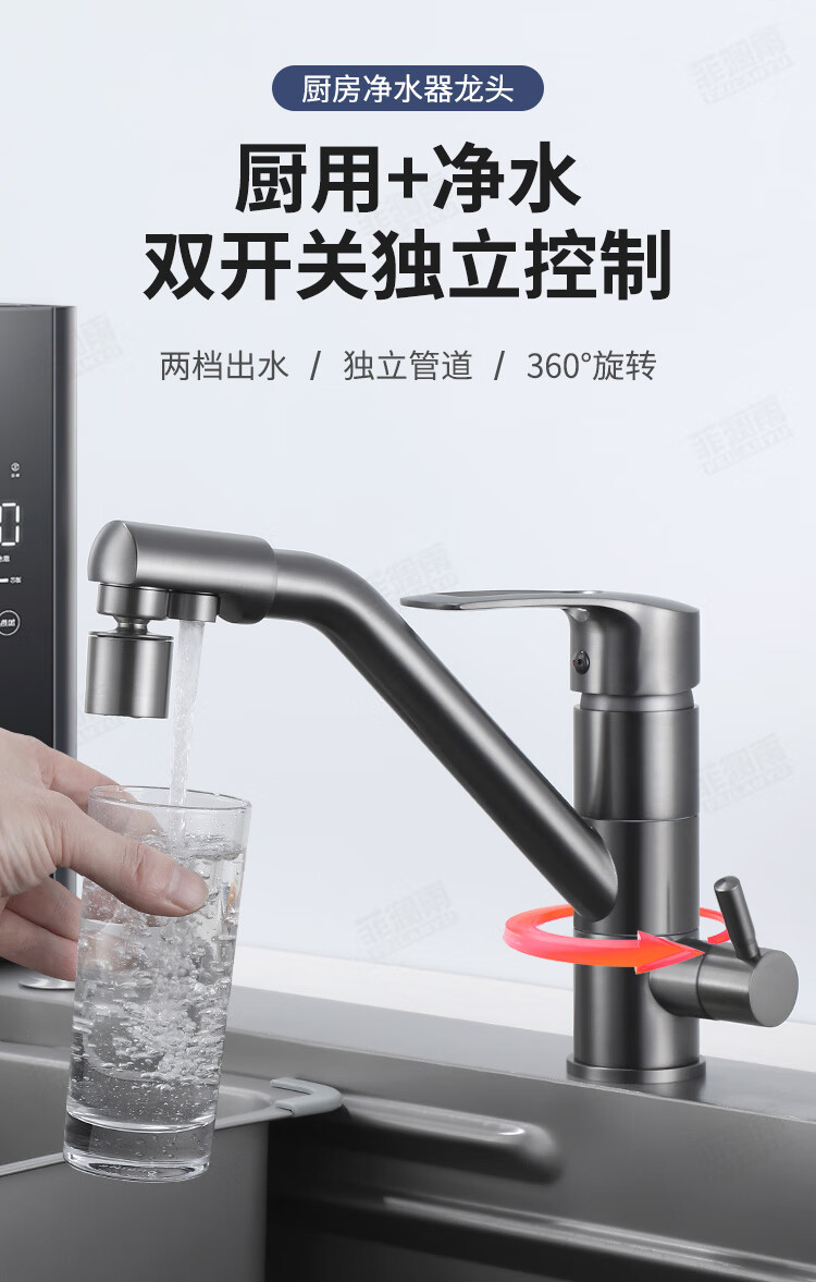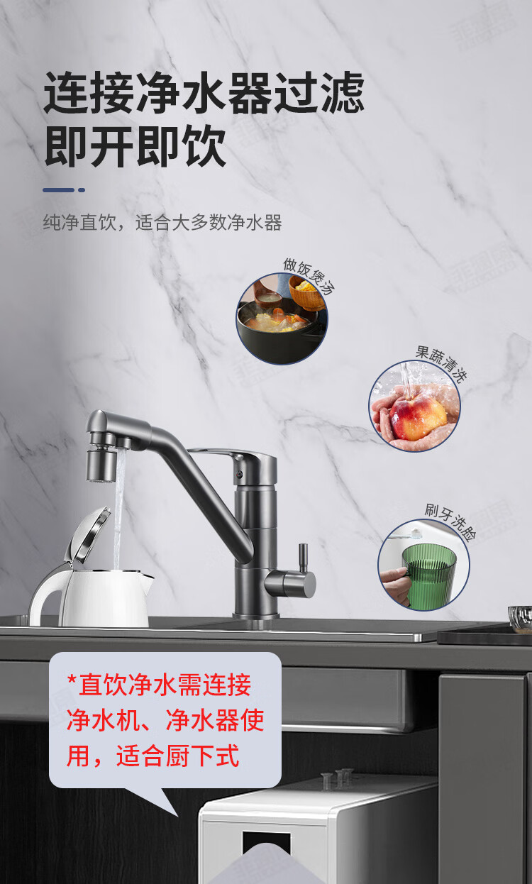 Fei Lanyu kitchen sink three-in-one faucet hot and cold washbasin basin water purifier purifier special direct drink anti-splash short three-in-one faucet dual mode-water plated gun gray
