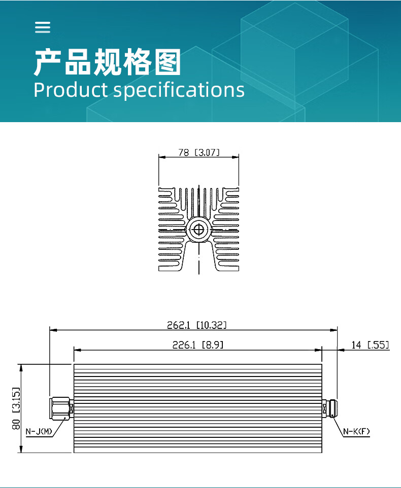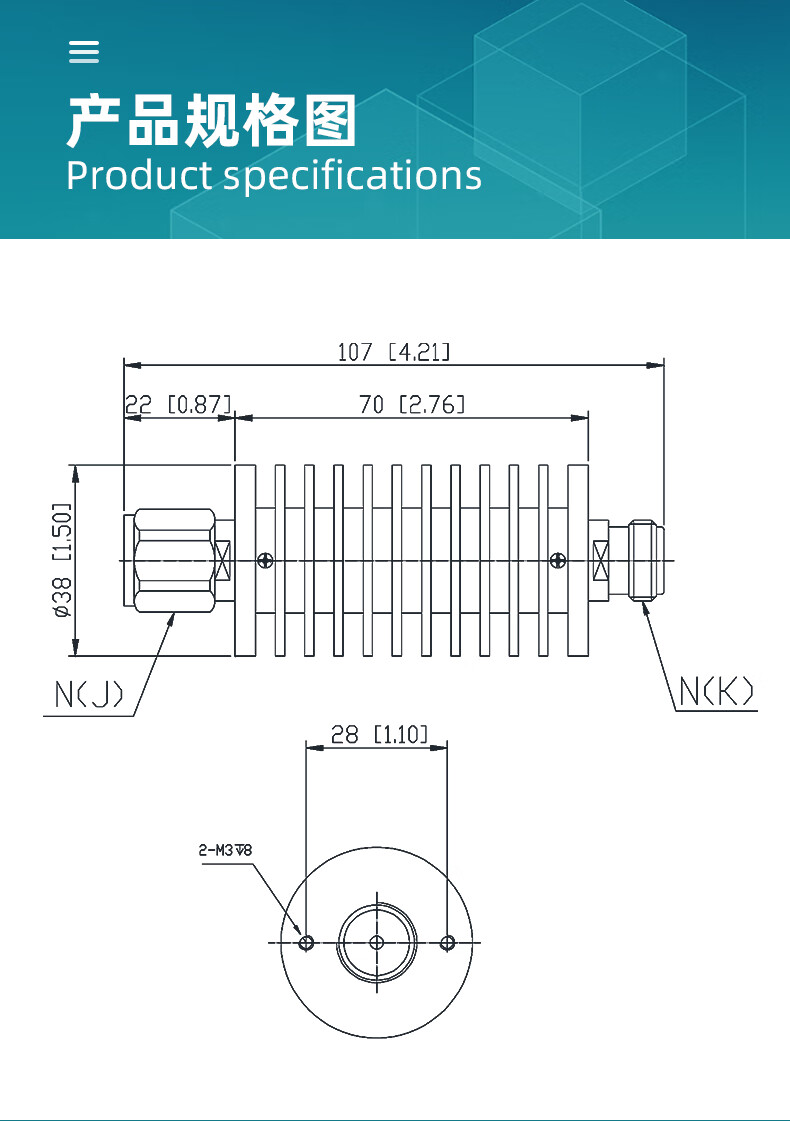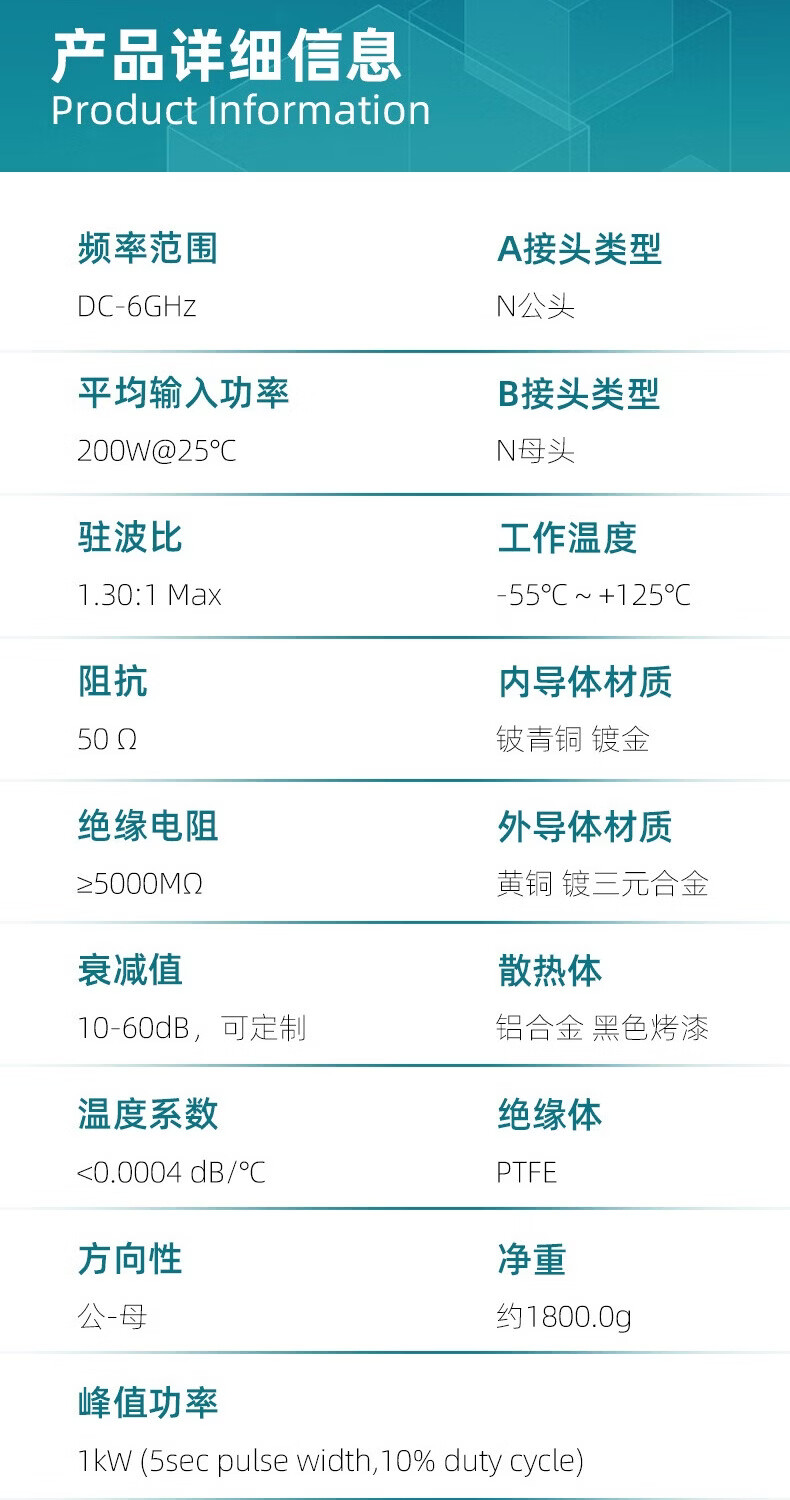 XINQY Xinqiyuan N-JK RF coaxial fixed attenuator 0-6g high power 50/100/200/300/500W attenuation value 10dB/30dB power 50W DC-6GHz attenuation value 60dB