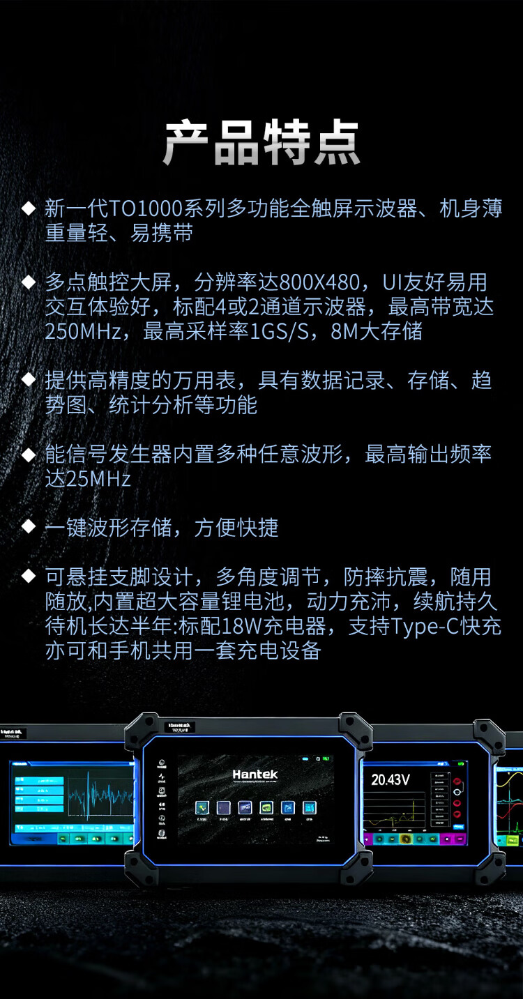Hantek Hantek digital handheld flat-panel oscilloscope multimeter full touch portable 4-channel TO1254D TO1112 (dual channel) bandwidth 110M (national standard head)