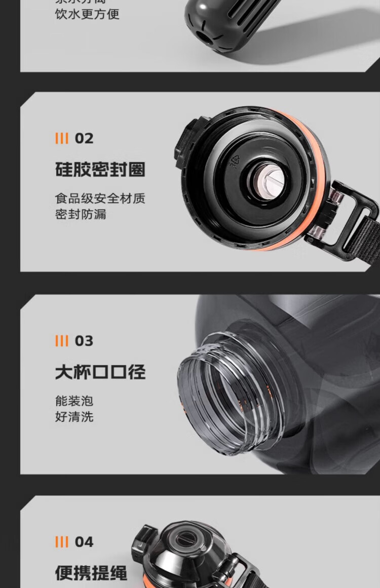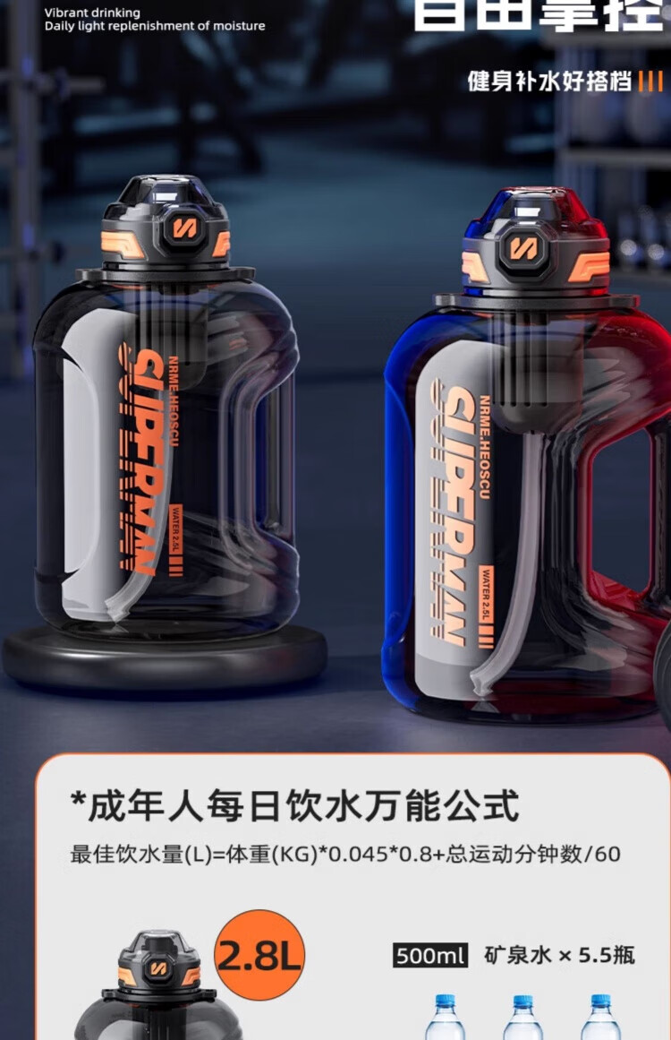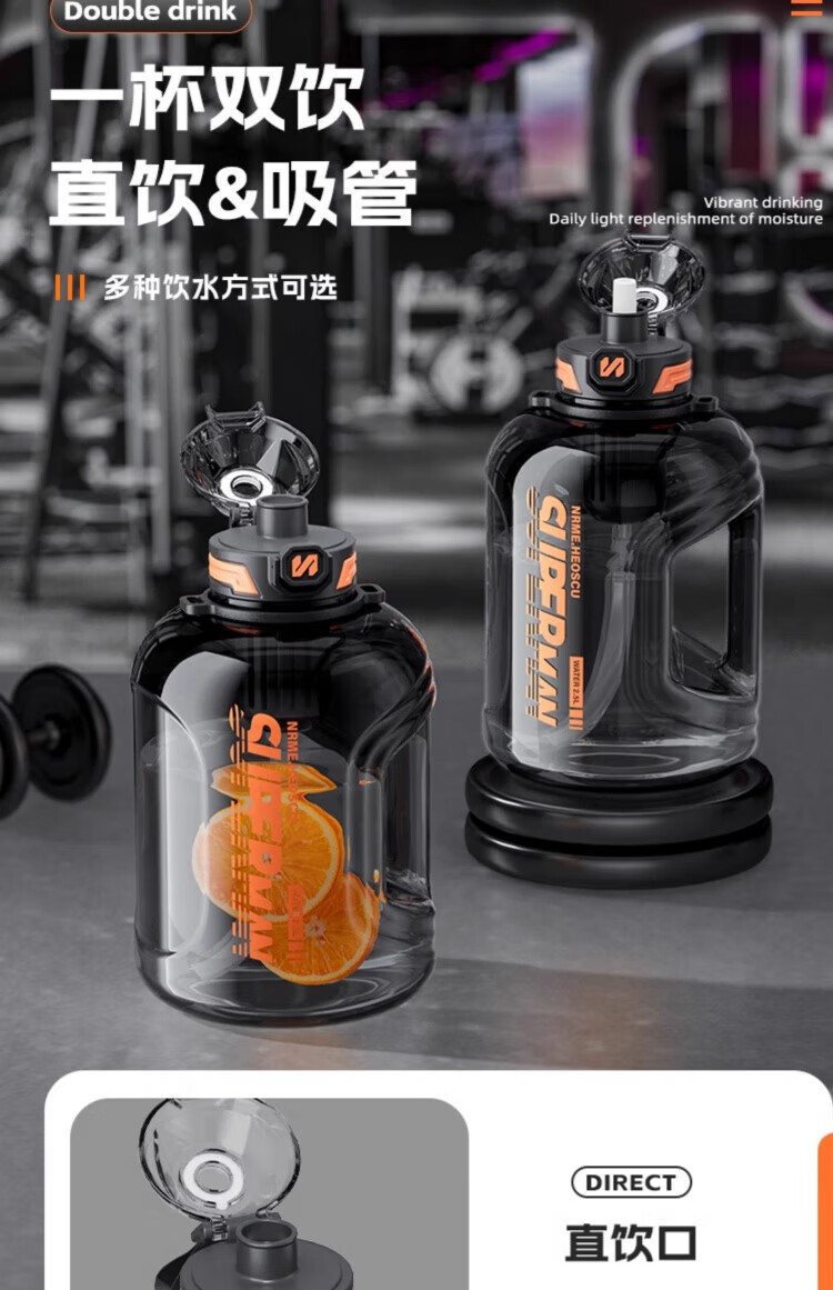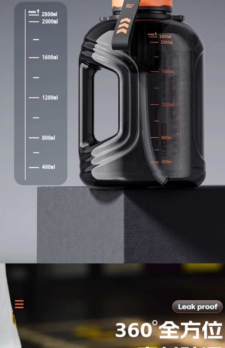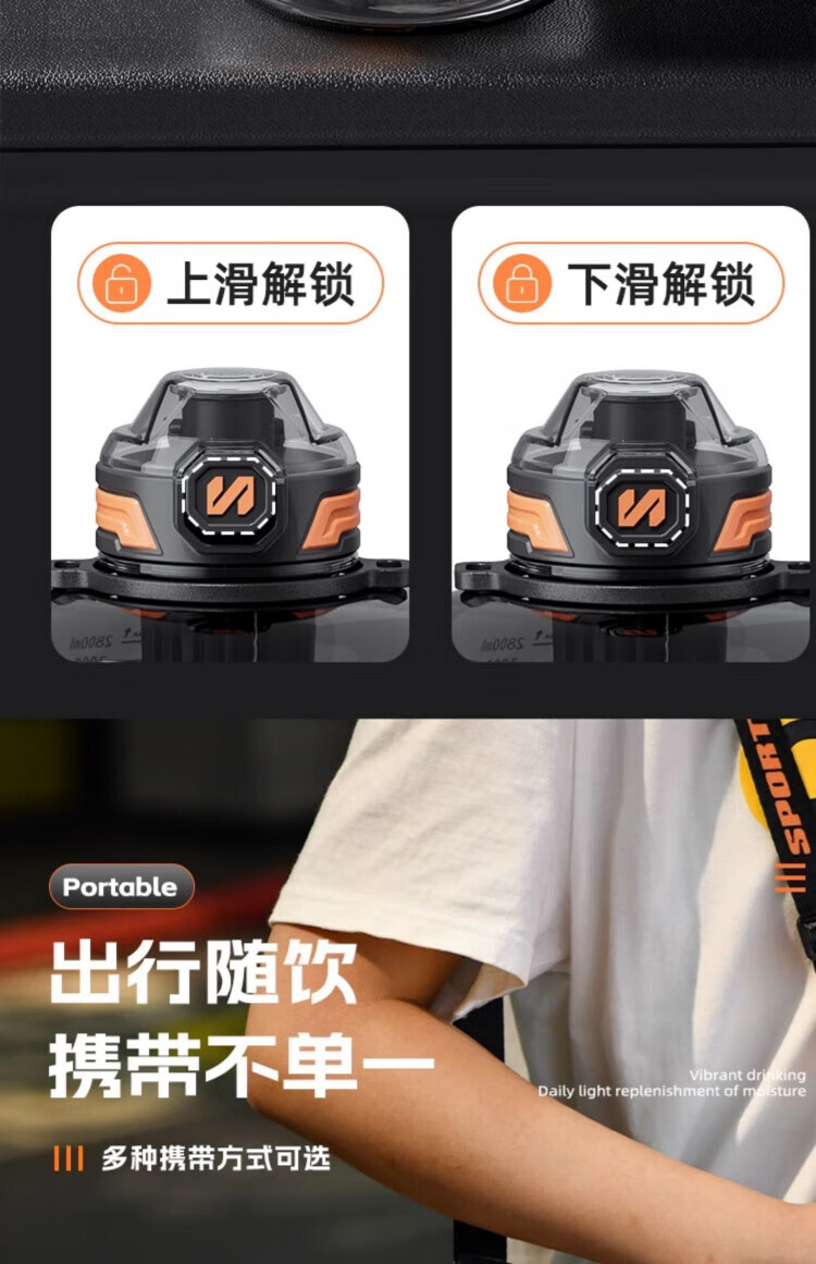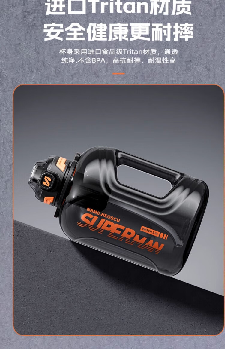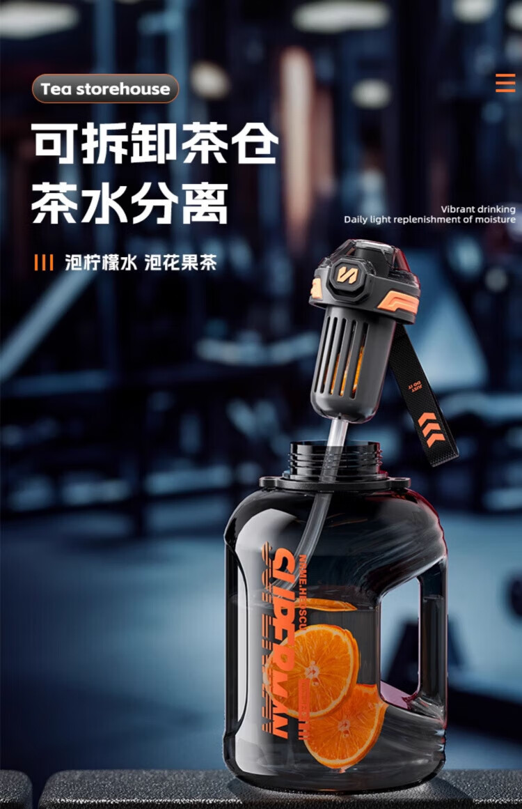 WCZ German sports water cup large capacity boys large fitness kettle water bottle tea water separation ton bucket ton cup dark night black tritan/double drink/upgraded tea 2600ml