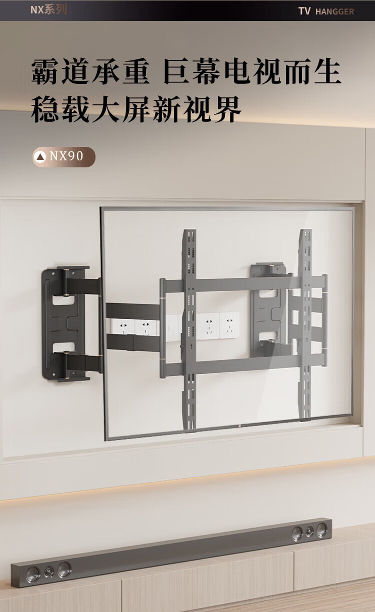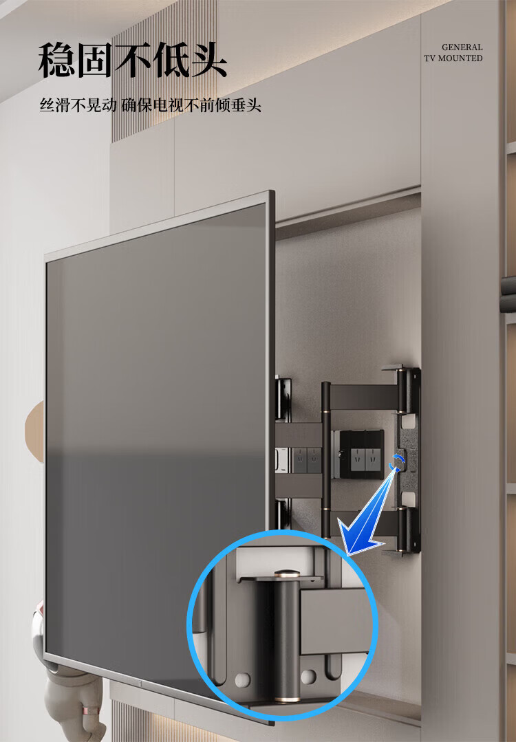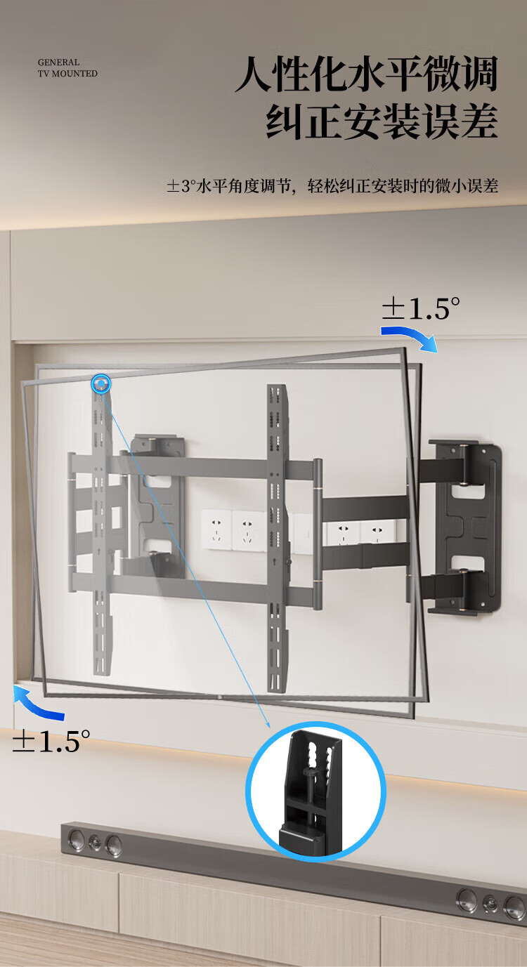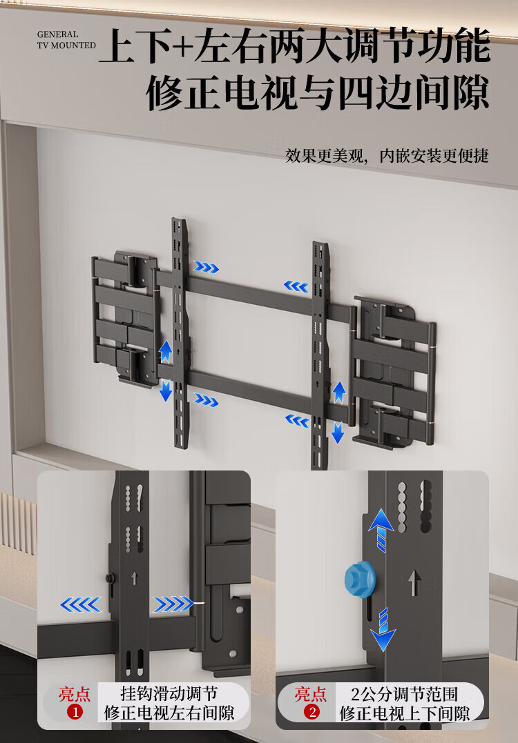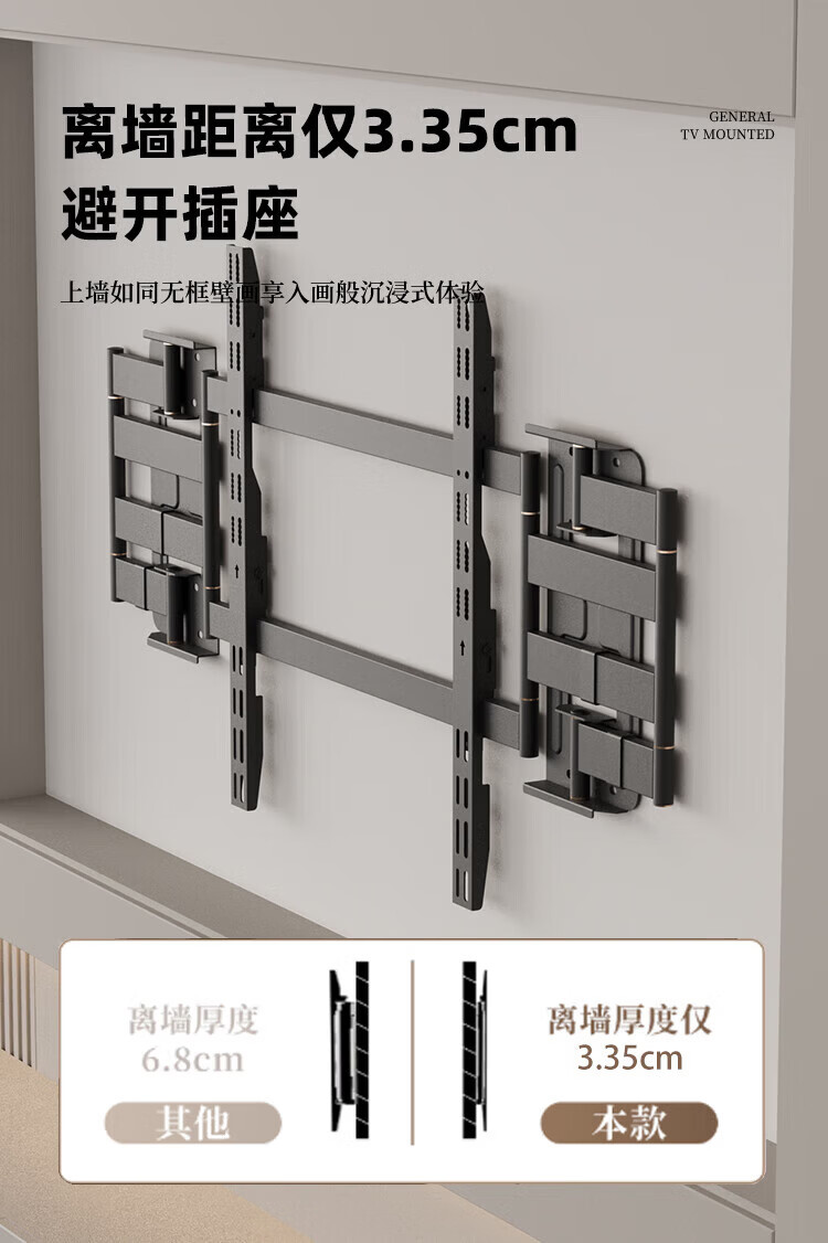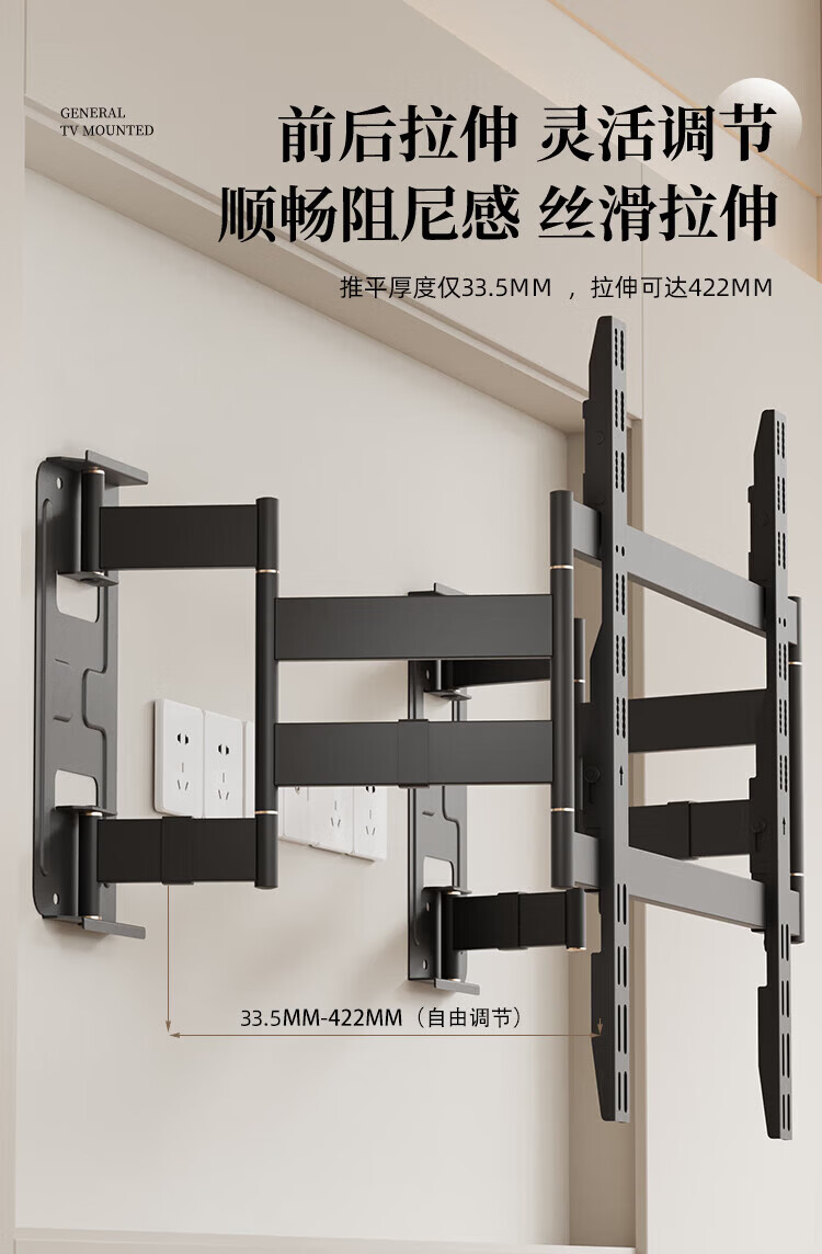 KALOC new structure does not block the socket, ultra-thin built-in double-arm telescopic TV bracket wall mount, telescopic and rotating, suitable for 100-inch Hisense 85, Xiaomi TCL NX75, ultra-thin 3.15 cm, suitable for 55-75 inches