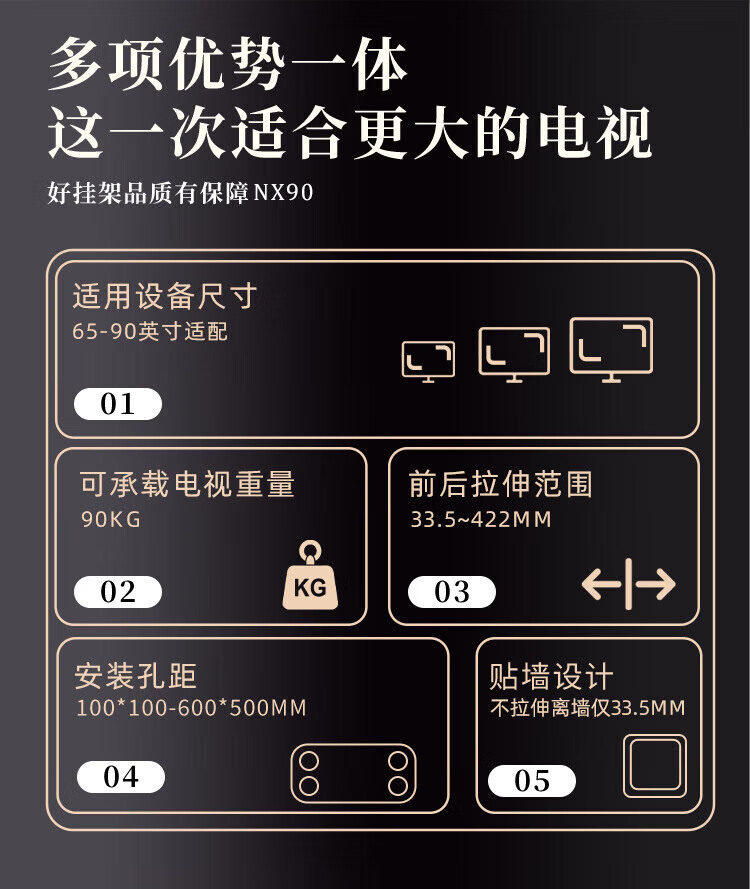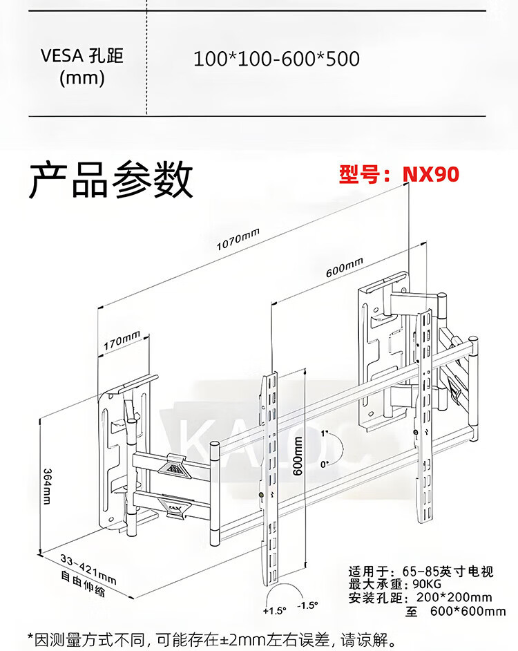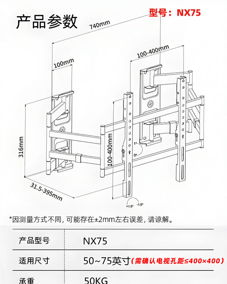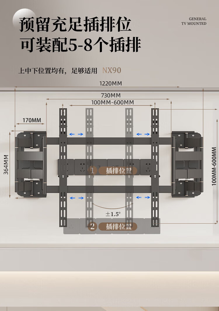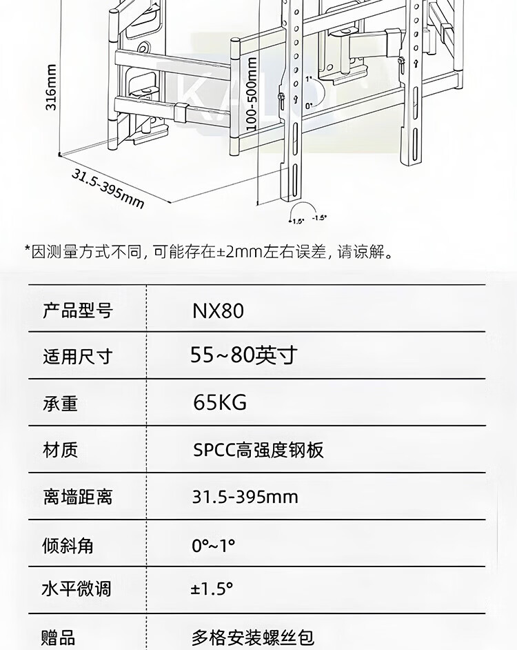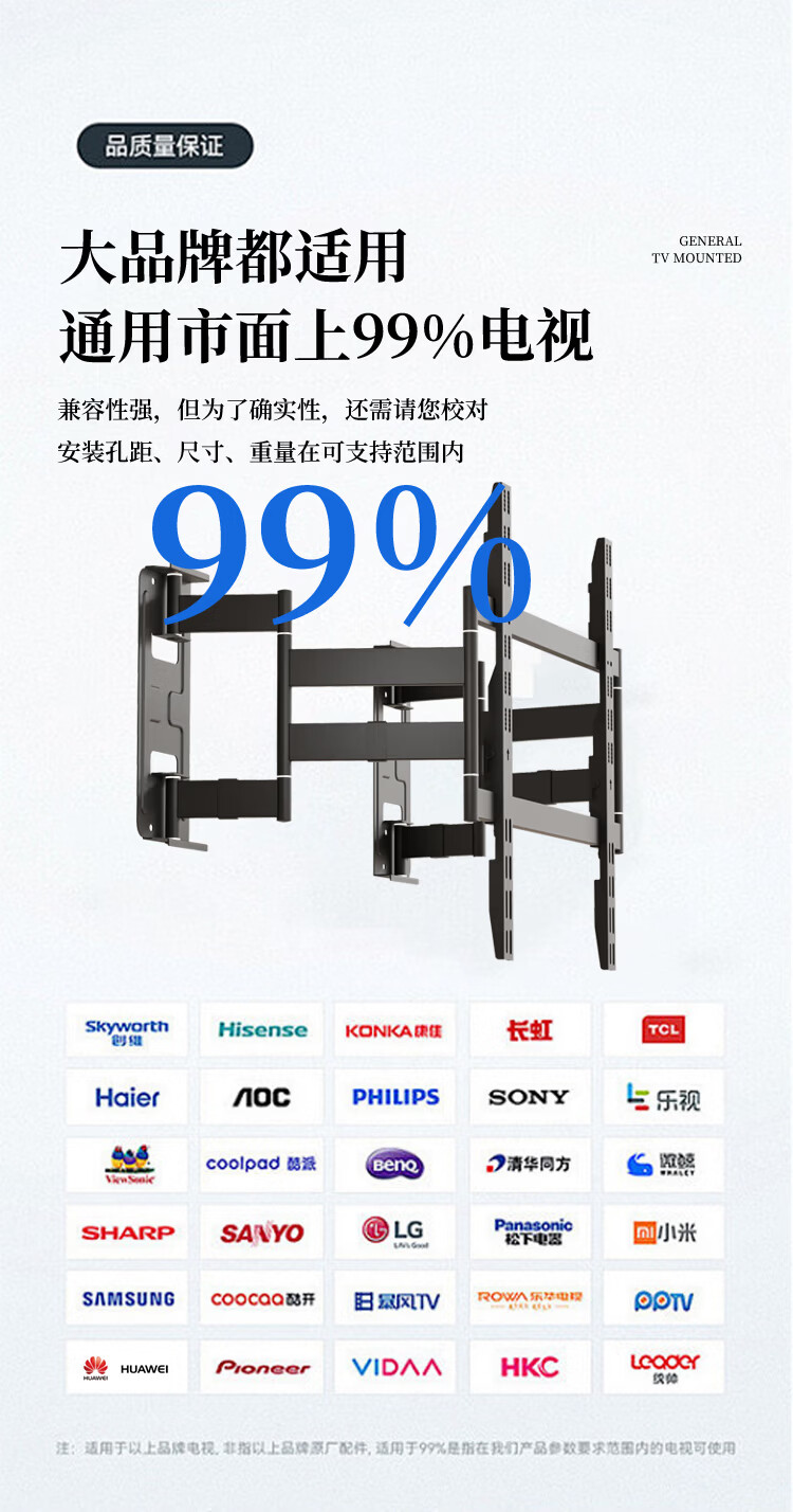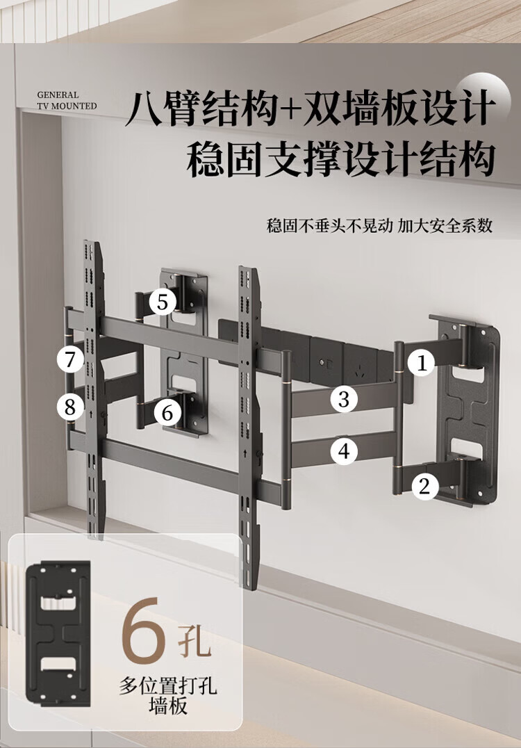 KALOC new structure does not block the socket, ultra-thin built-in double-arm telescopic TV bracket wall mount, telescopic and rotating, suitable for 100-inch Hisense 85, Xiaomi TCL NX75, ultra-thin 3.15 cm, suitable for 55-75 inches
