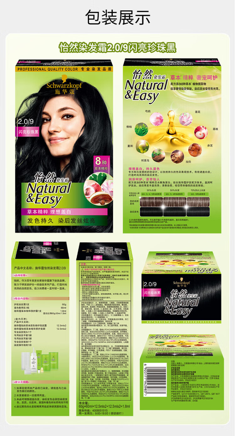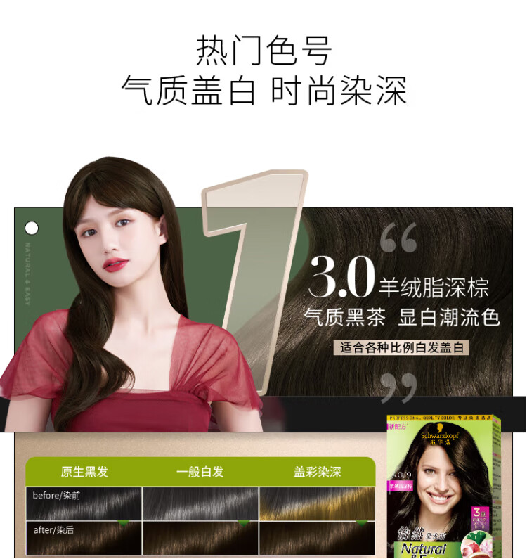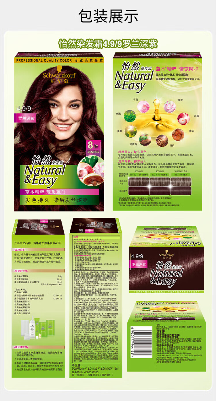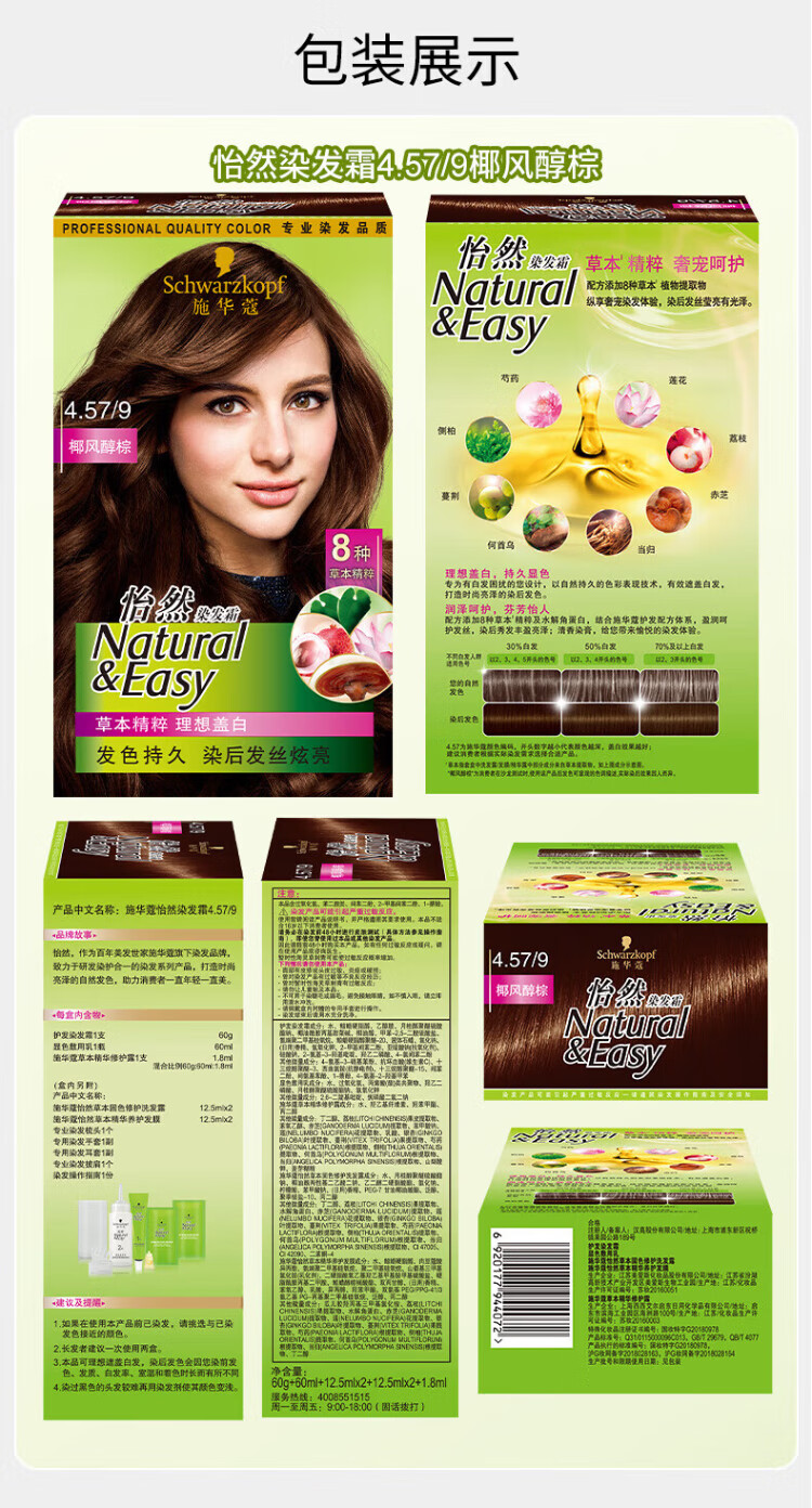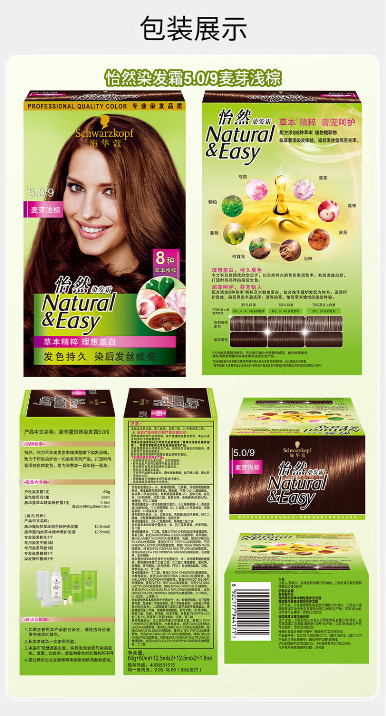 Schwarzkopf Yiran plant hair dye cream herbal hair dye hair cream for men and women to cover gray hair 3.68/9 hibiscus brown (cool color)