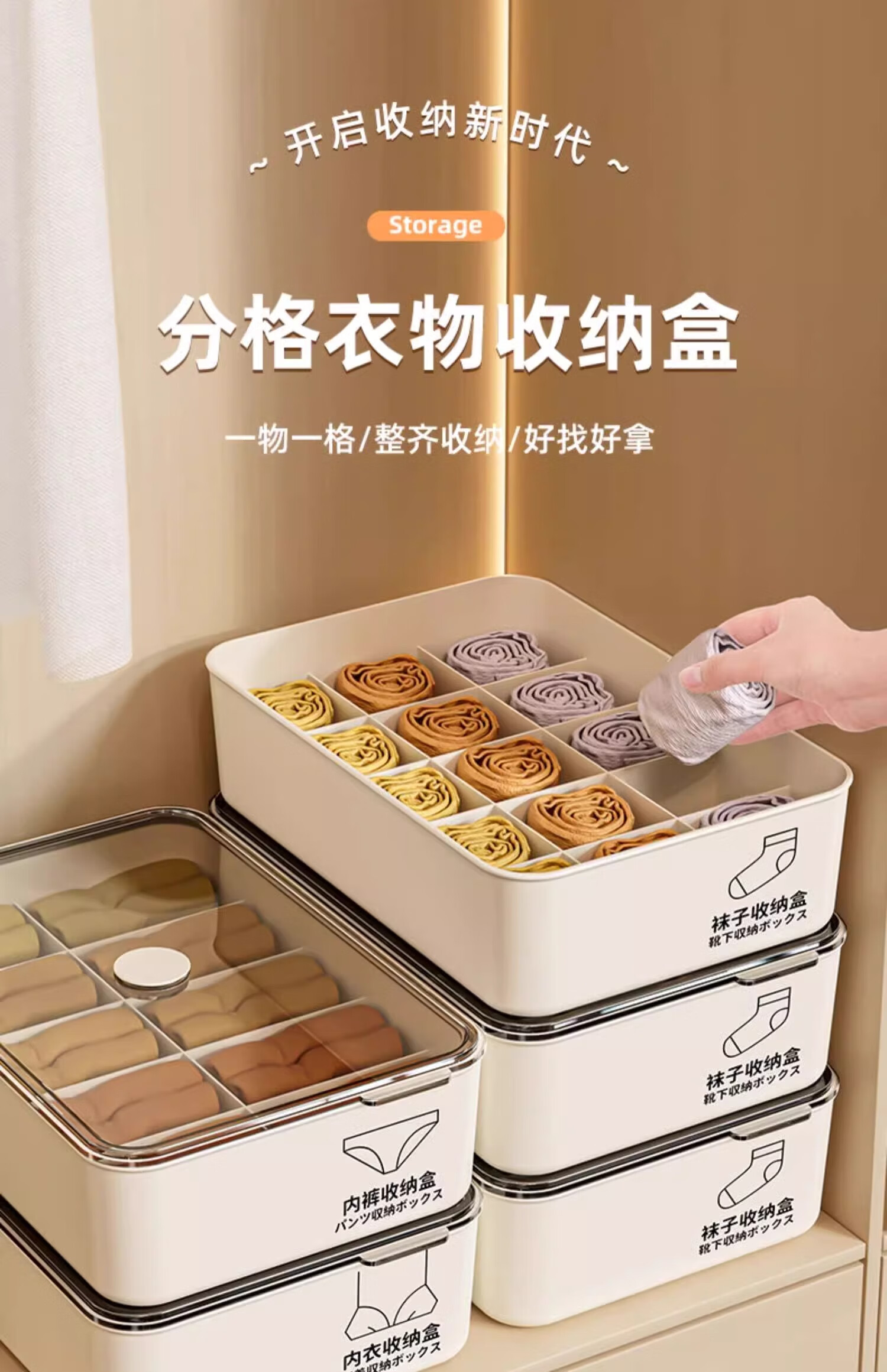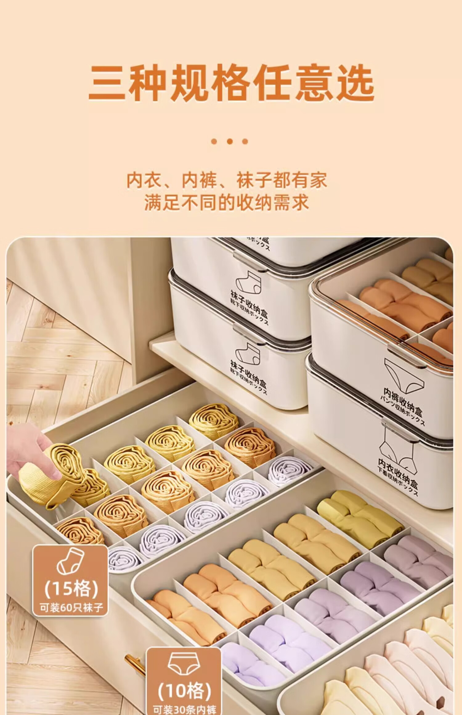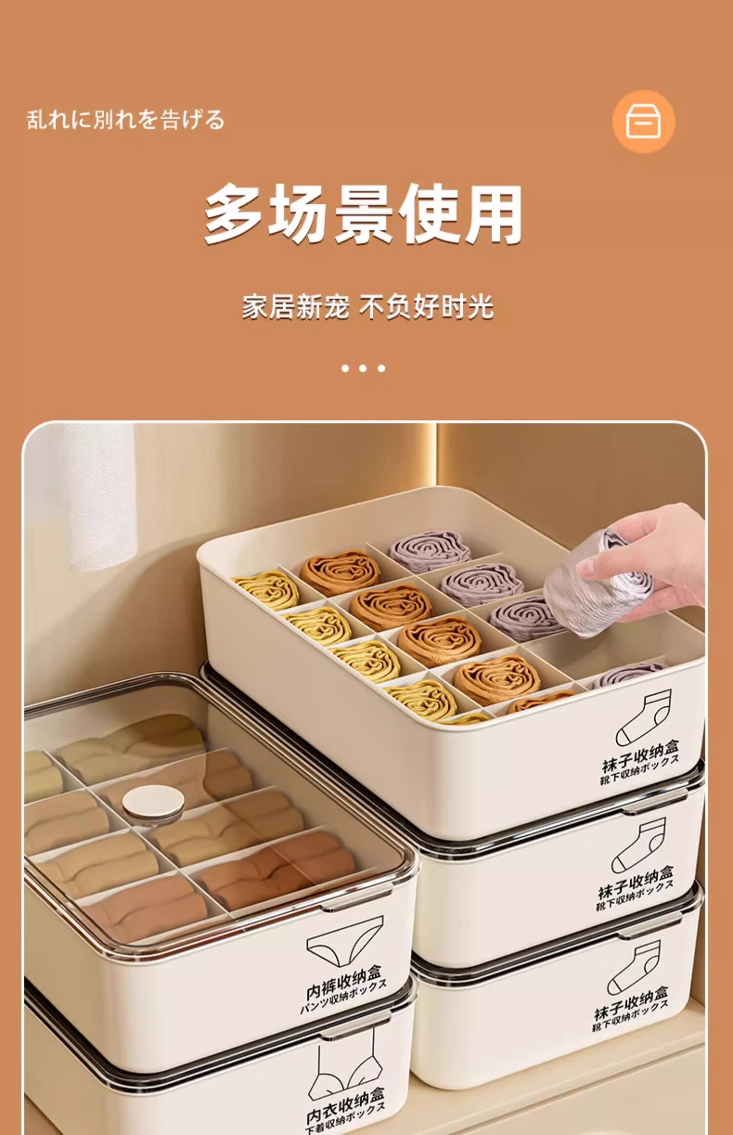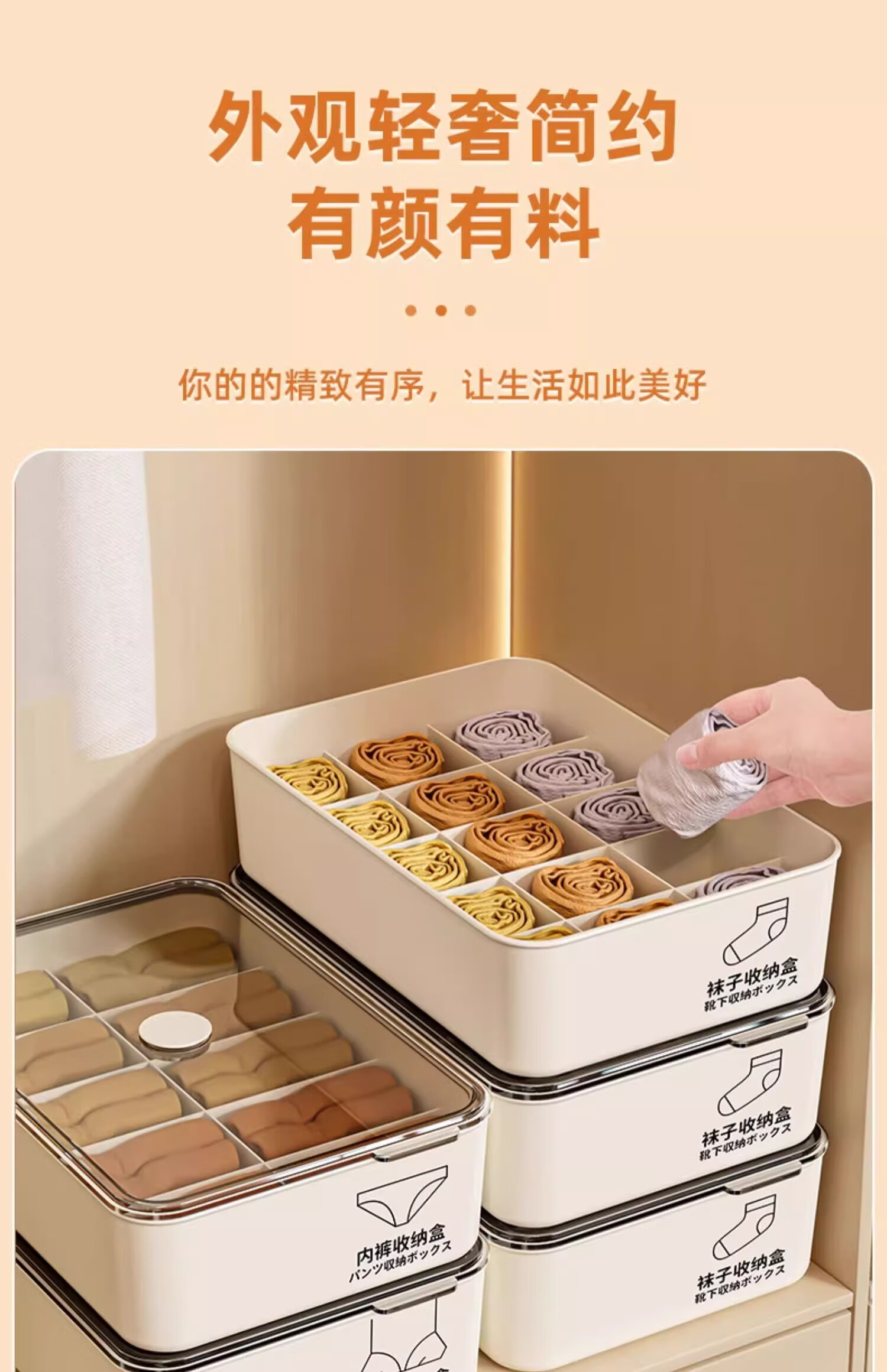 Zhifan Japanese underwear storage box wardrobe storage box for underwear, divided into compartments for socks, three-in-one organizing artifact underwear box + underwear box + sock box with lid 21*31*9cm