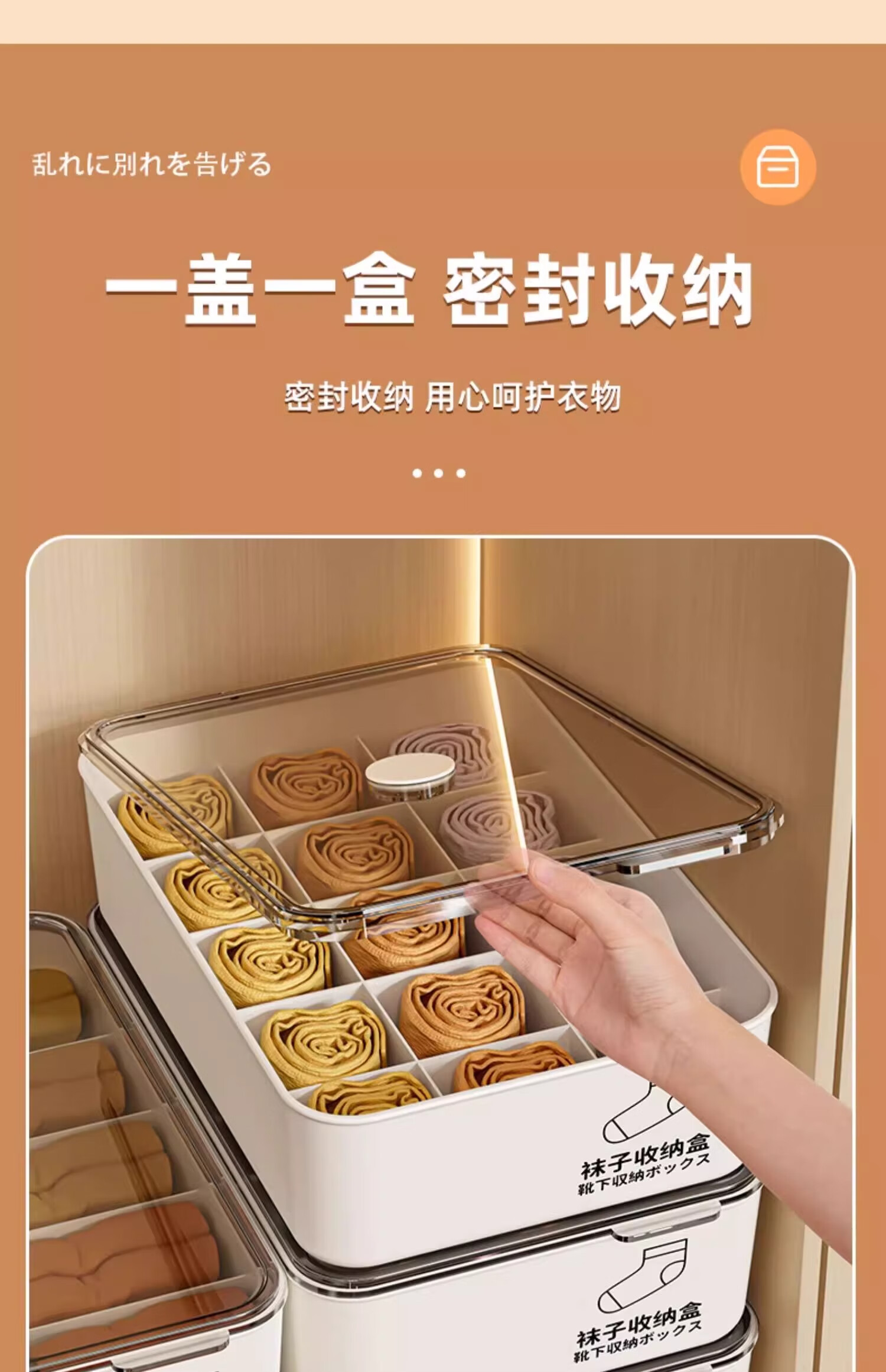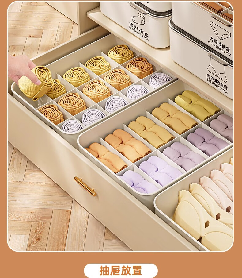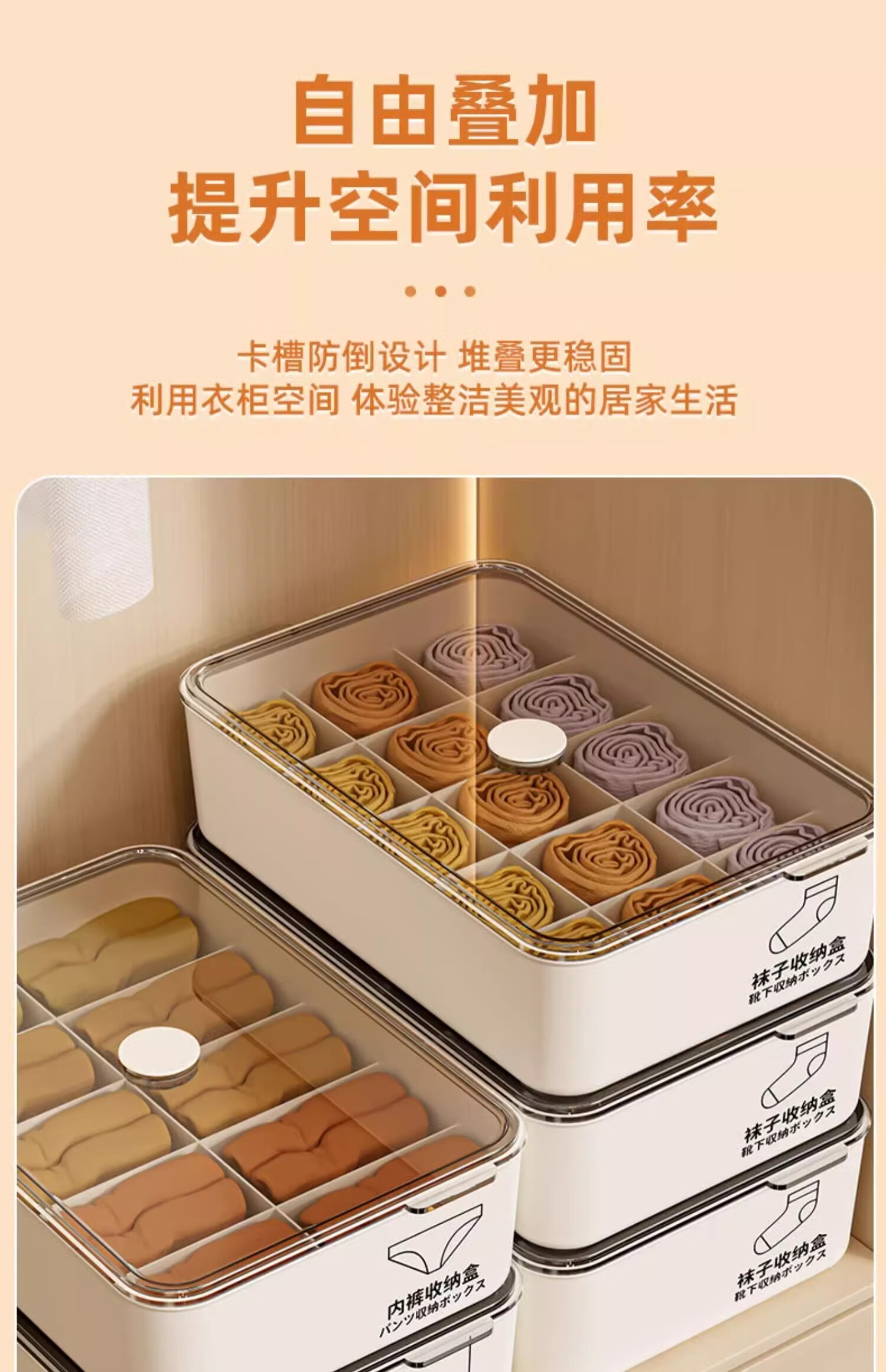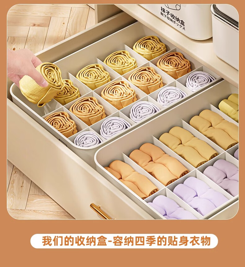 Zhifan Japanese underwear storage box wardrobe storage box for underwear, divided into compartments for socks, three-in-one organizing artifact underwear box + underwear box + sock box with lid 21*31*9cm